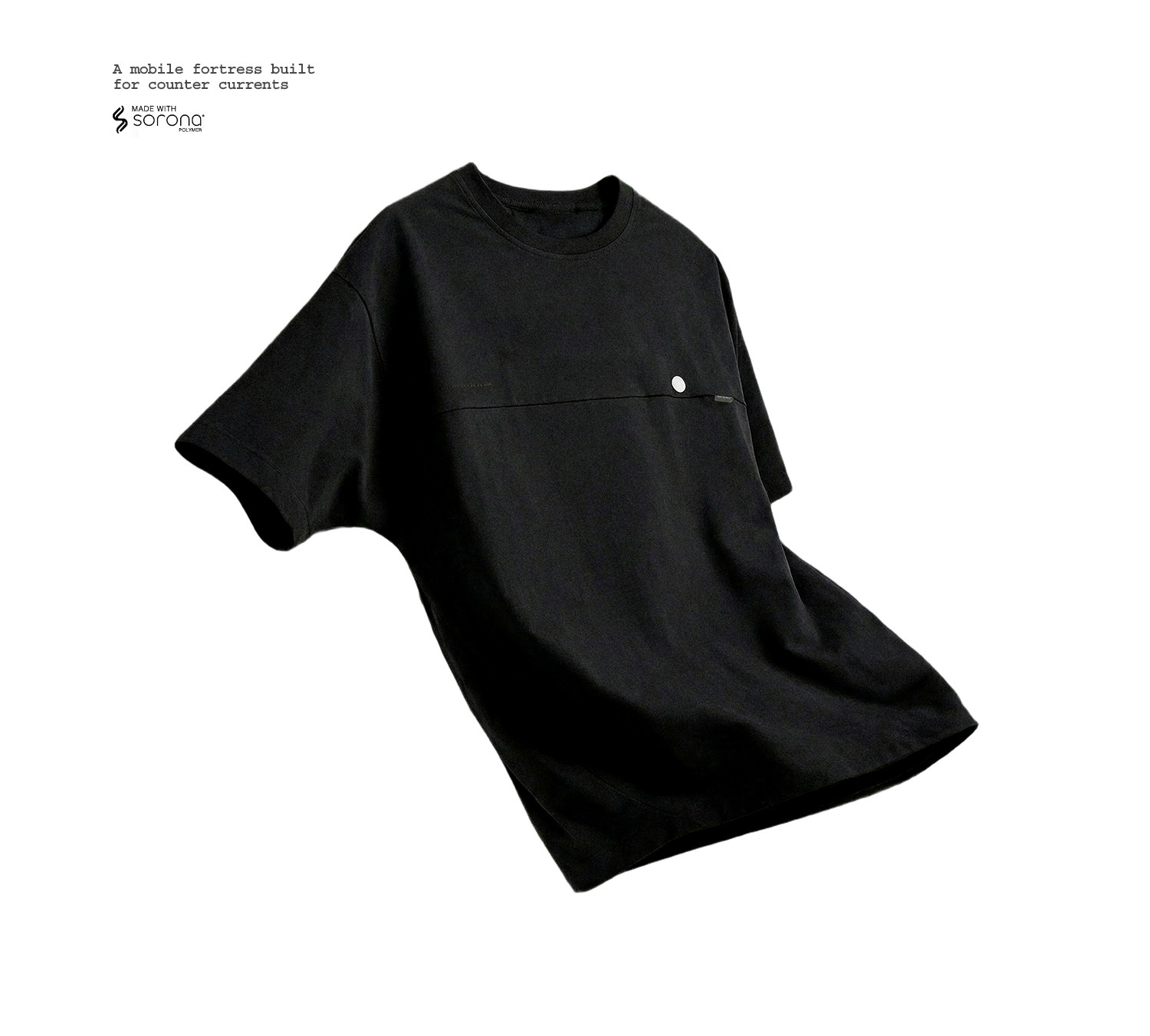 The earth cracks, dust rises—that is summer’s rawest language and the truest starting point of tech aesthetics. This short-sleeve tee takes “cracked dust” as its soul, translating the visual tension of parched earth into a language of seamed cuts. Every structural line mirrors the fissures of dry ground, serving both as decoration and as a passage for breath. Three-dimensional panels create a precise ventilation system between shoulders and side seams, allowing wind and air to flow freely across the skin—dissipating heat at its source.