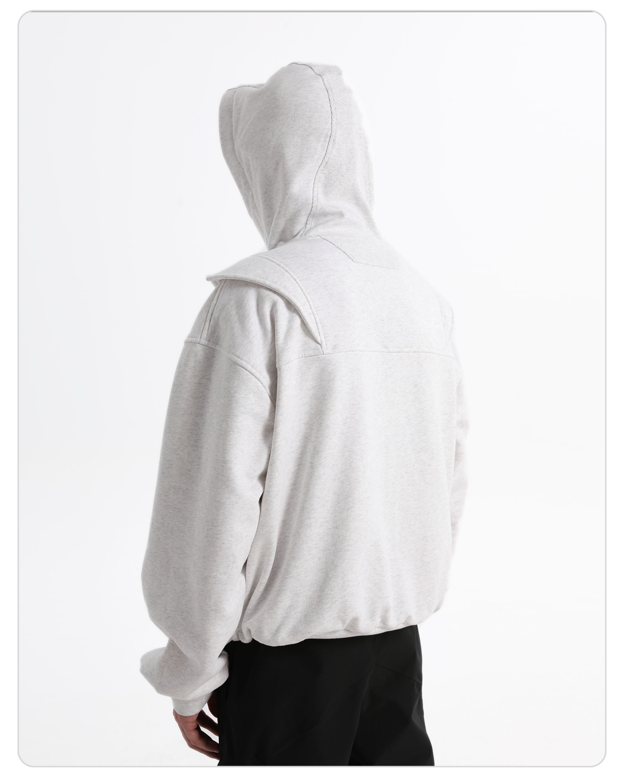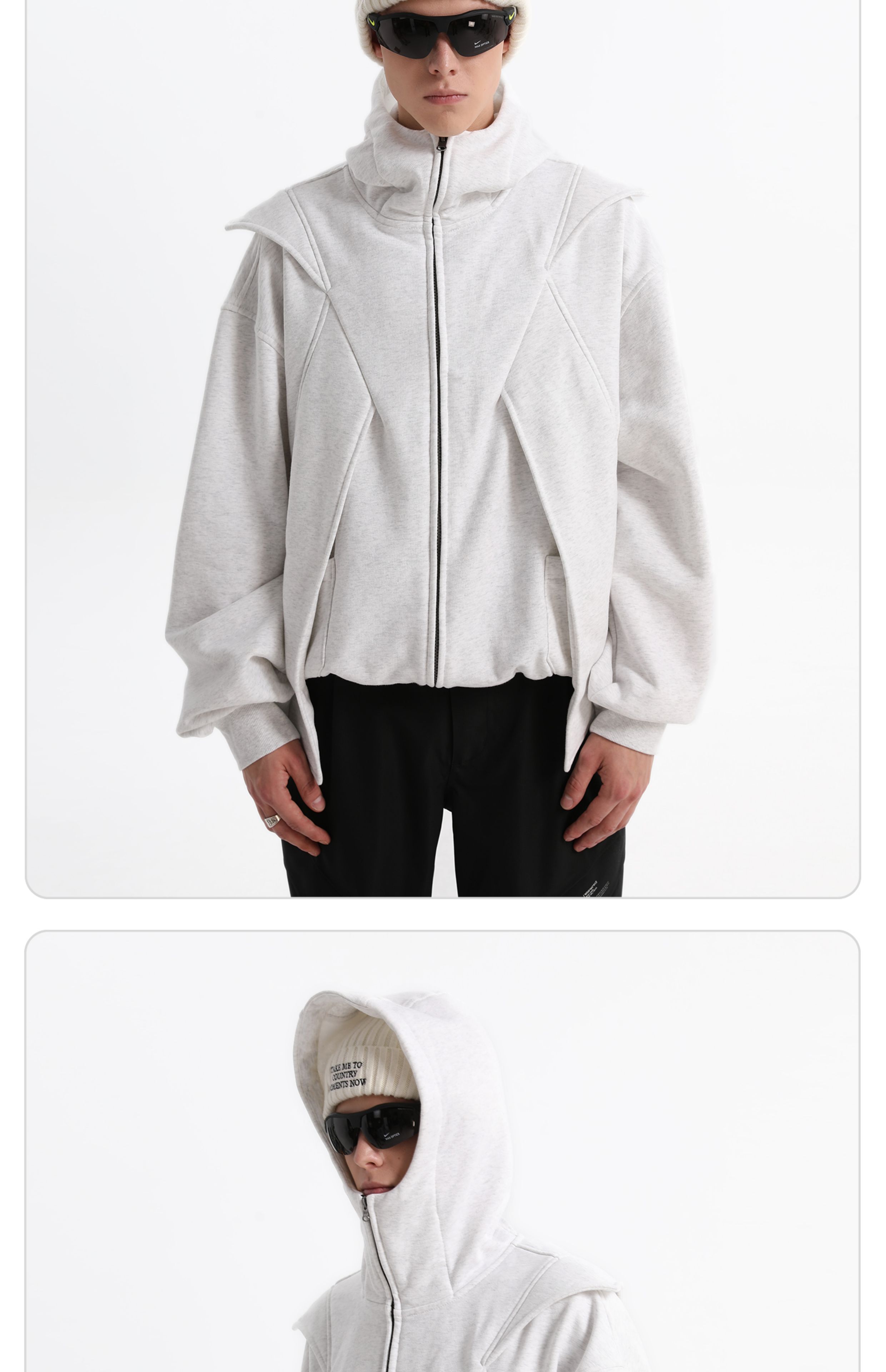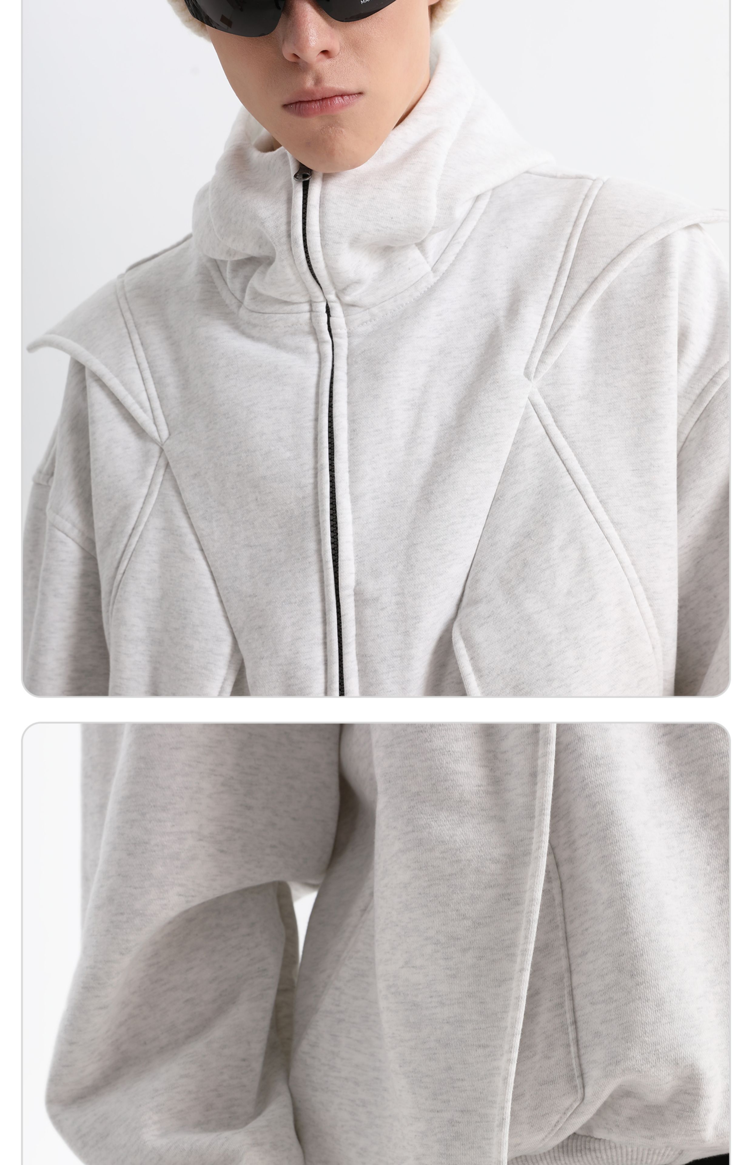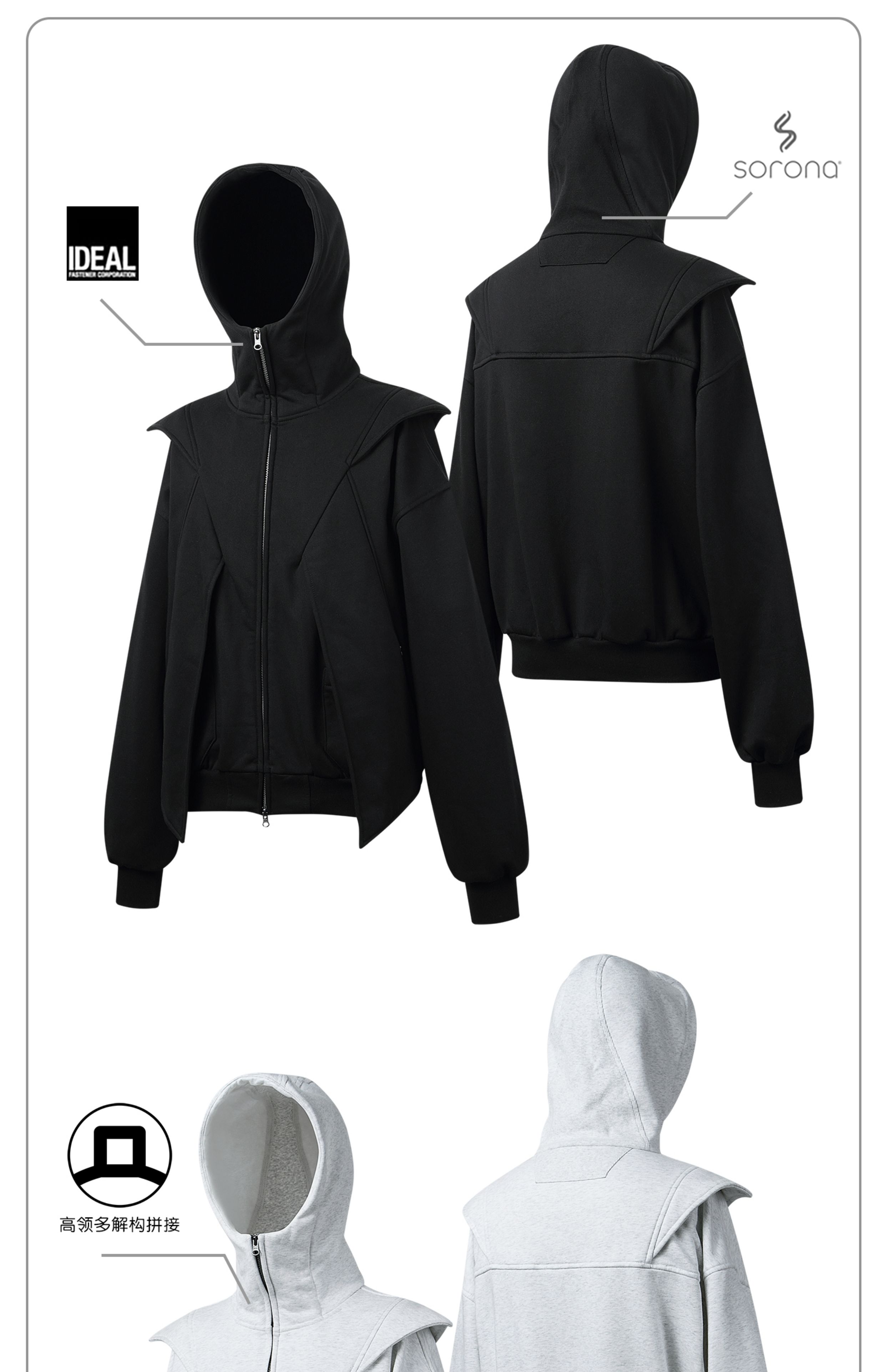 - This dual-zip “Red Wing” hoodie merges avant-garde utilitarian deconstruction with a 420g brushed fleece fabric for warmth and cold protection. Enhanced with anti-static technology for improved comfort. The YKK teardrop invisible zipper pockets balance practicality with a clean aesthetic, while the IDEAL double-headed zipper allows versatile styling and easy silhouette transformation. Infused with a spirit of deconstructivist innovation, this hoodie breaks tradition and redefines the boundaries of modern streetwear.