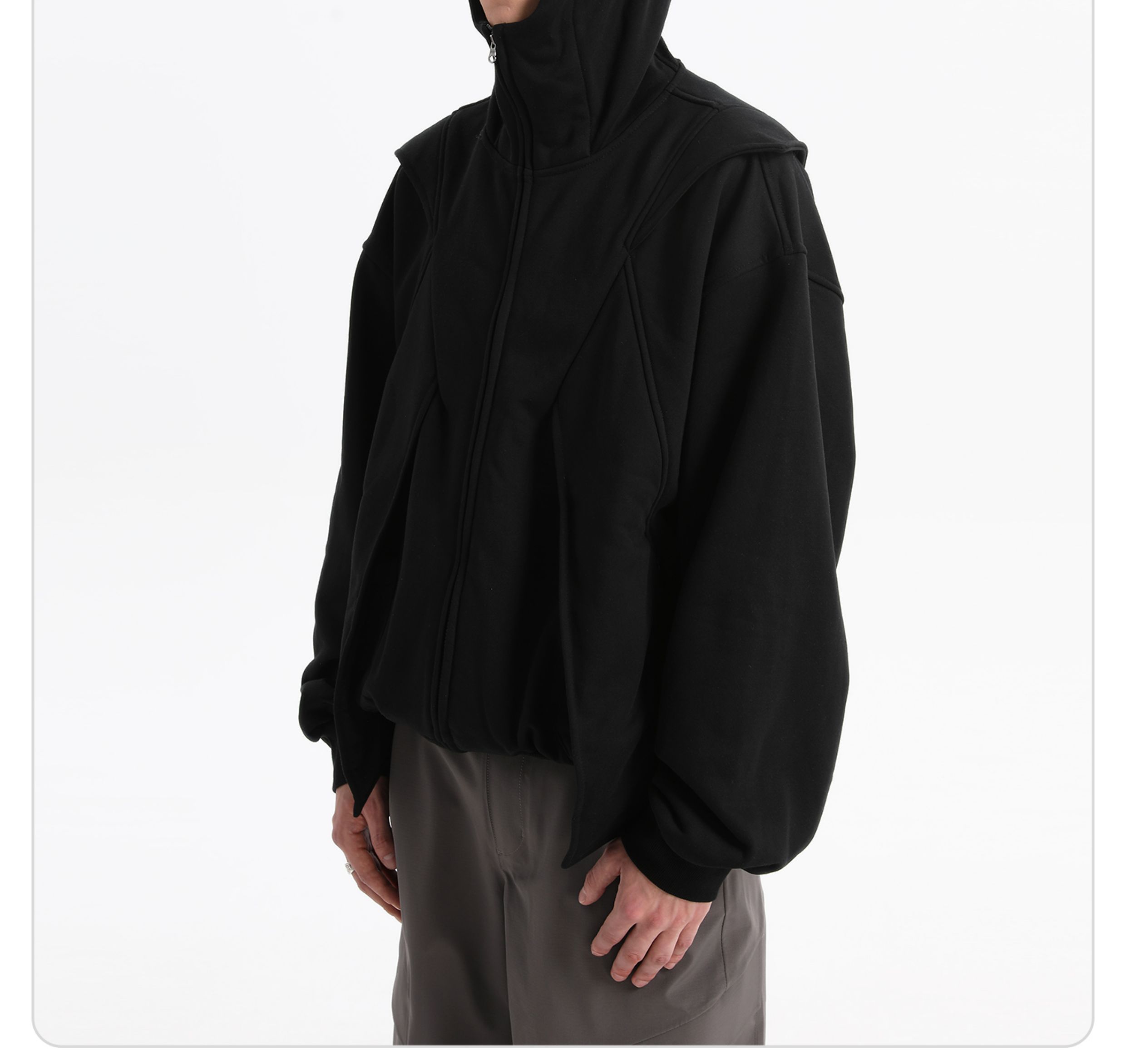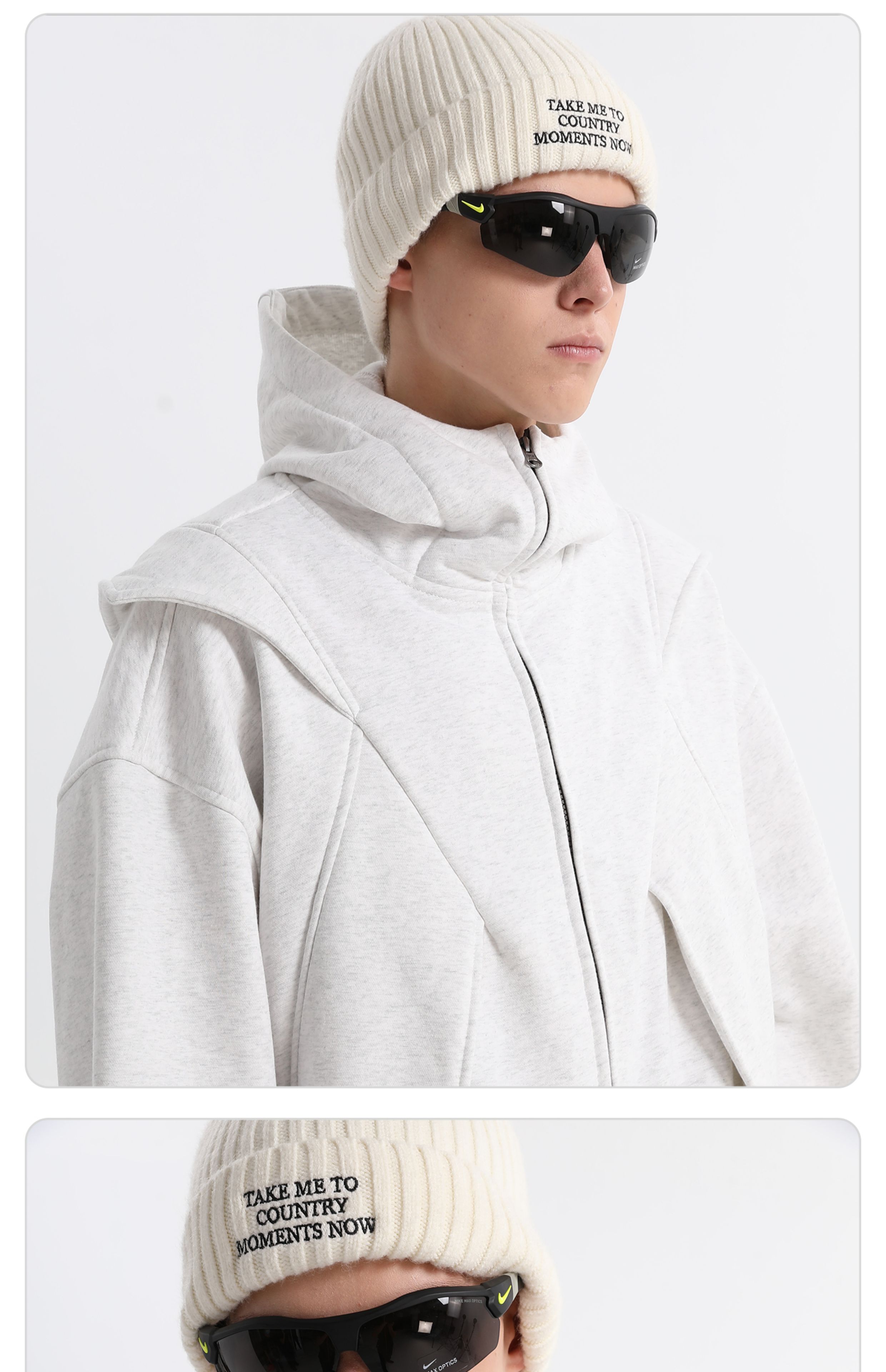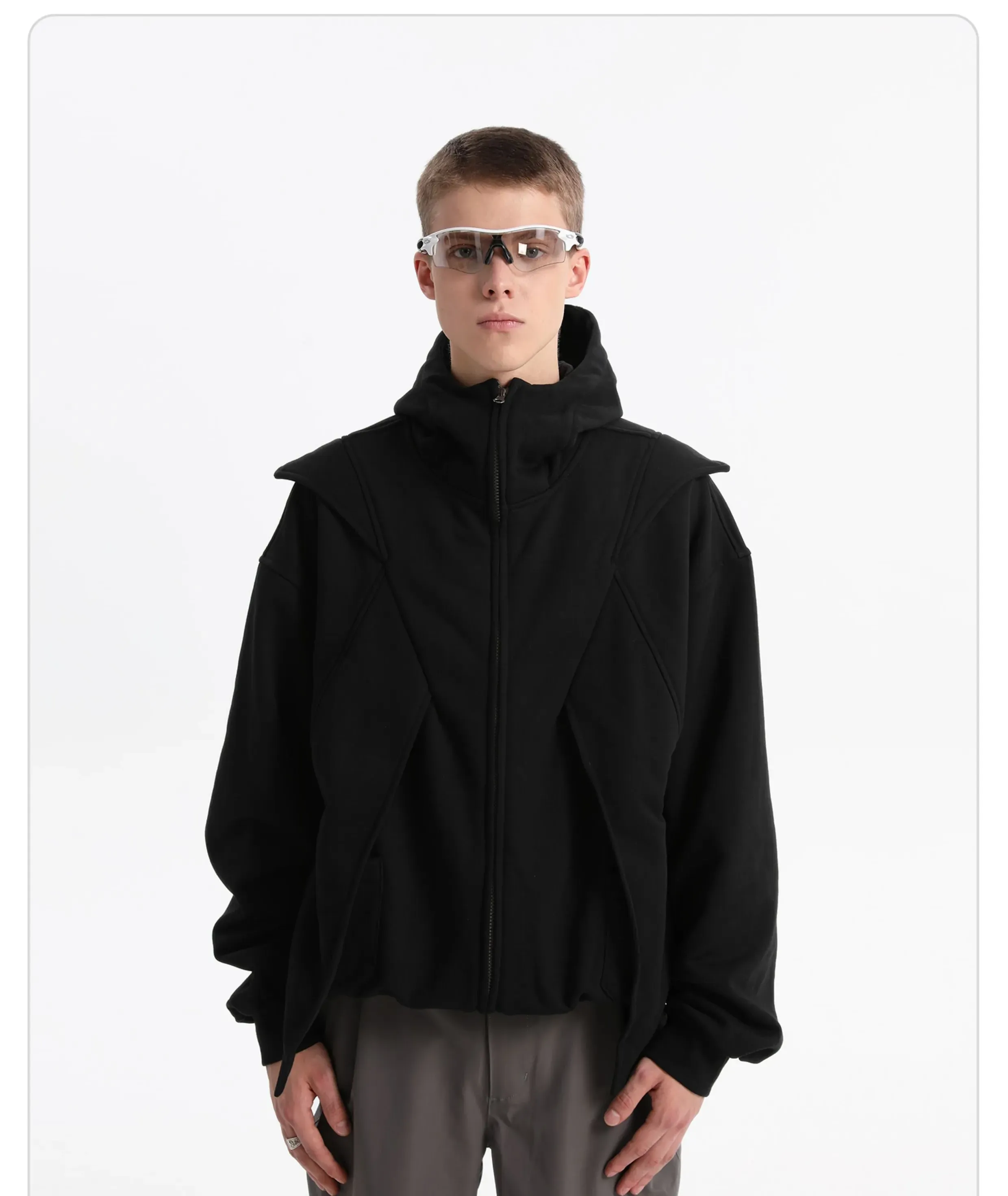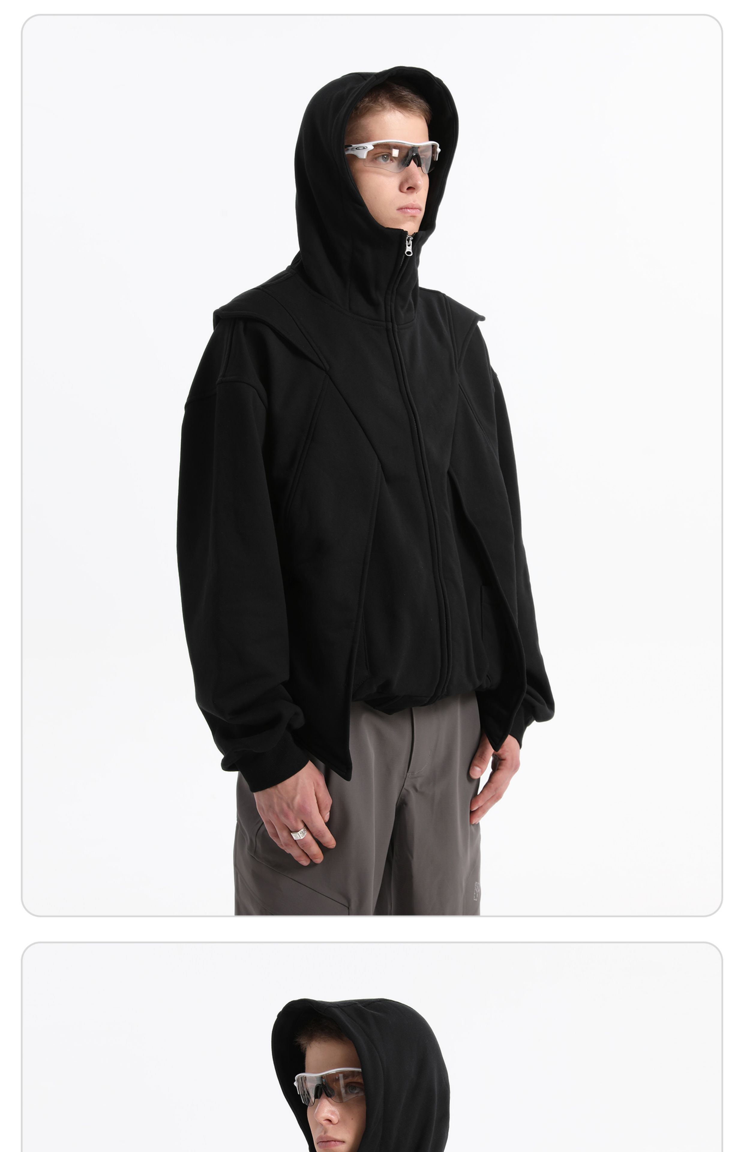 - This dual-zip “Red Wing” hoodie merges avant-garde utilitarian deconstruction with a 420g brushed fleece fabric for warmth and cold protection. Enhanced with anti-static technology for improved comfort. The YKK teardrop invisible zipper pockets balance practicality with a clean aesthetic, while the IDEAL double-headed zipper allows versatile styling and easy silhouette transformation. Infused with a spirit of deconstructivist innovation, this hoodie breaks tradition and redefines the boundaries of modern streetwear.