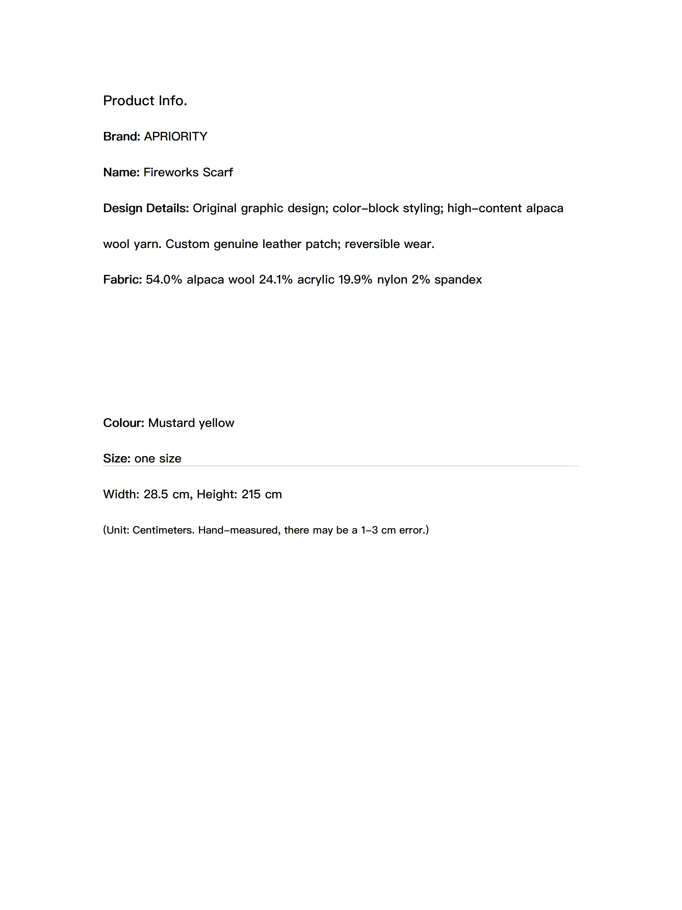 Original graphic design; color-block styling; high-content alpaca wool yarn. Custom genuine leather patch; reversible wear.
