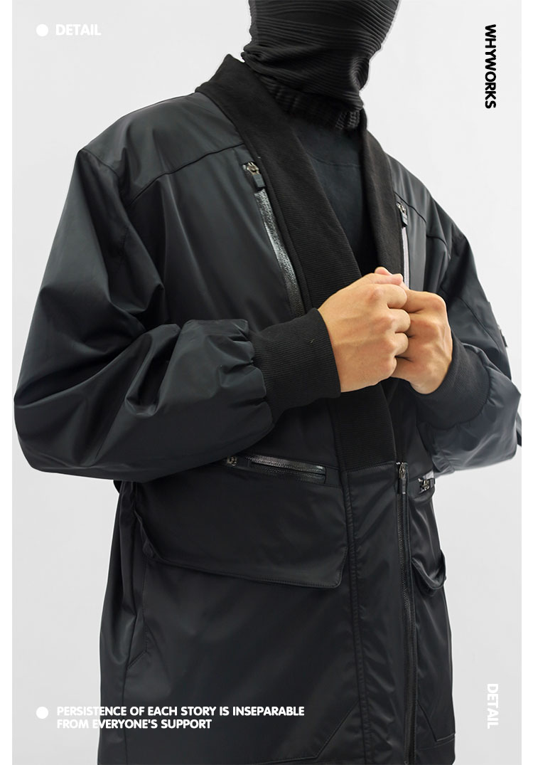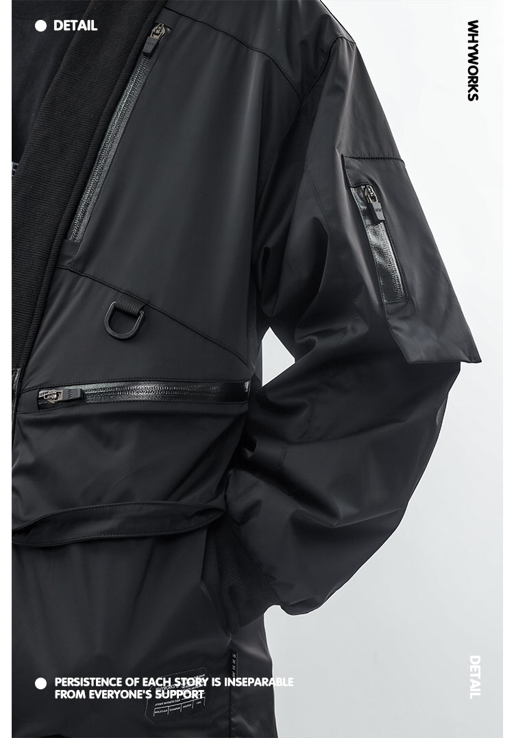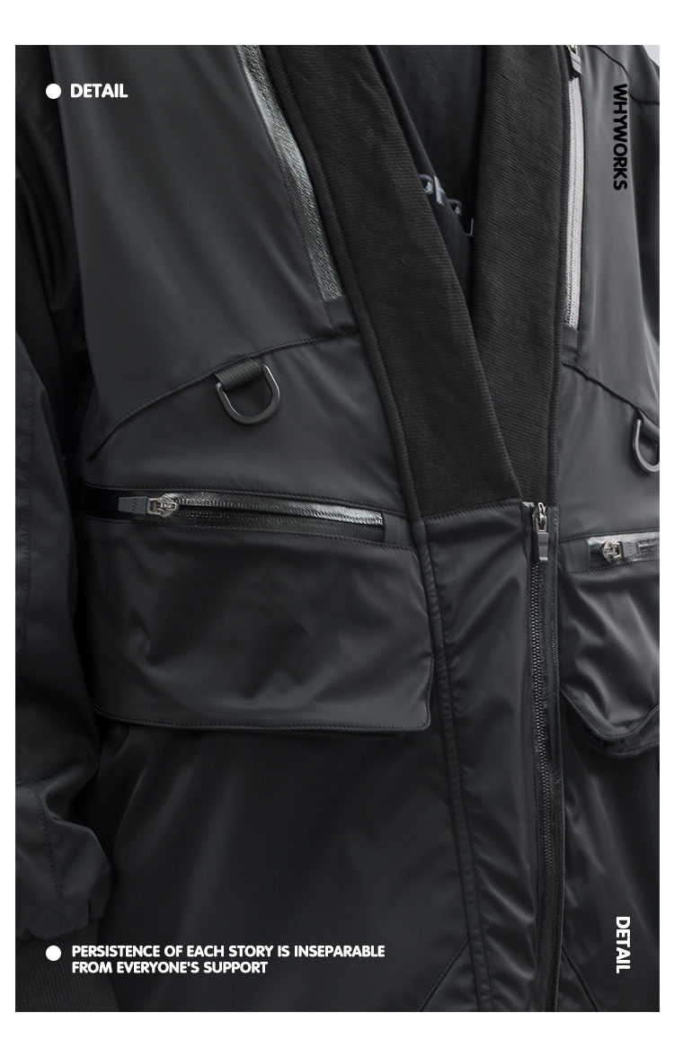 - Crafted from nylon water-repellent, windproof, and insulating fabric, featuring custom waterproof glued zippers, multi-pocket panel construction, and a relaxed drop-shoulder oversized silhouette designed for functional daily wear.