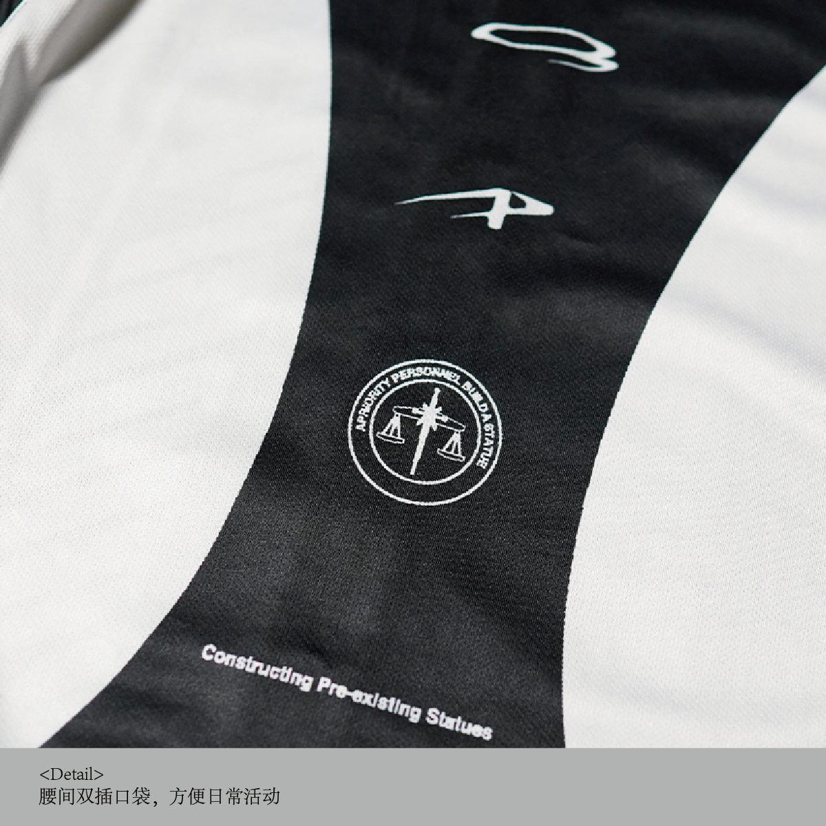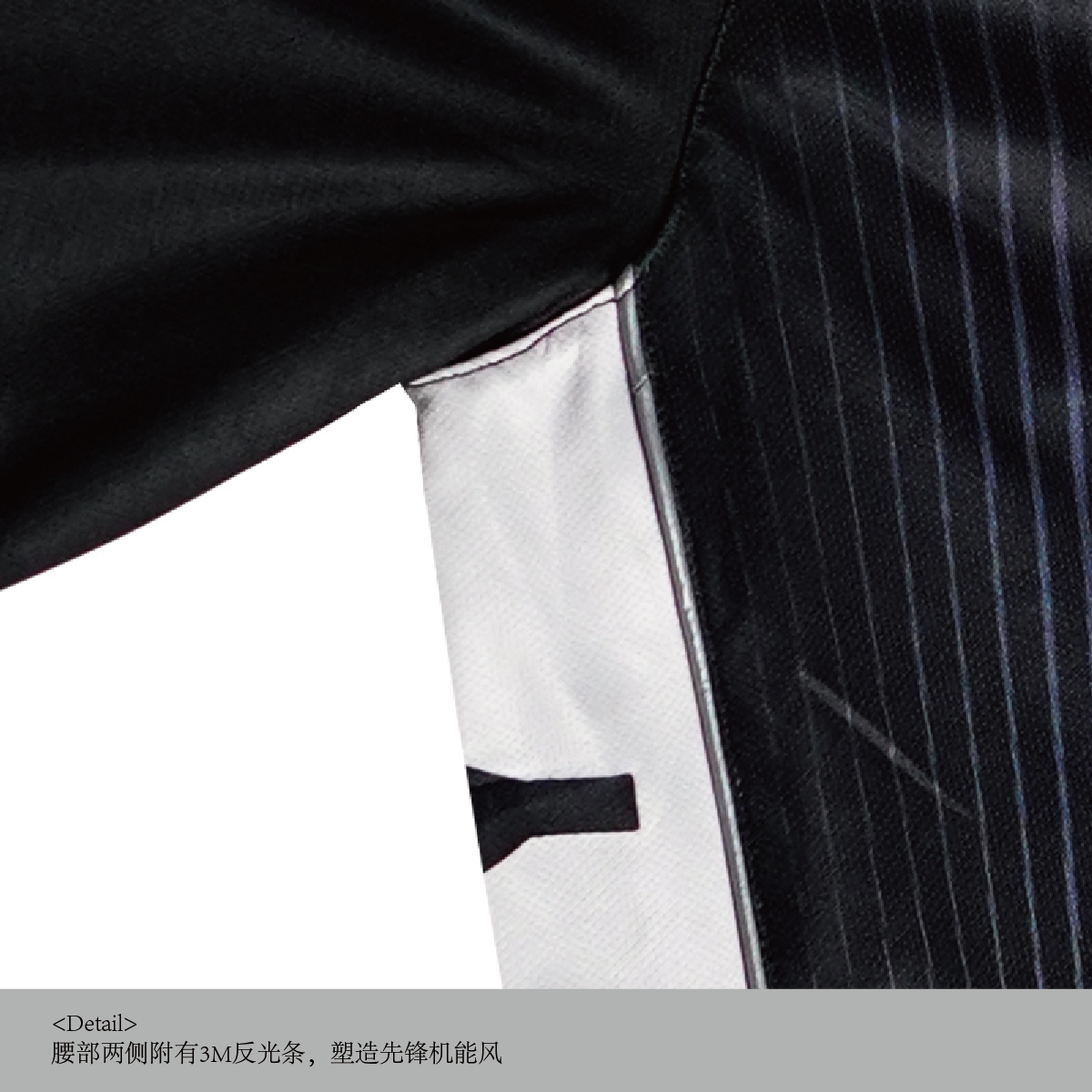 - 3M reflective strips on both sides of waist: avant-garde techwear touch
