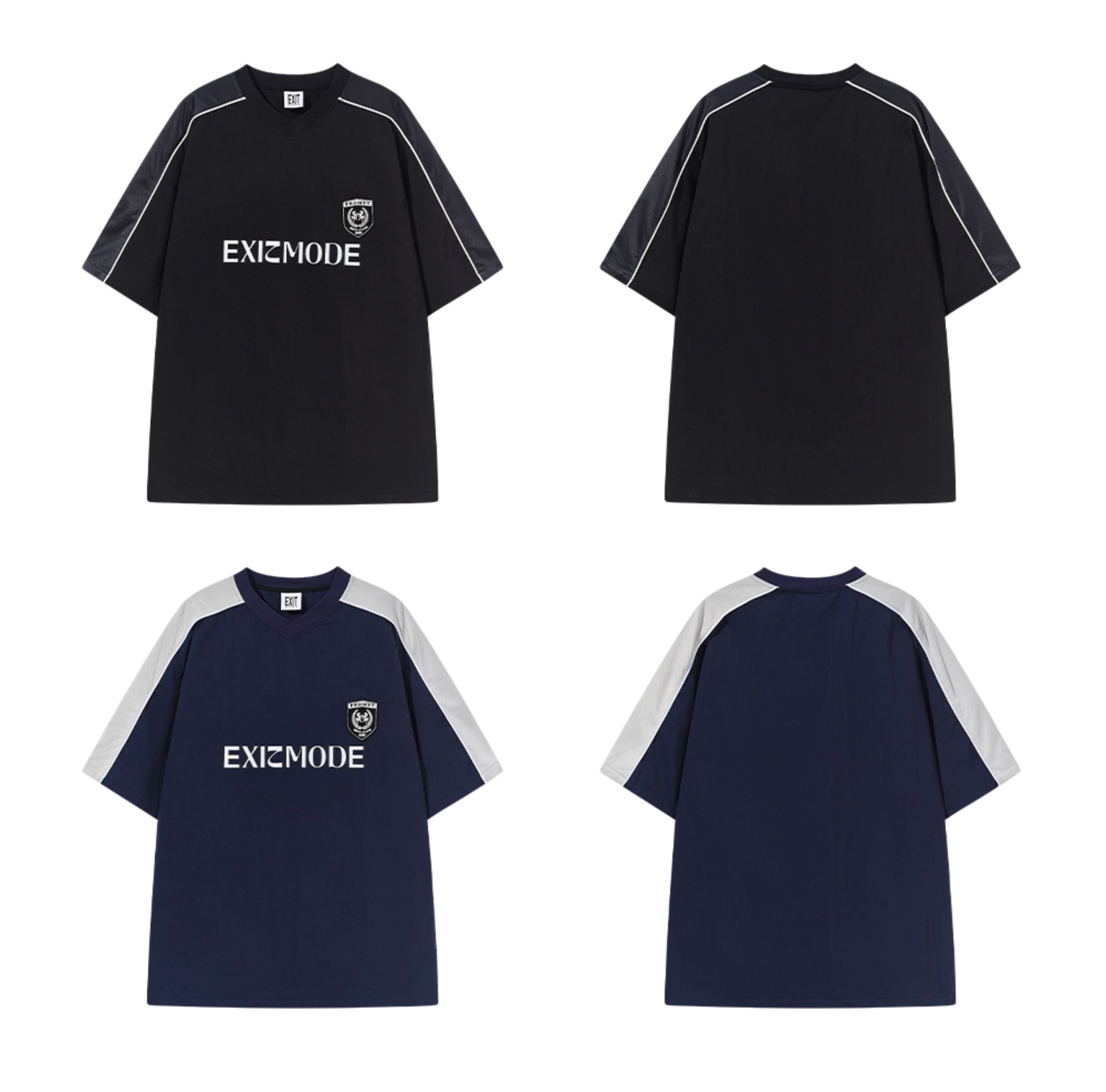 Design Details: This loose-fit T-shirt features a color-block splicing design, combined with sporty print elements that enhance the visual appeal of a jersey-inspired style.