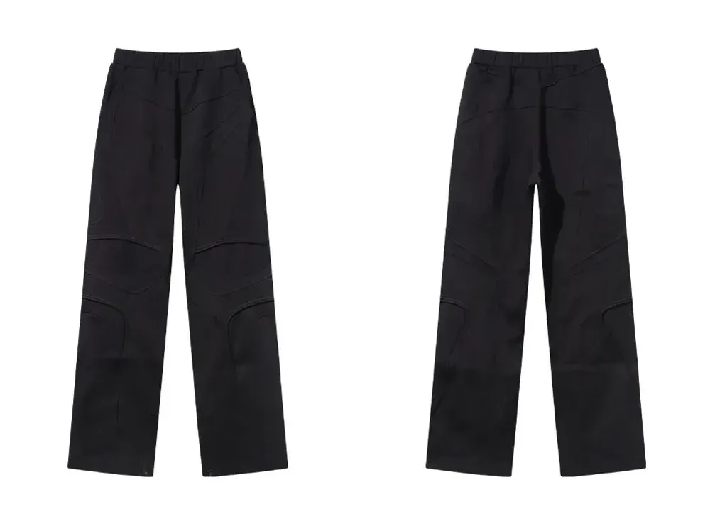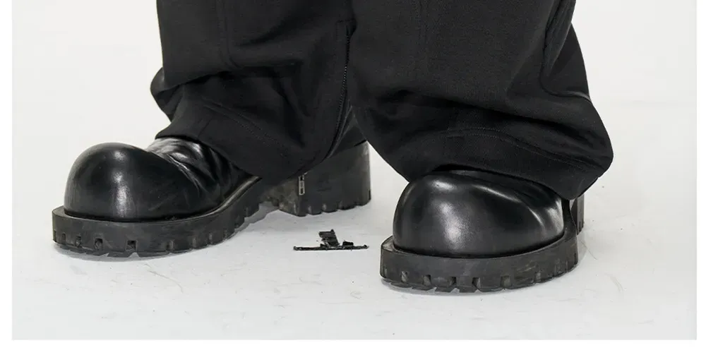 Design Details: Utilizing motorcycle elements on trousers, creating contrast and a unique structure. The ankle zippers add a slit effect, enhancing the overall design.