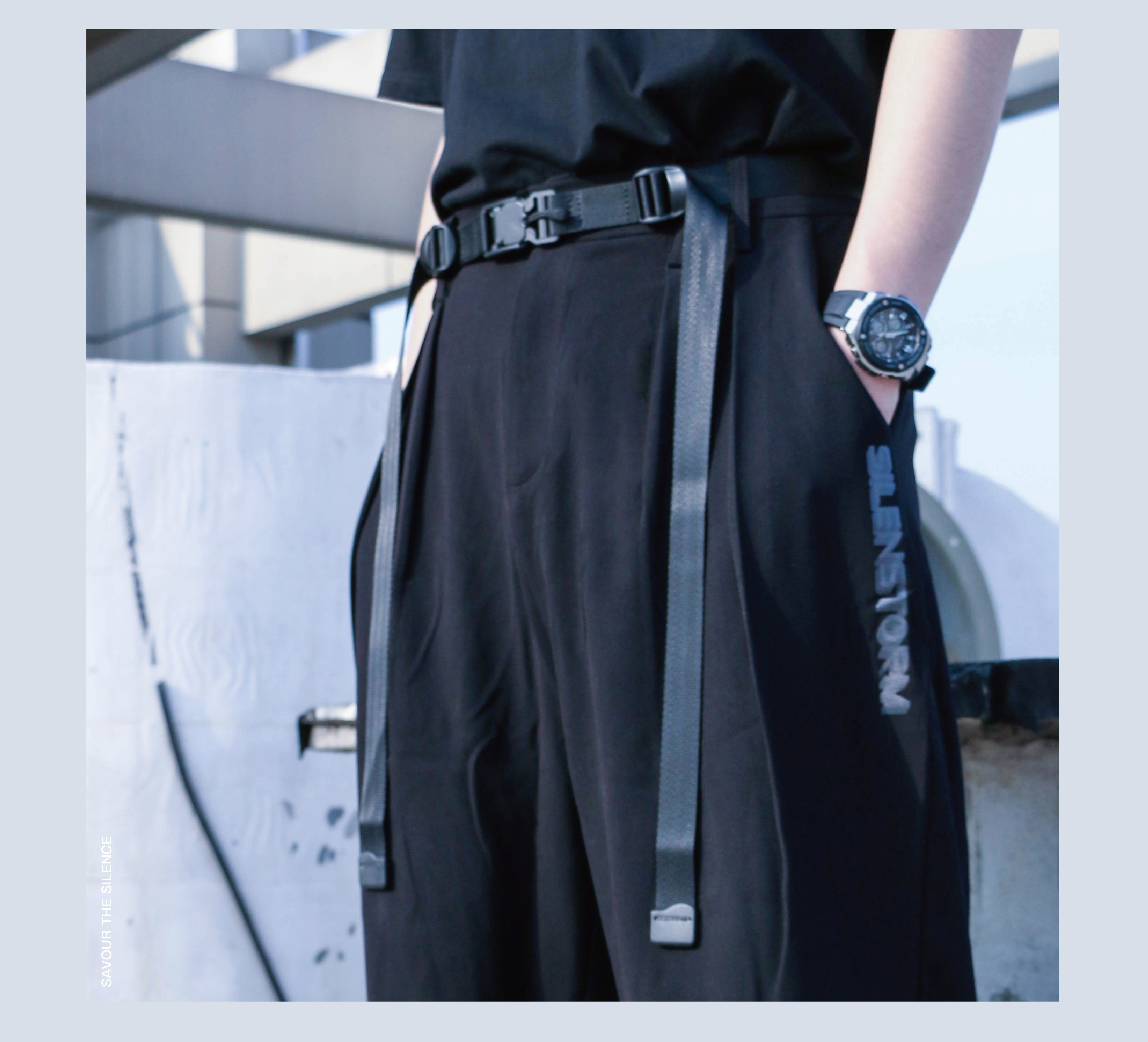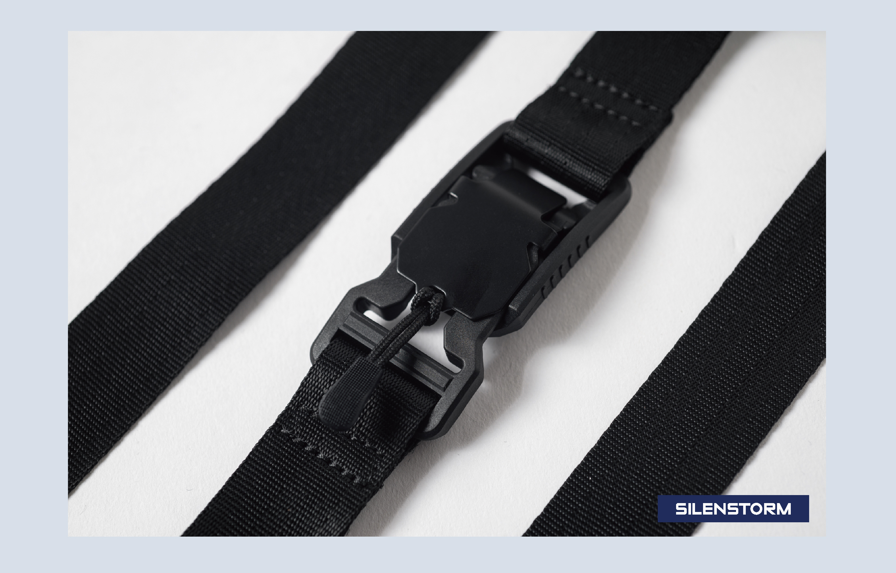 - Inspired by the concept of a “space colonization project,” this SILENSTORM black functional belt explores the depth of urban techwear design. Crafted with a trendy magnetic quick-release buckle, it highlights a strong metallic texture while ensuring effortless one-handed fastening and release. The belt offers high adjustability for quick and convenient size customization. The strap end is secured with a webbing tail buckle, while both sides are reinforced with rectangular metal loops, combining durability, functionality, and a futuristic aesthetic.