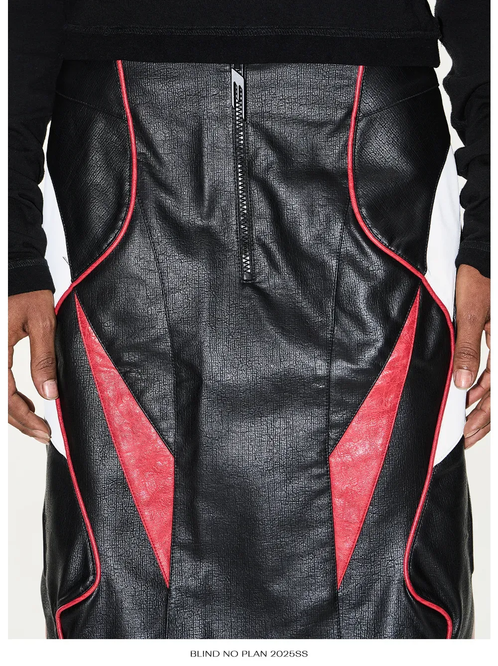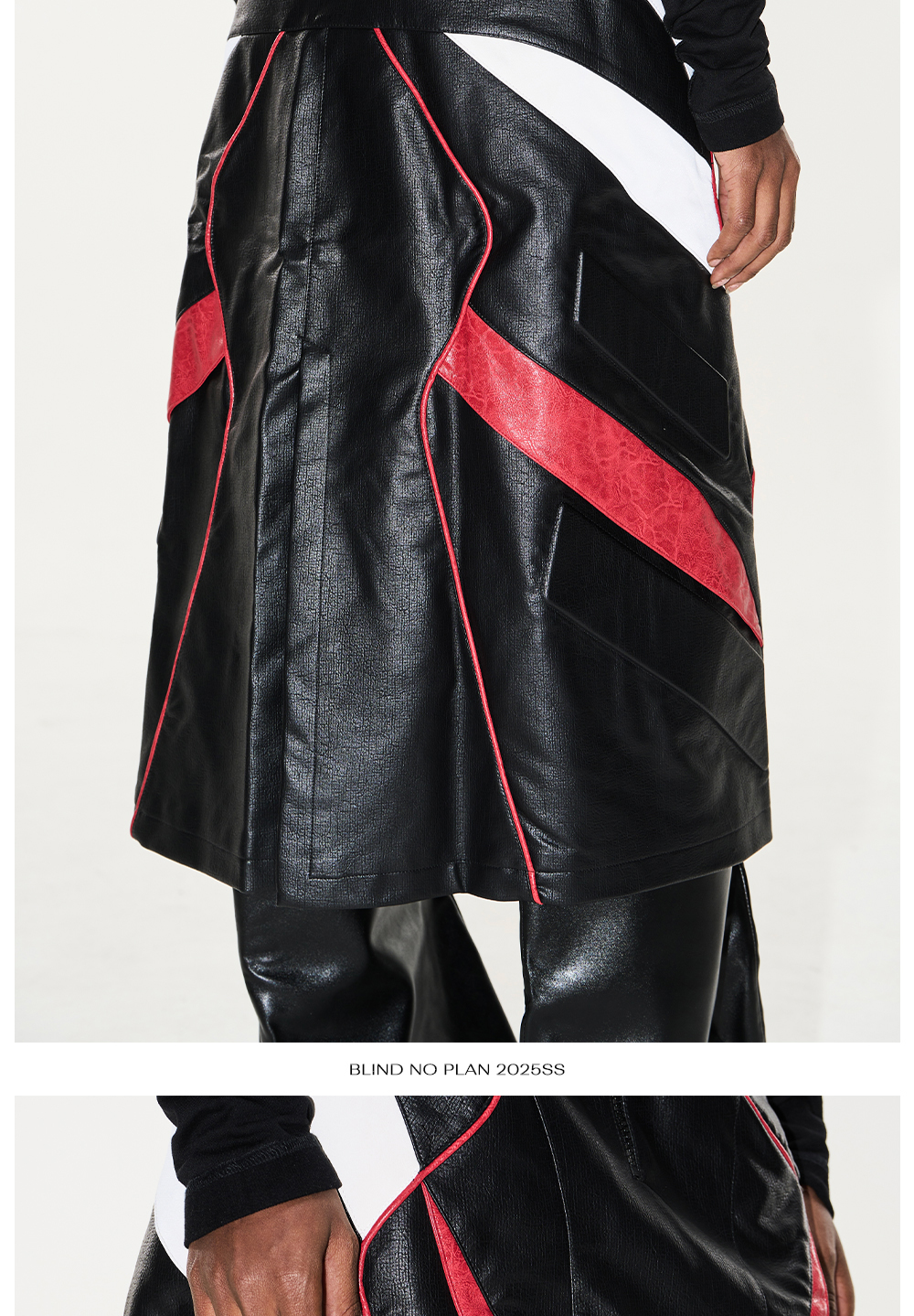 - This skirt combines biker and sports elements with a bold color-block design. The embossed detailing enhances the three-dimensional visual effect, adding depth and texture to the piece.