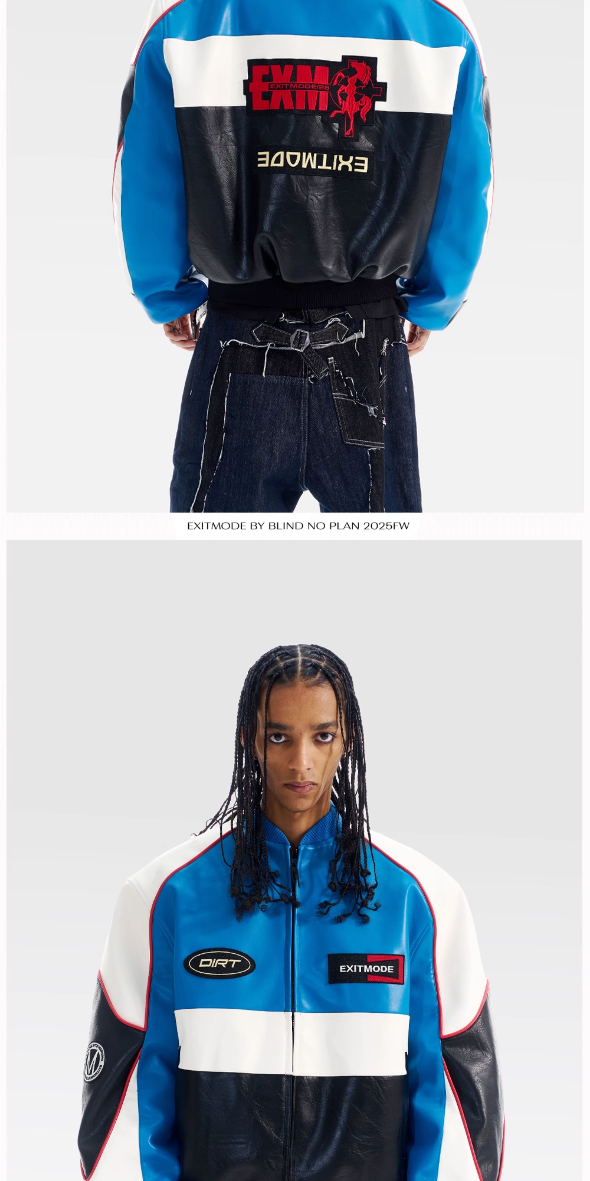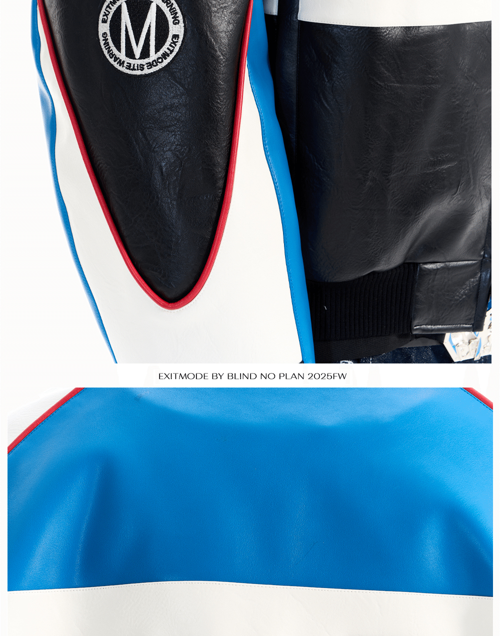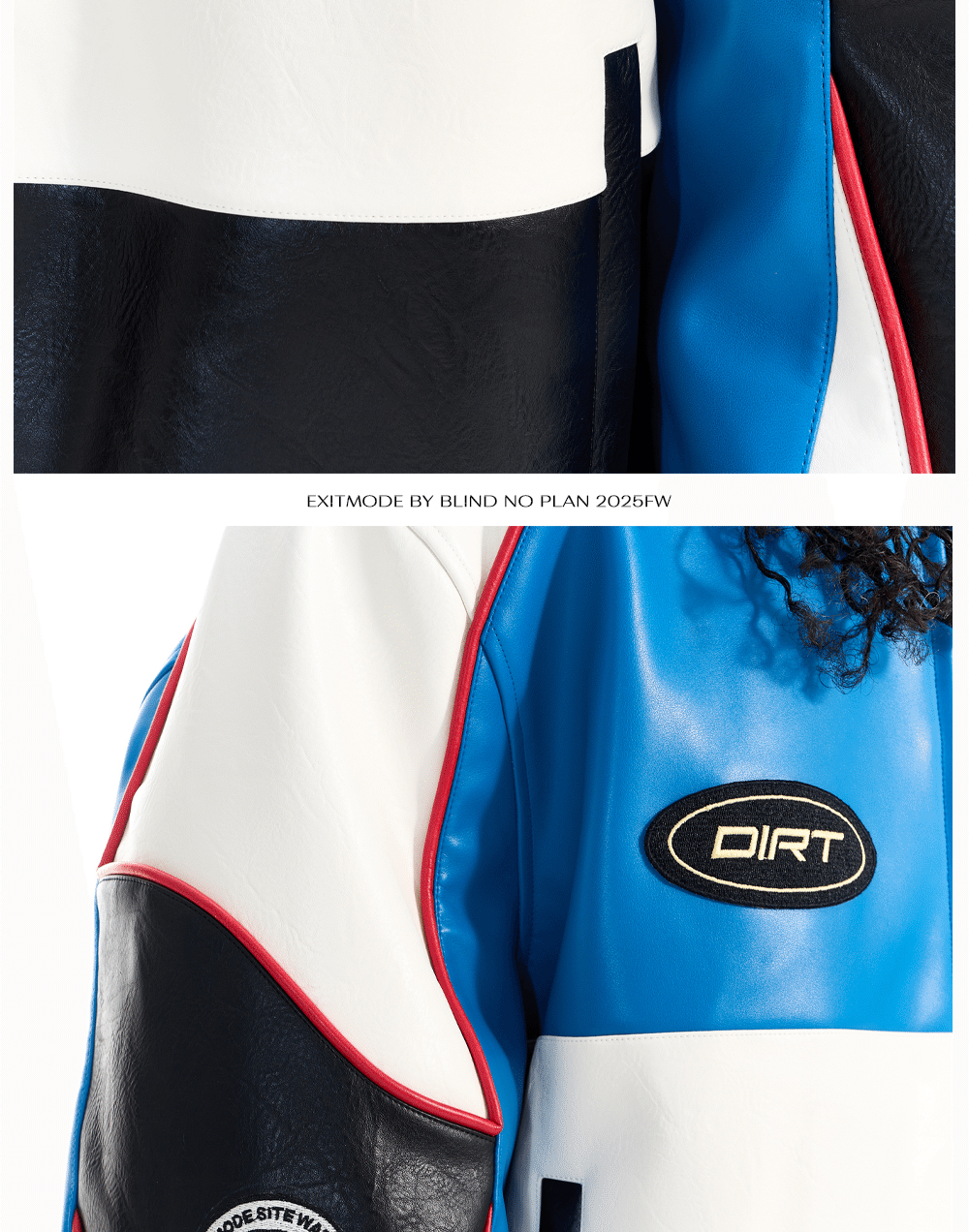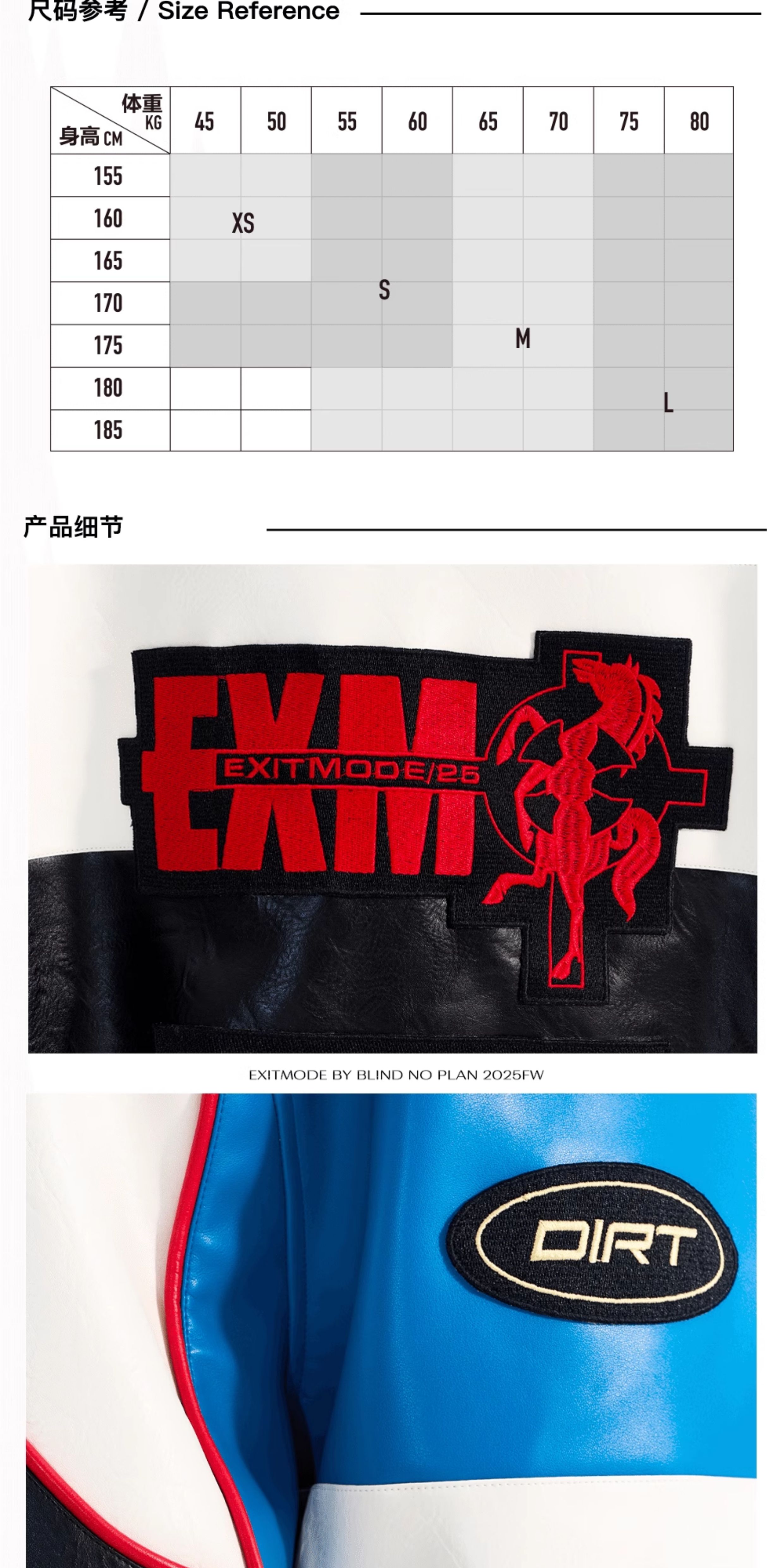 - This jacket features a loose, oversized fit with bold color-block splicing and heavy embroidery details, enhancing its visual impact. Ribbed hems at the bottom add structure and emphasize the voluminous silhouette, creating a standout streetwear piece.