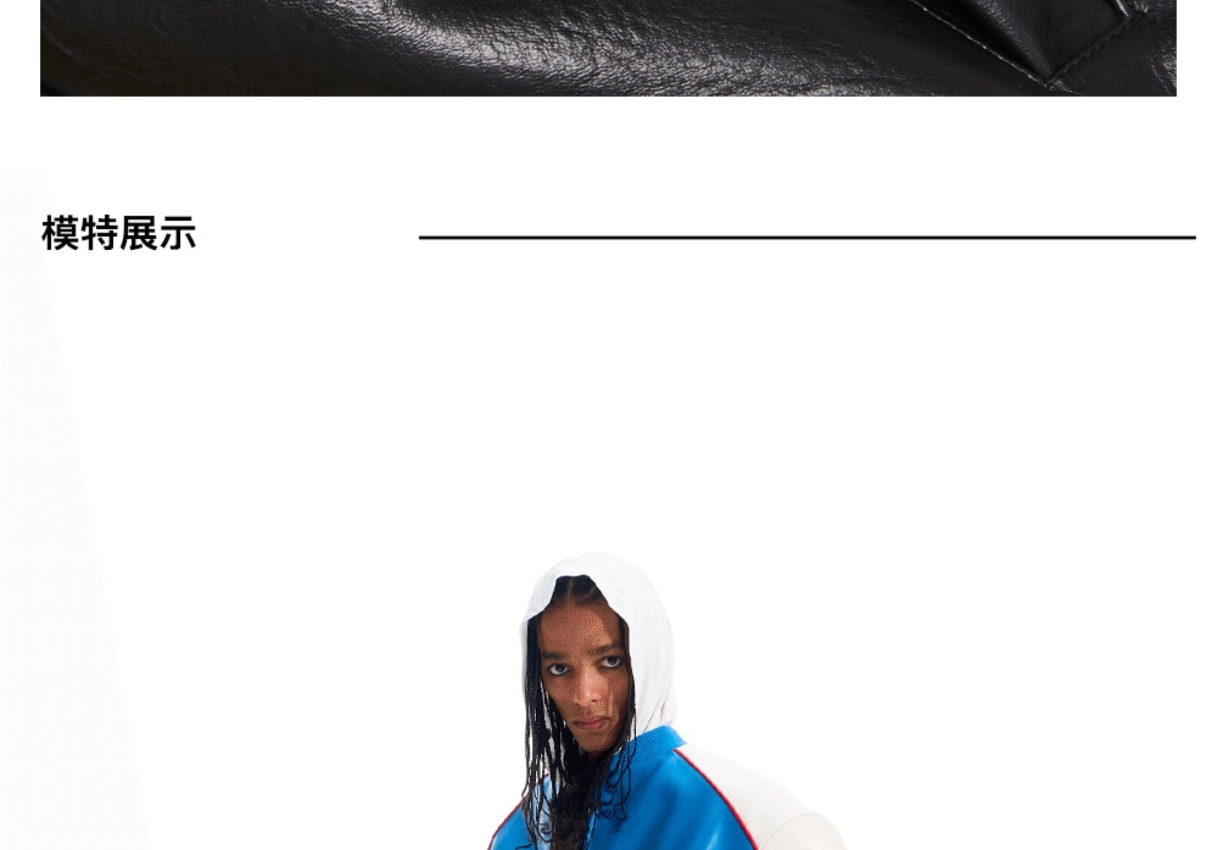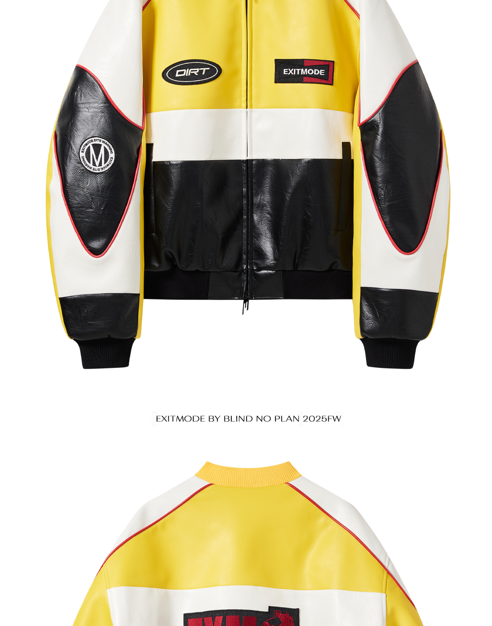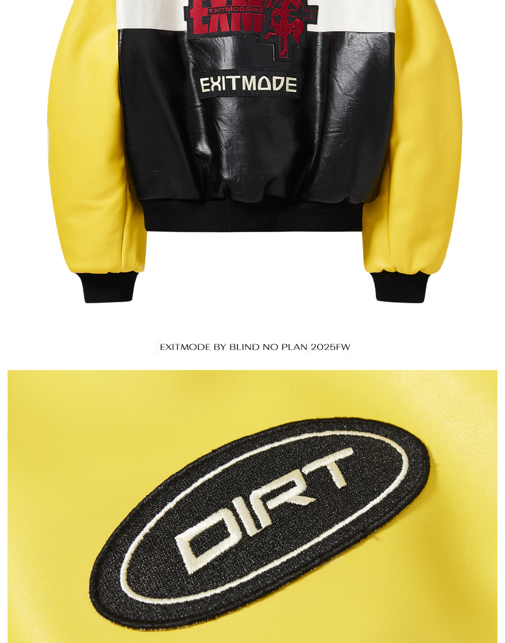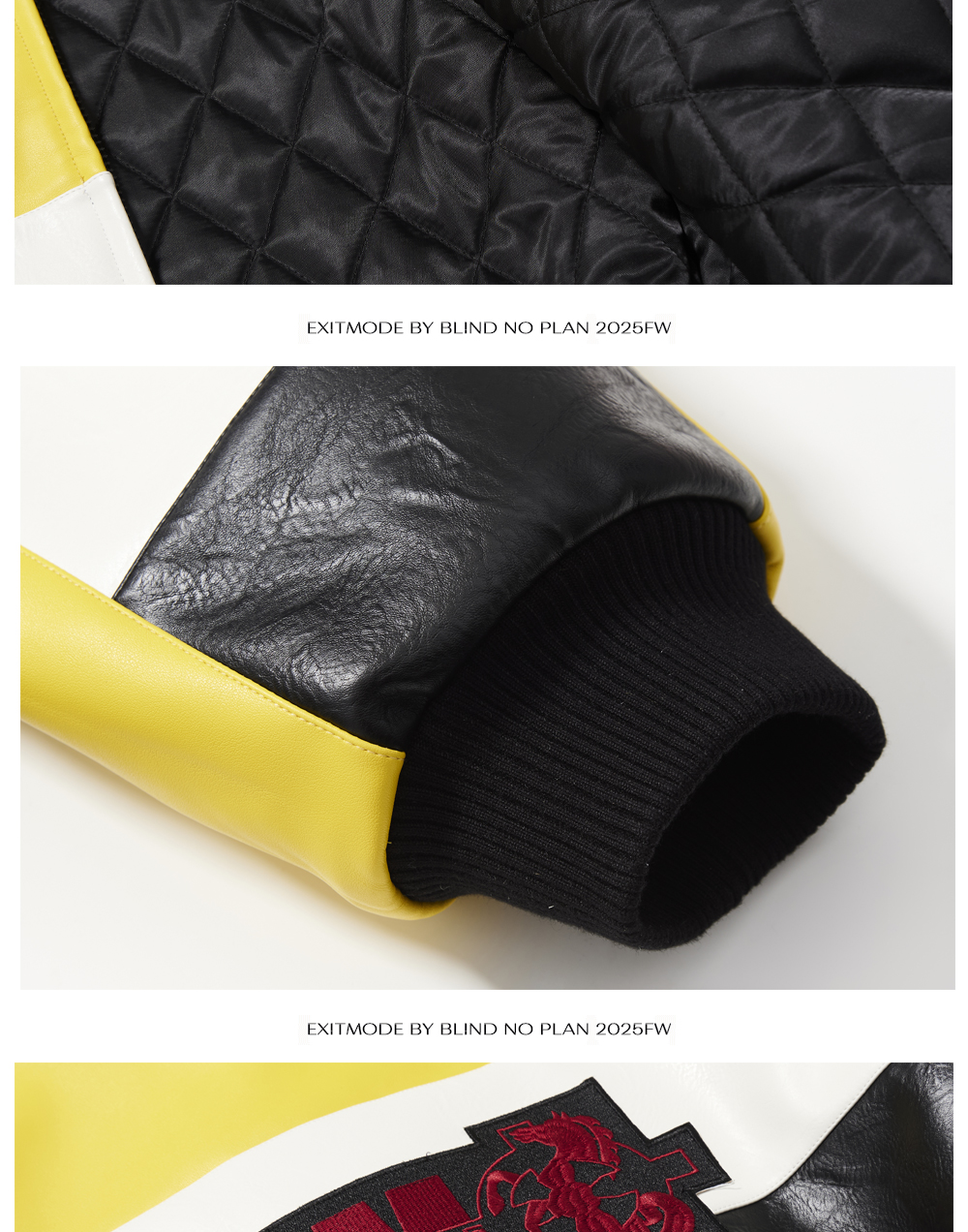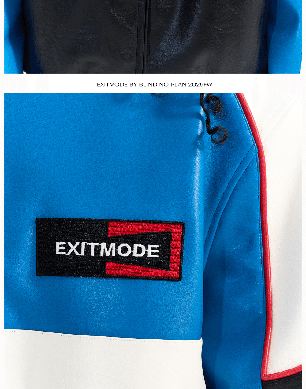 - This jacket features a loose, oversized fit with bold color-block splicing and heavy embroidery details, enhancing its visual impact. Ribbed hems at the bottom add structure and emphasize the voluminous silhouette, creating a standout streetwear piece.