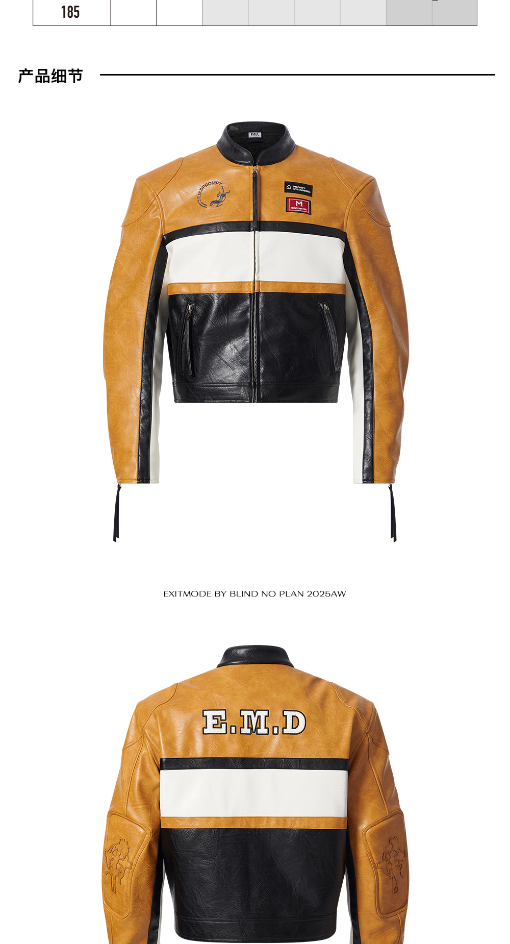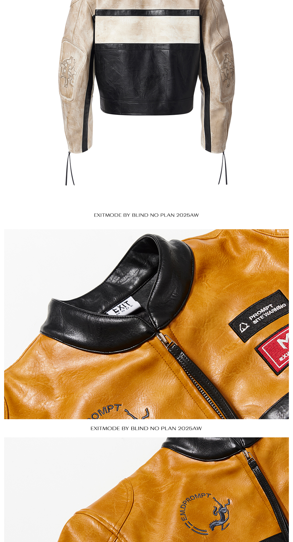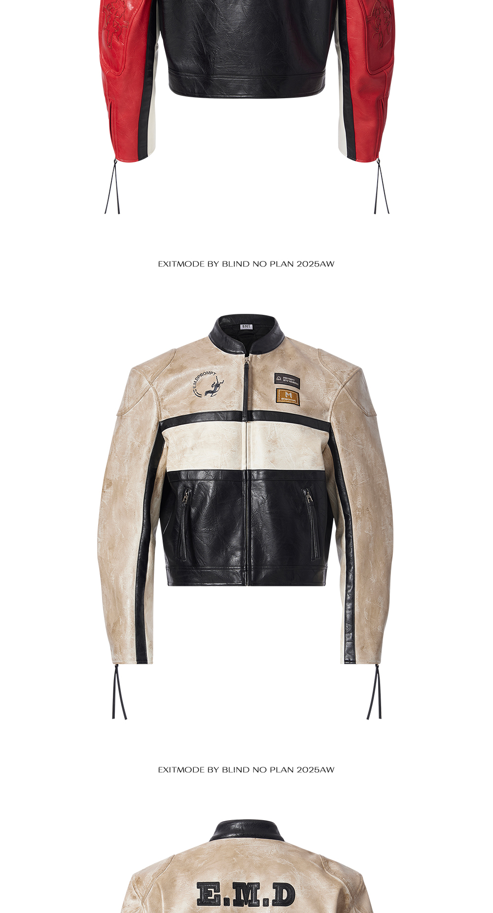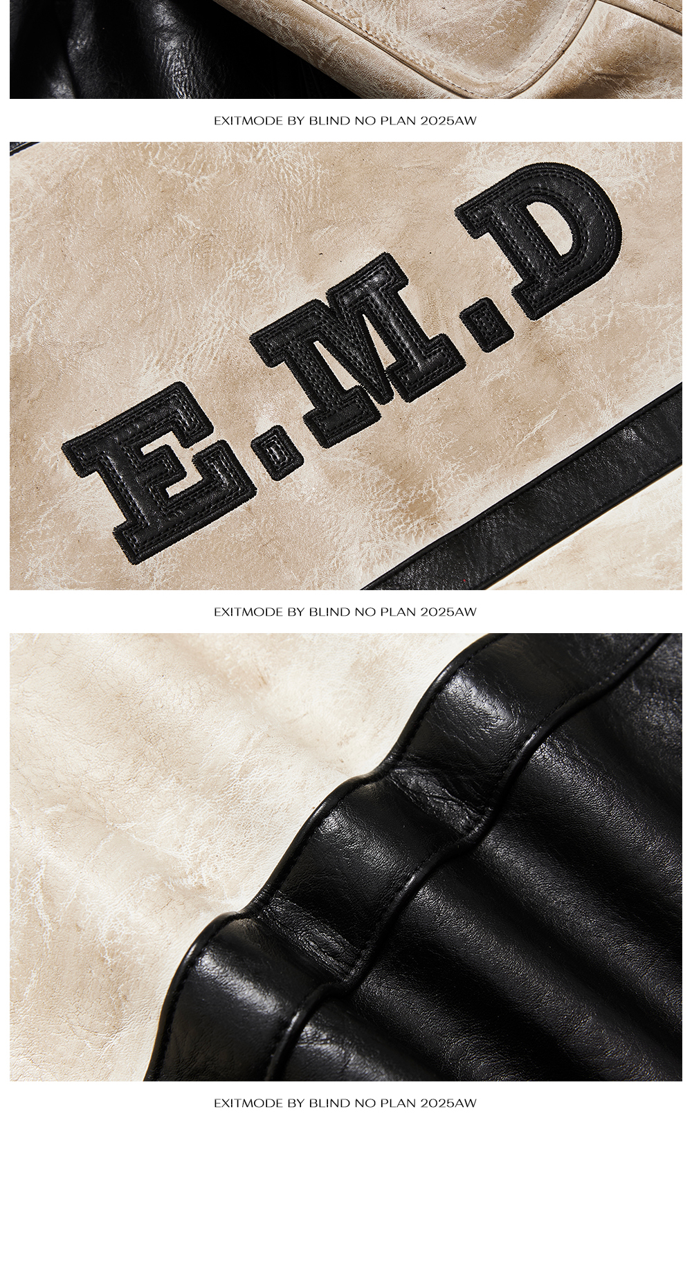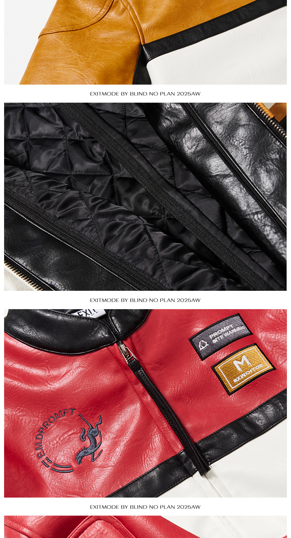 - This jacket features a relaxed, oversized fit with color-block panels and patched embroidery combined with badge-style embroidery. The distressed finish adds texture and depth, and the removable padded lining ensures warmth and practicality.