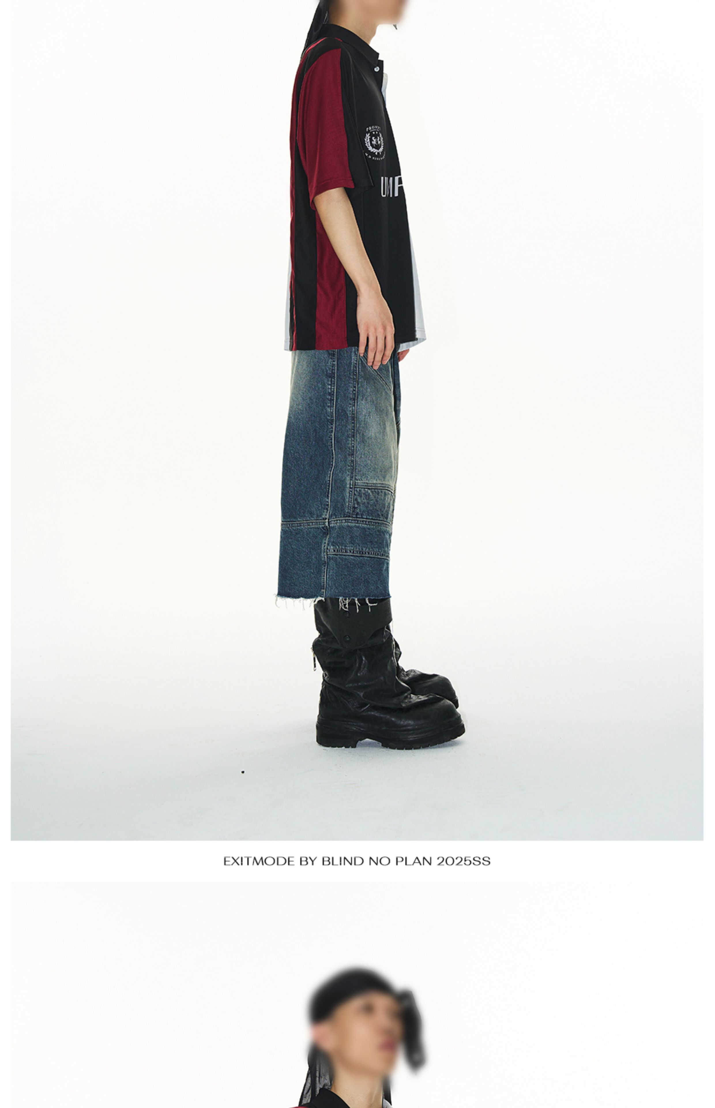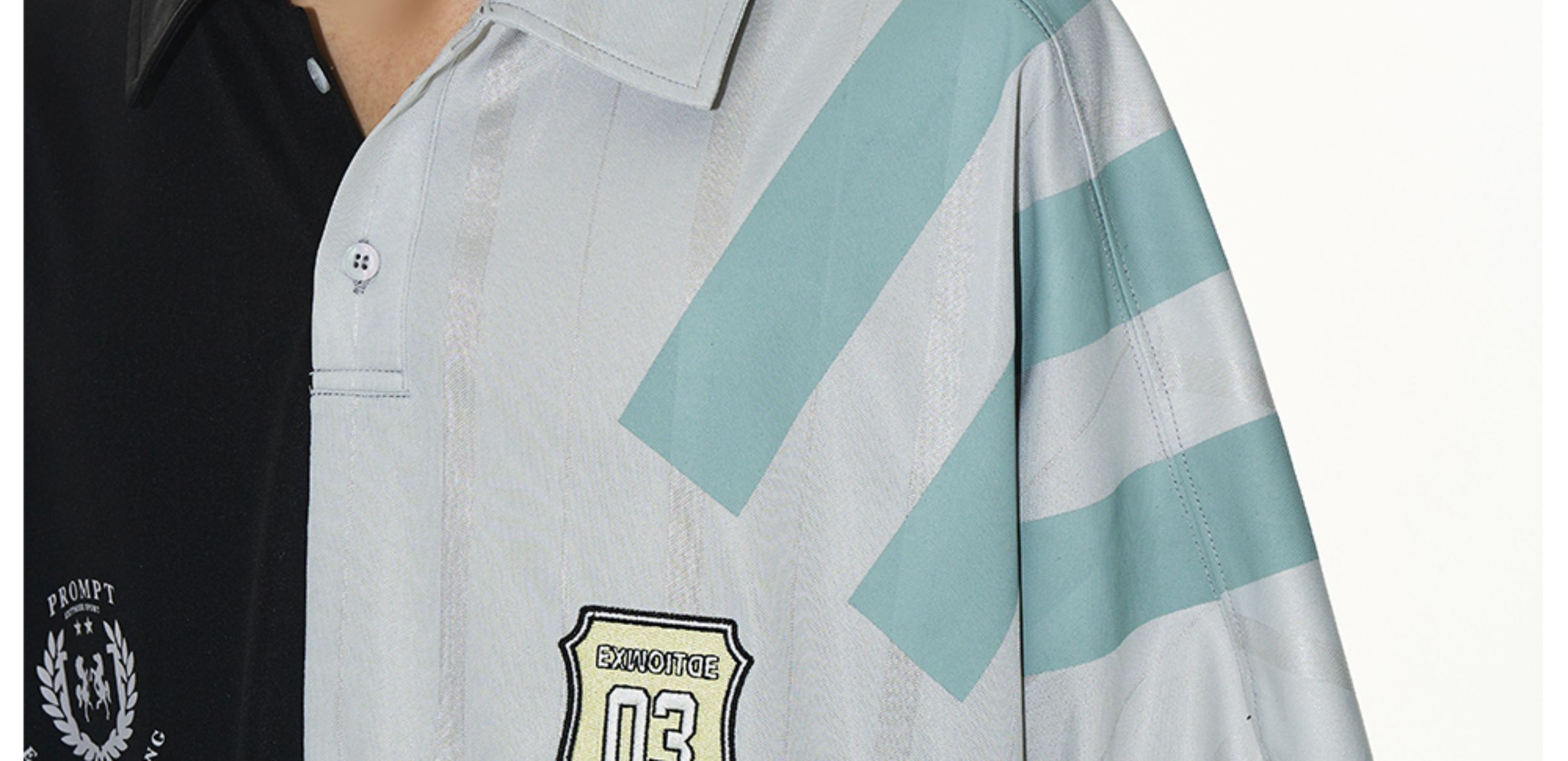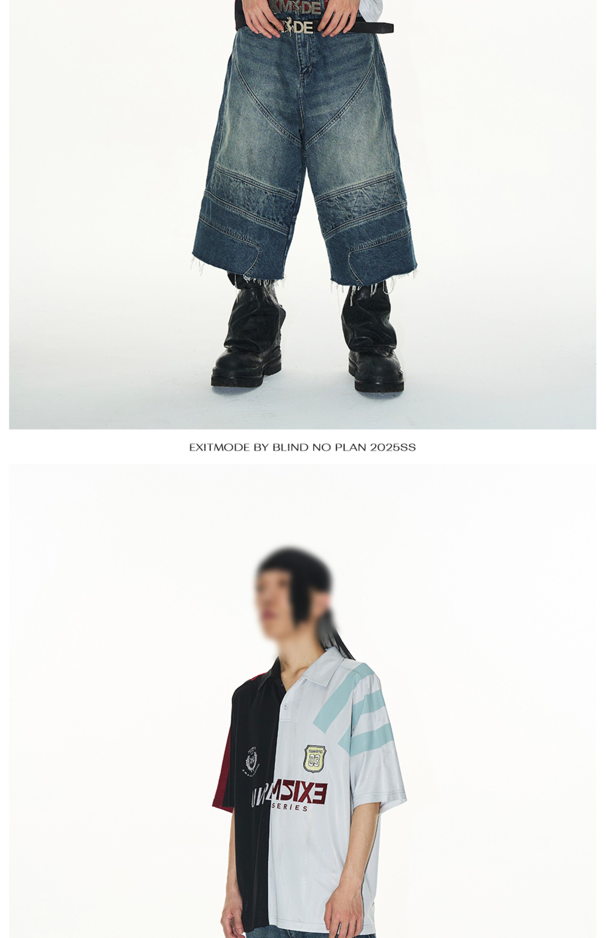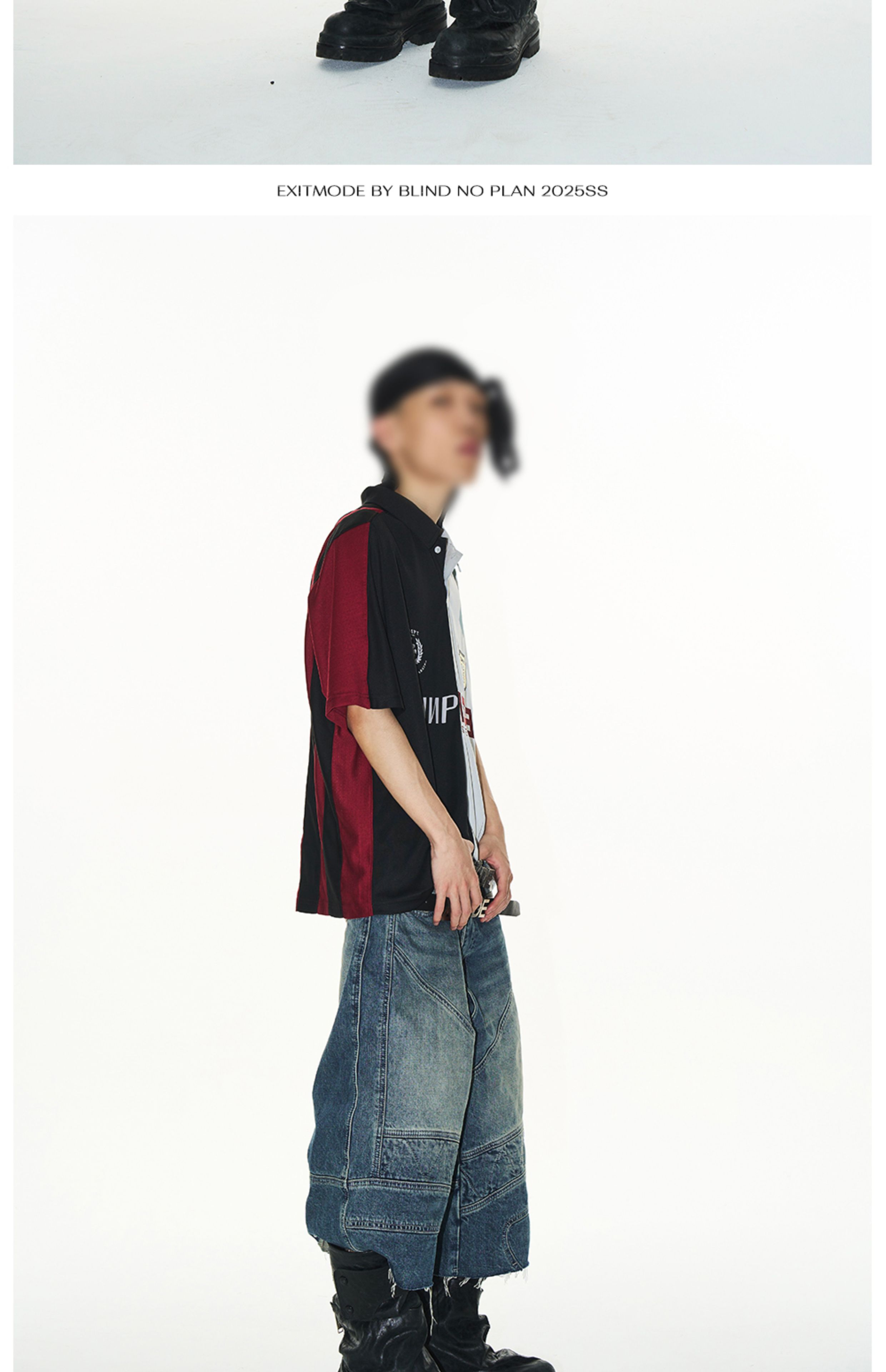 Design Details: This loose-fit polo shirt is crafted with contrasting fabrics in a color-block splicing design. Inspired by remake jersey aesthetics, it features a combination of screen printing and embroidery, creating a visually rich and layered effect.