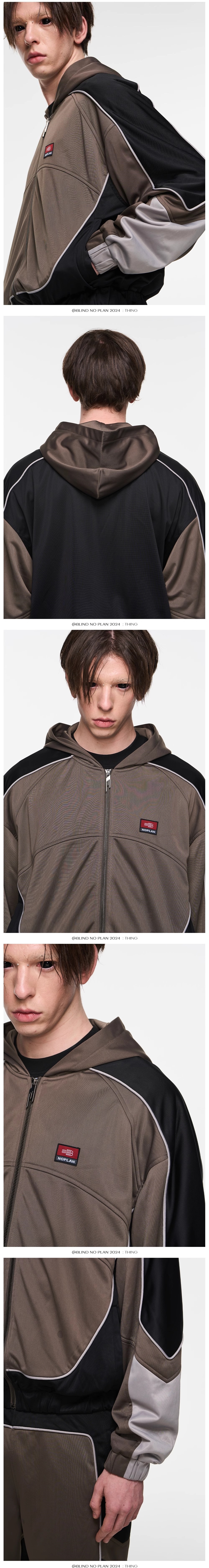 Design Details: The garment features a vintage color-blocking design with added three-dimensional stripe elements at the splicing shapes, enhancing visual layers. A custom embroidered logo on the front chest adds intricate details, and the mesh lining provides breathability with a textured feel.