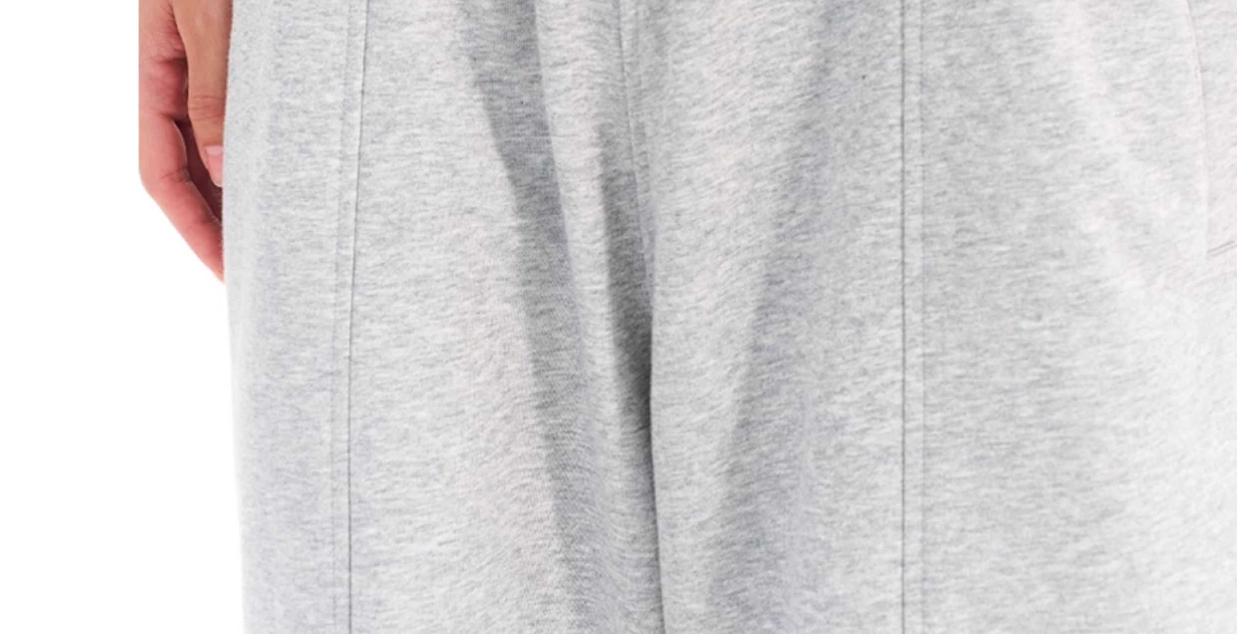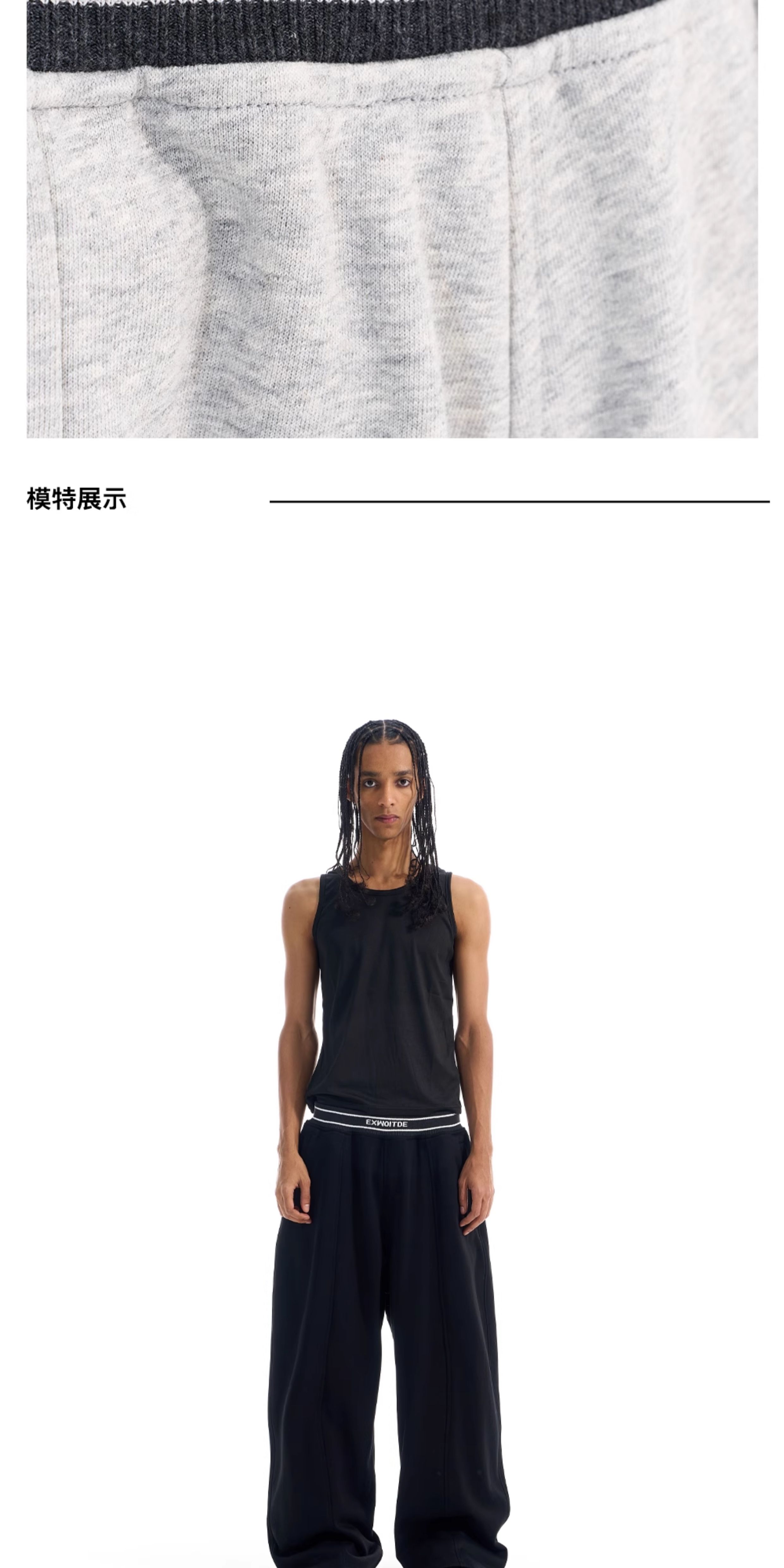 - These pants feature a loose scimitar silhouette with a custom ribbed waistband combined with sweatpant elements. The design maintains a clean overall look while incorporating colorblock details to enhance visual appeal.