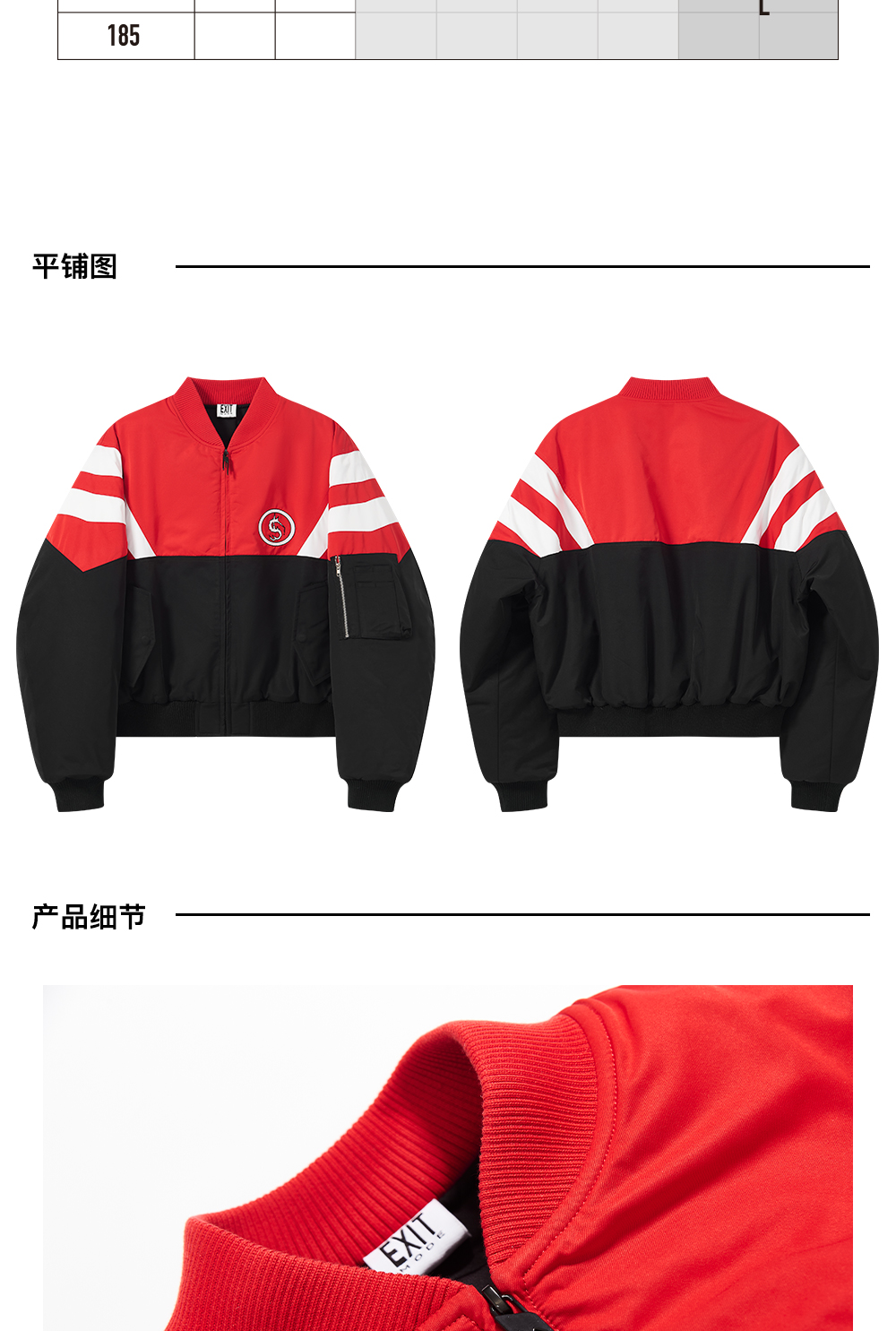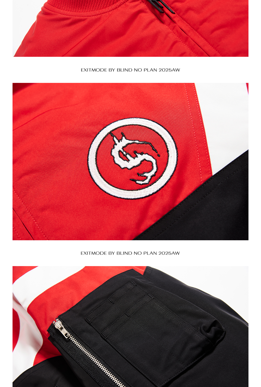 - This jacket features a loose bomber silhouette reimagined with bold colorblock sports-style paneling. The contrasting design adds depth and dynamic visual layers, combining comfort with a modern streetwear edge.