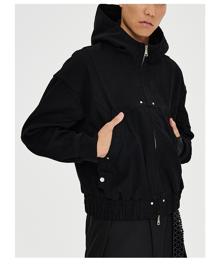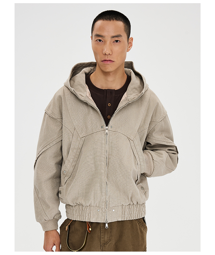 Relaxed dropped-shoulder design for enhanced mobility, balancing comfort and style.Front and back panel seams are combined with small articulated panels, creating rich visual layering that breaks the flat surface and builds a three-dimensional shape.Critical stress points feature upgraded triple-needle stitching for superior strength. The hem uses a wide-band elastic drawstring, tighter than standard ribbing, for a secure fit.The cuffs elastically conform to the wrists for wind resistance and heat retention, preventing the sleeves from riding up during activity. The combination of a wide upper and cinched hem creates a structured "wide-top, tapered-bottom" silhouette.This design breaks the monotony of a straight-cut jacket, showcasing thoughtful craftsmanship. The lining has been upgraded to a twill silk-feel fabric for a smooth, skin-friendly, and luxuriously comfortable wear.