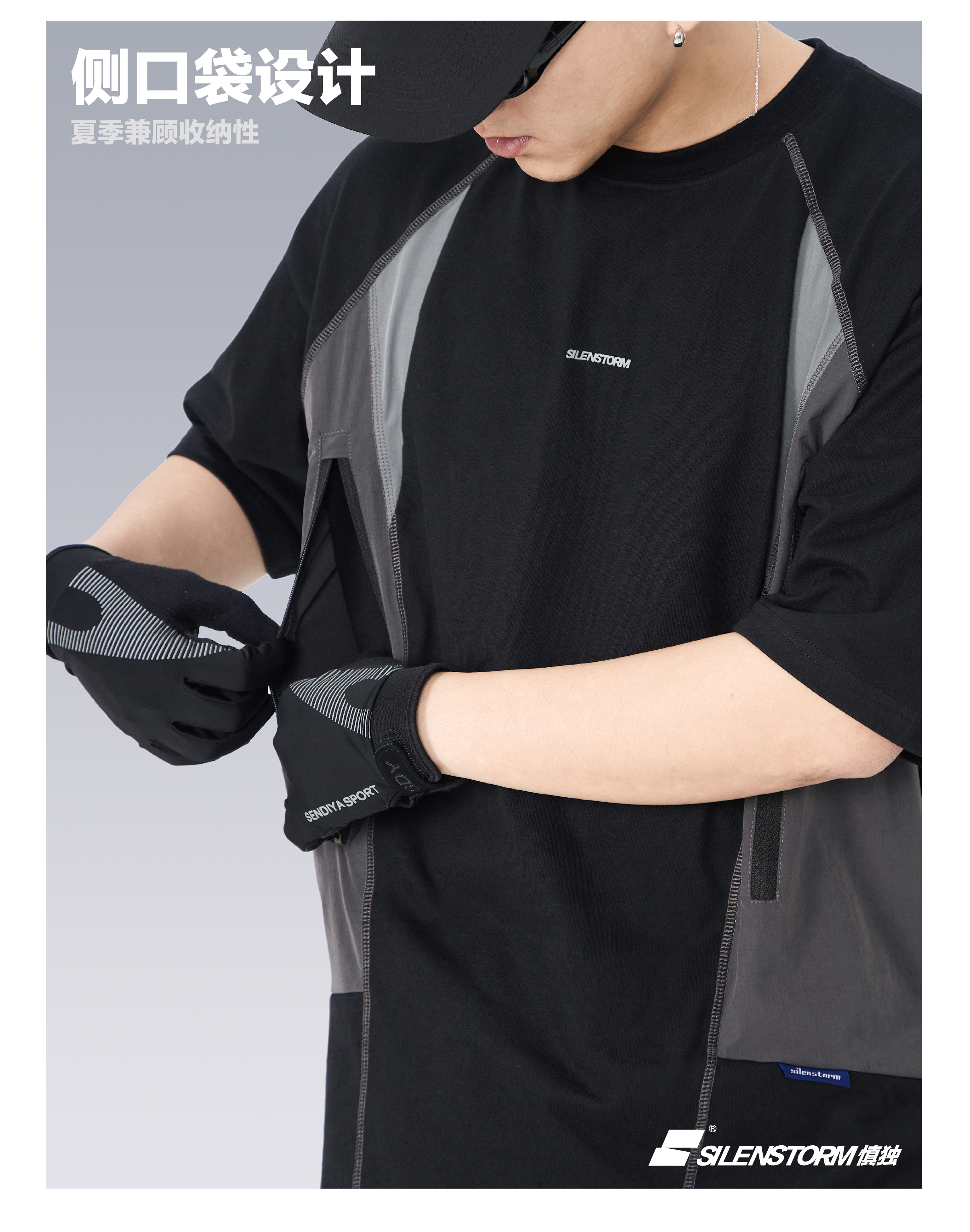 - Made from 230g heavyweight cotton fabric, this T-shirt maintains a structured shape and premium texture. The 100% cotton material ensures excellent breathability and sweat absorption for lasting comfort. With pre-shrunk treatment, it effectively resists shrinkage and deformation from multiple washes. Featuring large contrast side pockets for both function and style, the design is complemented by five-thread overlock stitching and three-dimensional athletic tailoring, blending utility with modern street aesthetics.