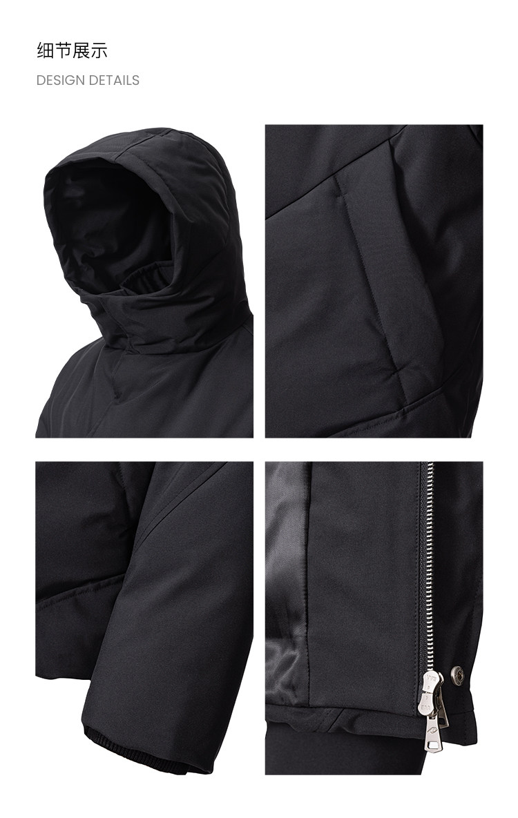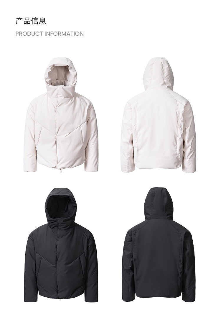 - The jacket features a short, hooded three-dimensional cut that is sharp and non-bulky. The cropped length strategically optimizes proportions, creating a long-leg illusion when paired with high-waisted pants, and is flattering for various body types. The attached hood enhances warmth (shielding the neck from wind) while adding a casual, relaxed vibe to the minimalist design—ensuring a "warmth essential" also offers styling depth. Regular quilt lines securely anchor the down, preventing shifting, and help the jacket retain its full, structured shape even after prolonged wear—building durability into every stitch. The three-dimensional pockets and cuffs: the pockets combine storage (easily holding phones, hand warmers) with styling function, while the subtly tapered cuffs block drafts, integrating practicality seamlessly.