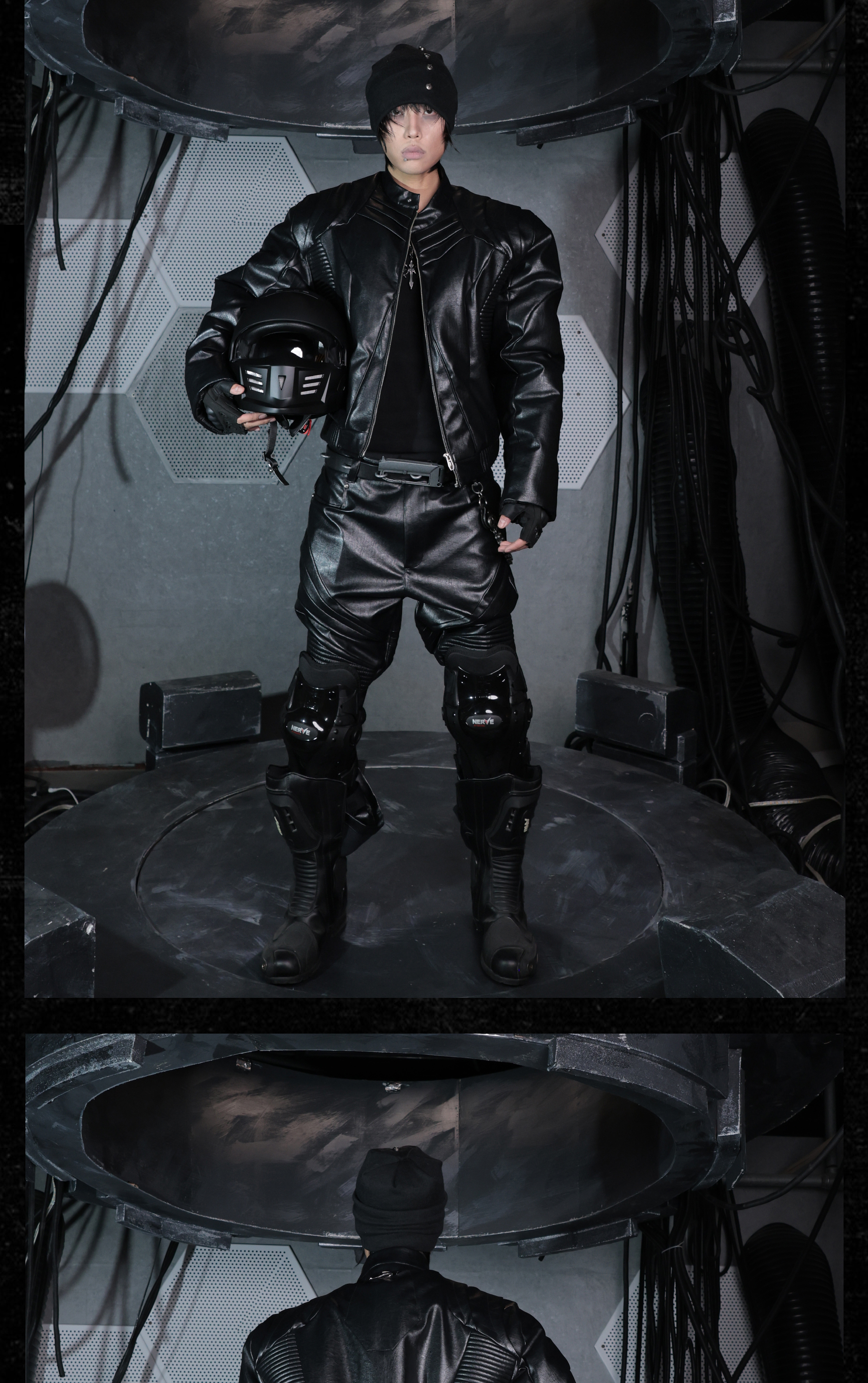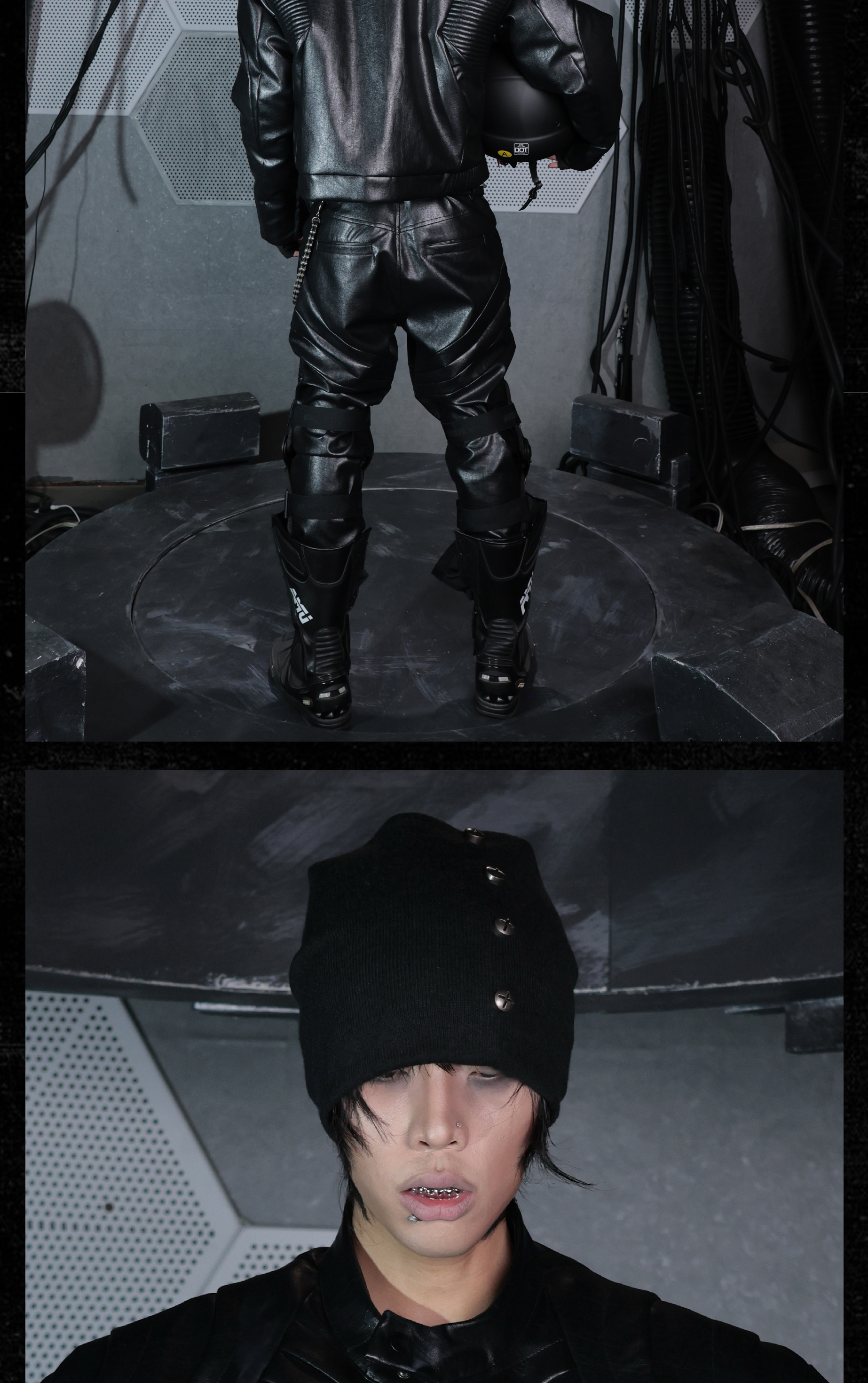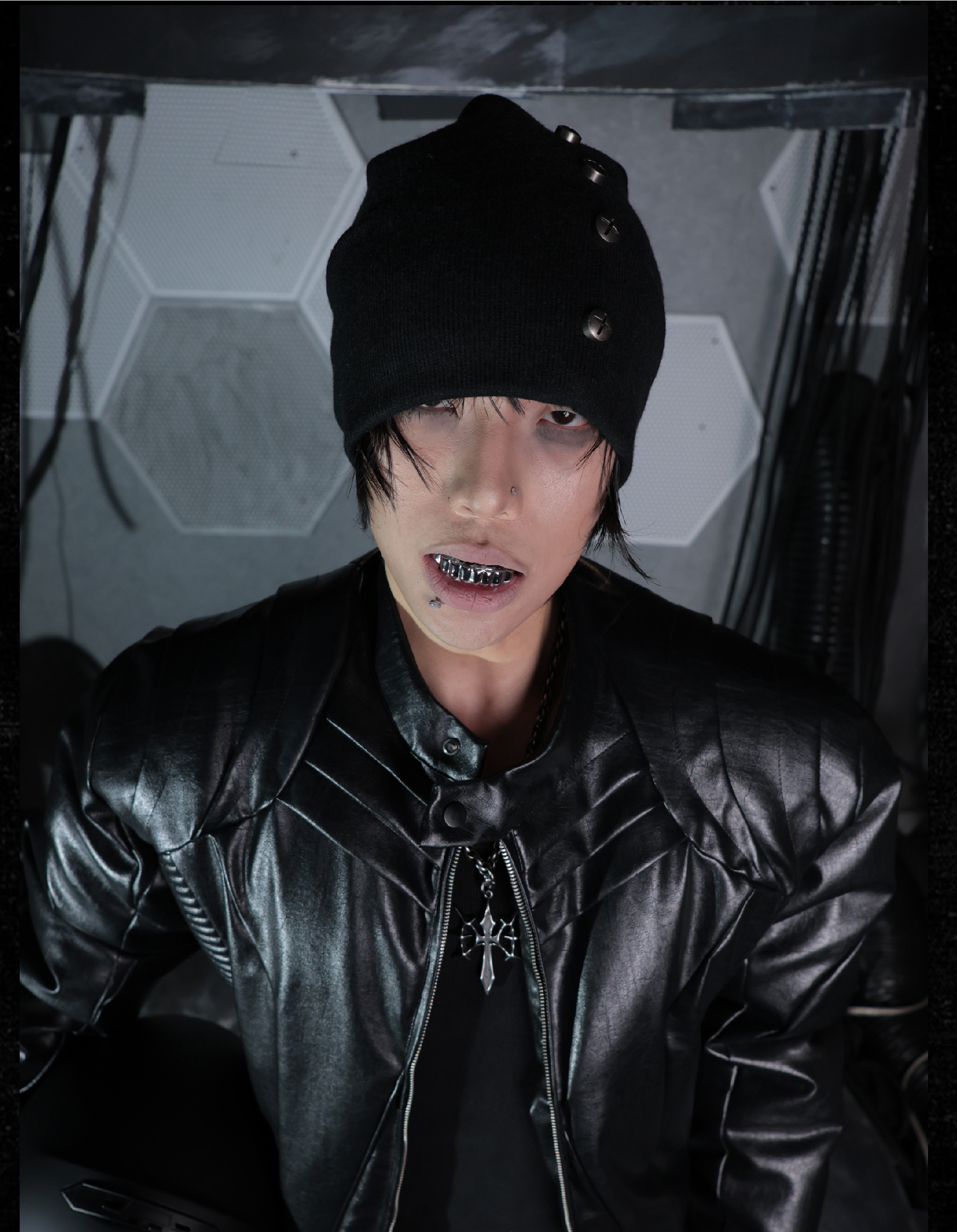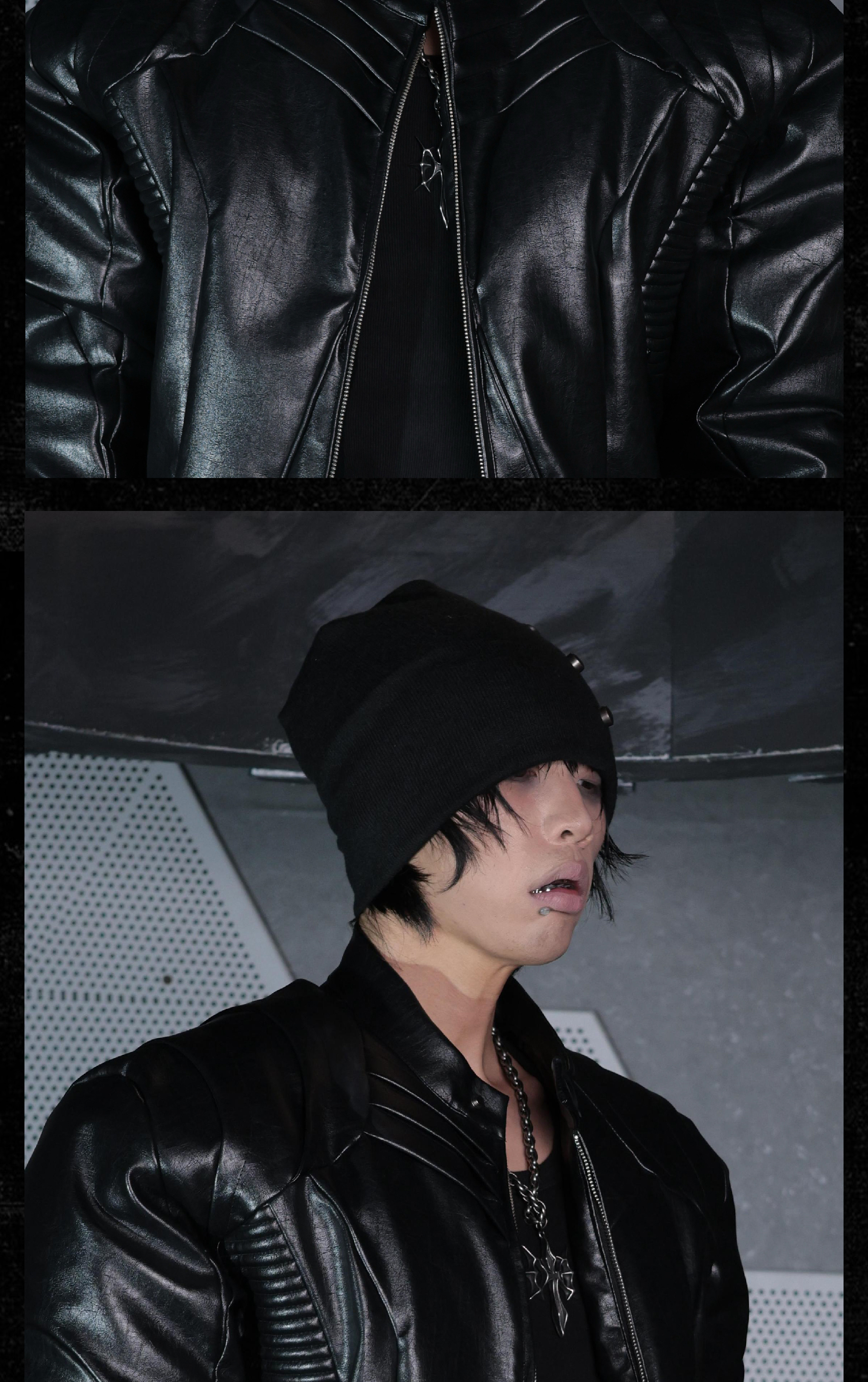- This knitted beanie offers excellent coverage and a stacked silhouette, giving a bold and structured look. Decorated with vintage-style cross studs, it adds an avant-garde, dark aesthetic to the accessory. Its versatile design makes it easy to pair with various outfits while maintaining a distinctive edge.