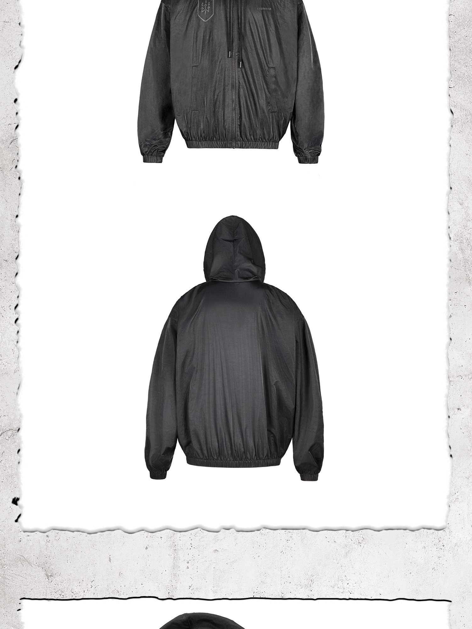 - Crafted in a UW slim fit, this jacket is made from water-repellent fabric, offering agility with a lightweight and comfortable feel. The adjustable drawstring hood, elastic cuffs, and hem provide windproof and sun-protective functionality, making it versatile for both training and urban wear. Featuring a custom-branded zipper for subtle distinction, the chest displays the Demon Hunter Squad insignia alongside the UW logo, printed with special ink that shifts under different lighting for a refined effect. Symbolic of the Dark Soul Squad’s covert identity, this jacket serves as their official training uniform, designed for silently blending into the night along the shadowed edges of the dark city.