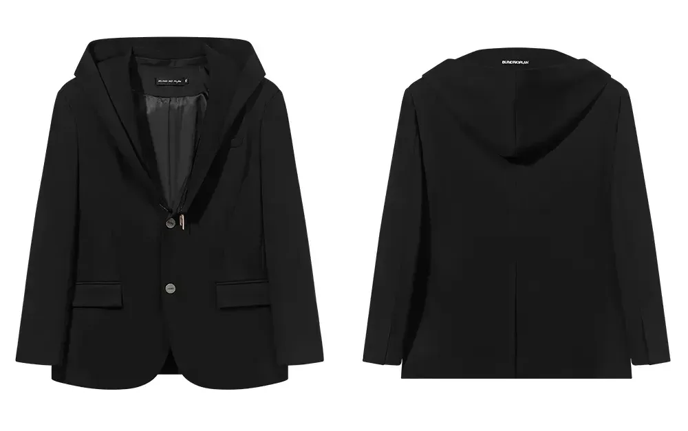 Design Details: Oversized hooded silhouette, loose fit throughout the body. The hood is made from hoodie material and features a zip design, allowing for a detachable style, creating two different looks.