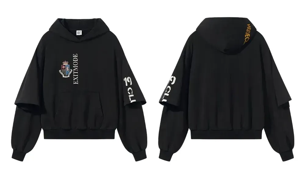 Design Details: This hoodie features a unique dual-sleeve structure, combining short and long sleeves for a layered effect and versatile styling. The washed and distressed fabric enhances the vintage aesthetic, while intricate embroidery and printed details add depth and character.