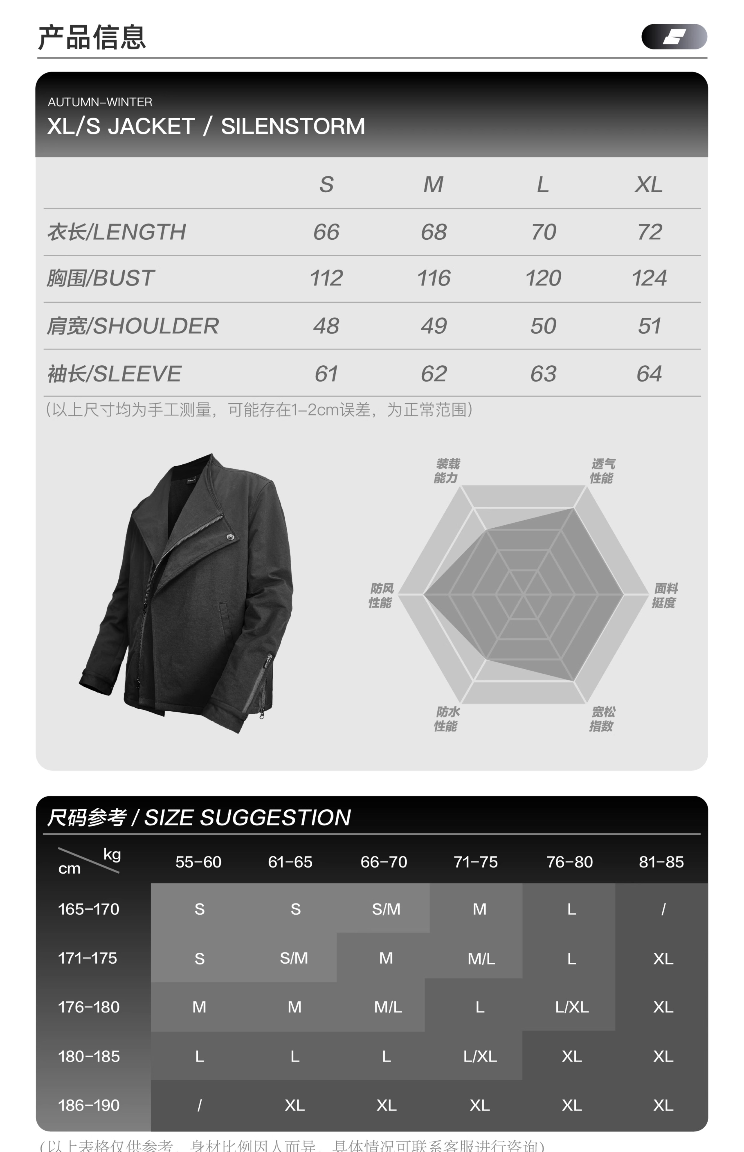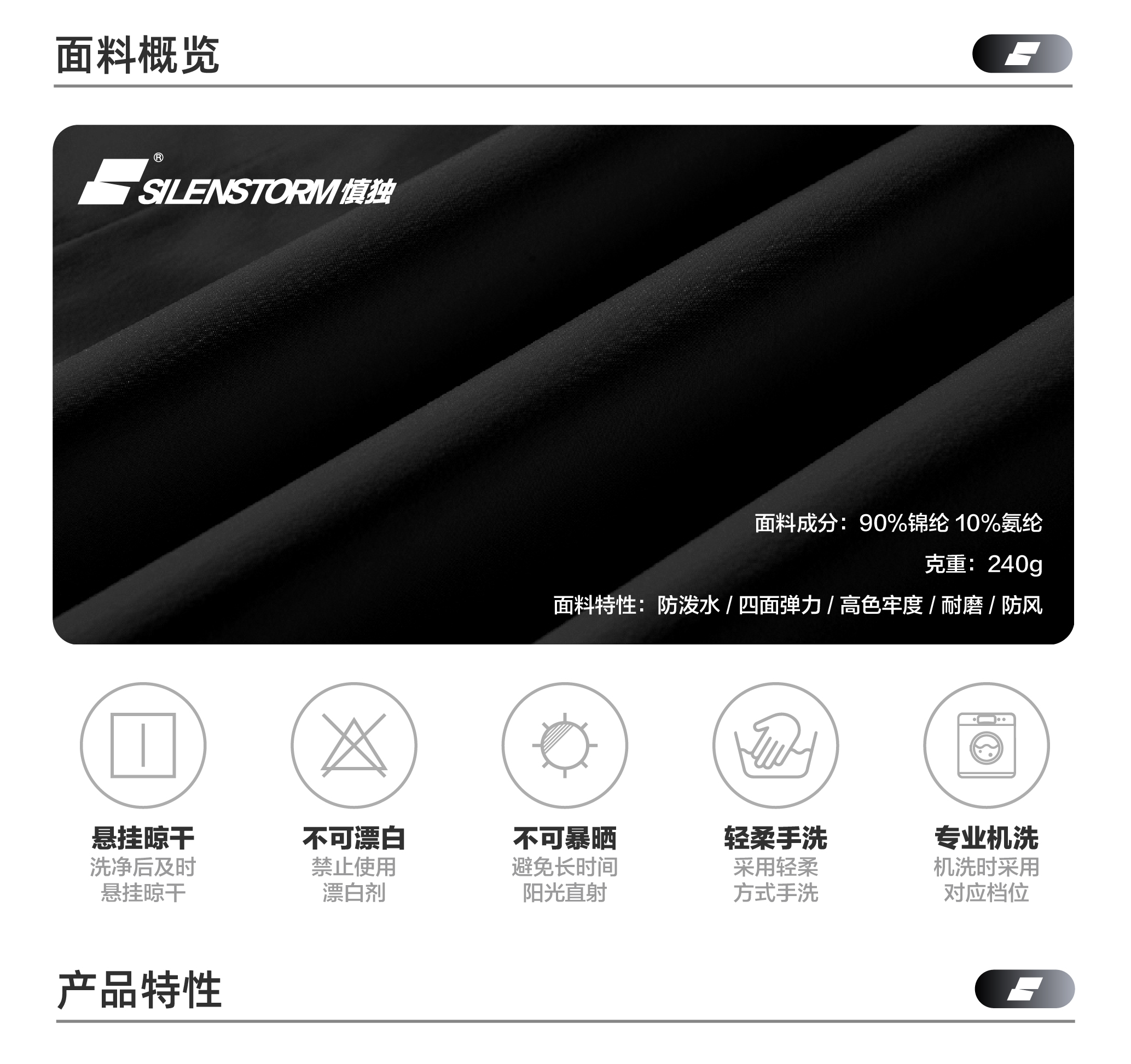 • Fabric features: water repellent, four-way stretch, high color fastness, wear-resistant, windproof