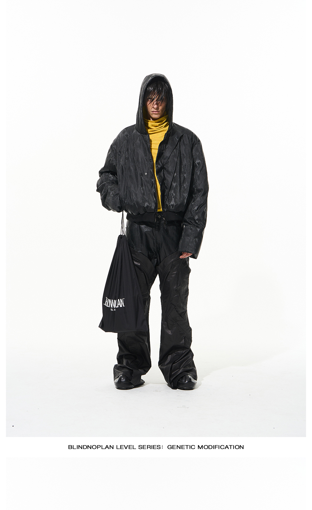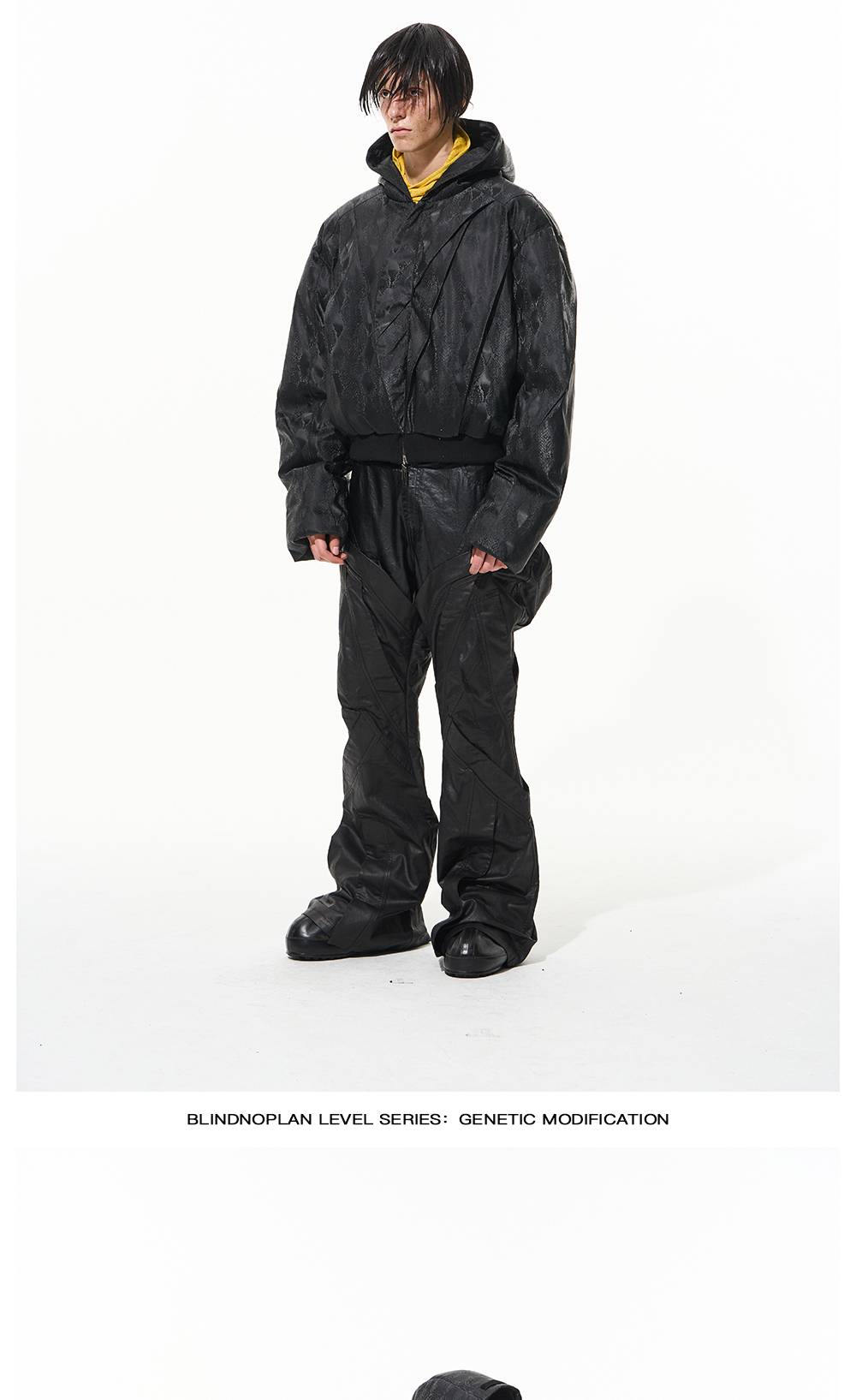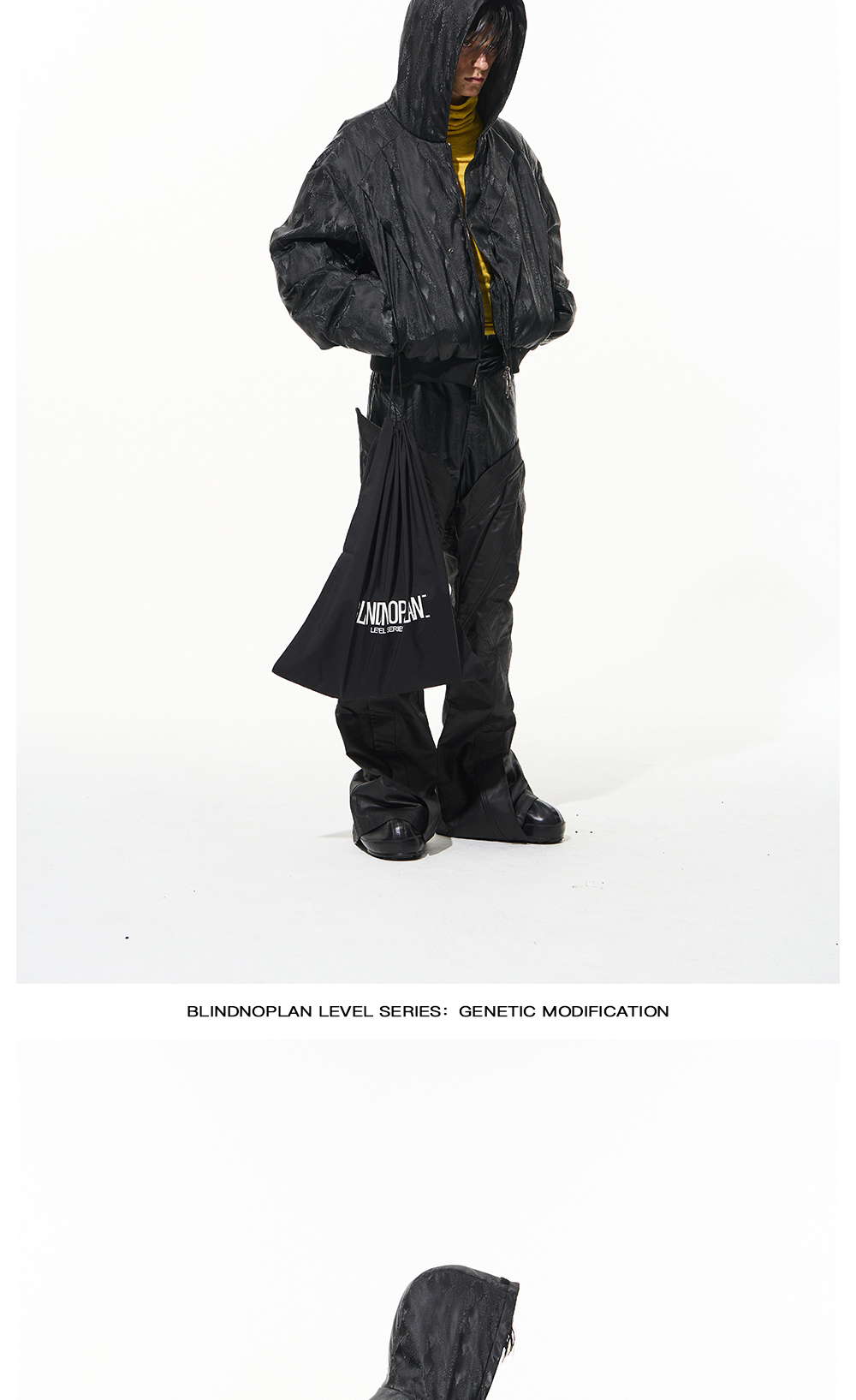 Design Details: Double-layer hood design of the body, the use of two different fabrics for staggered splicing,details are layered.