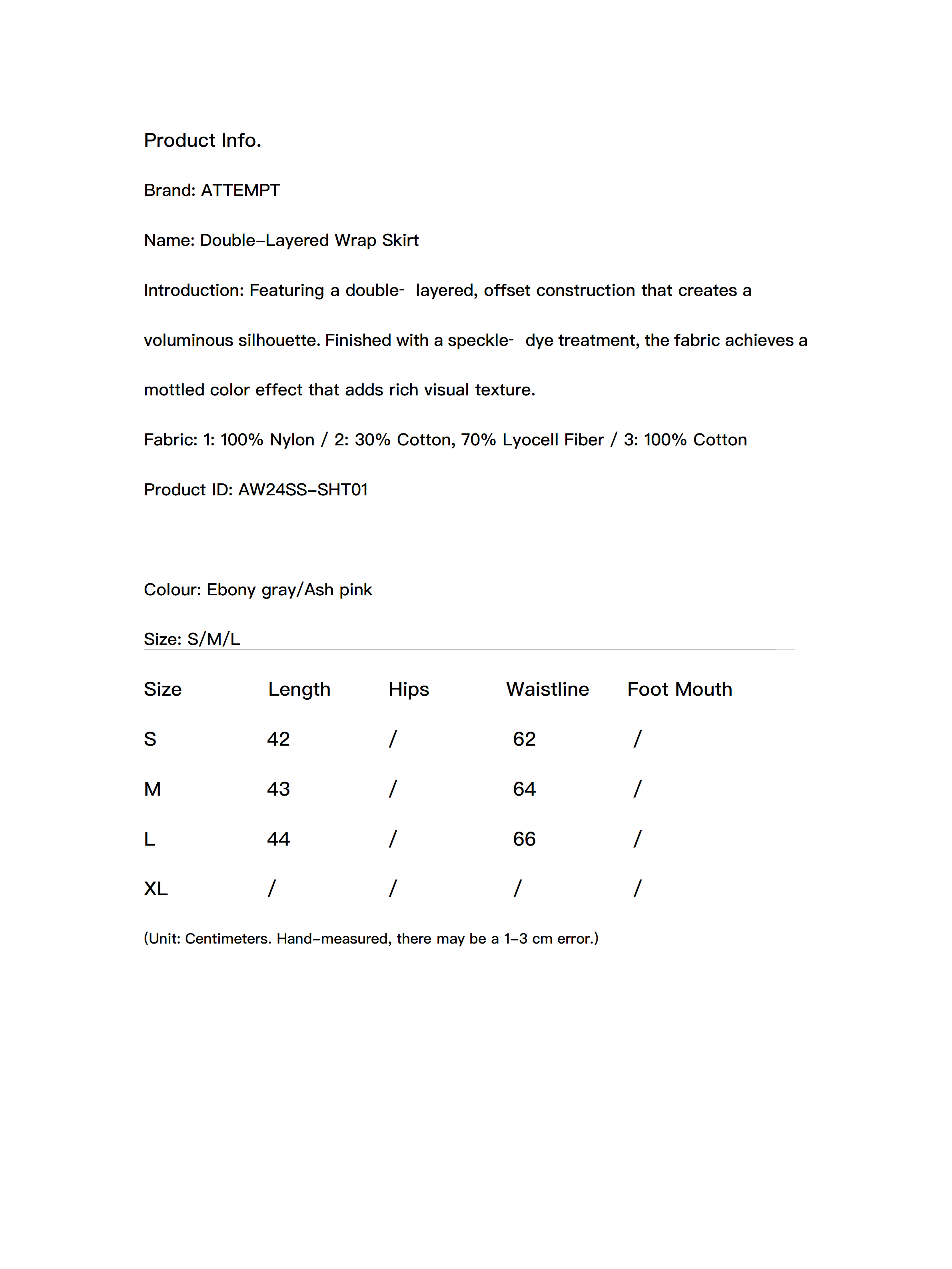 Featuring a double‑layered, offset construction that creates a voluminous silhouette. Finished with a speckle‑dye treatment, the fabric achieves a mottled color effect that adds rich visual texture.