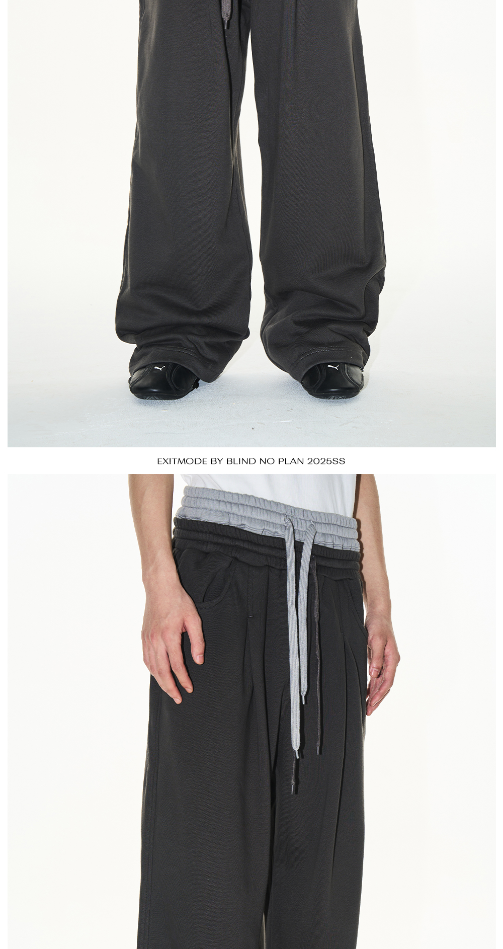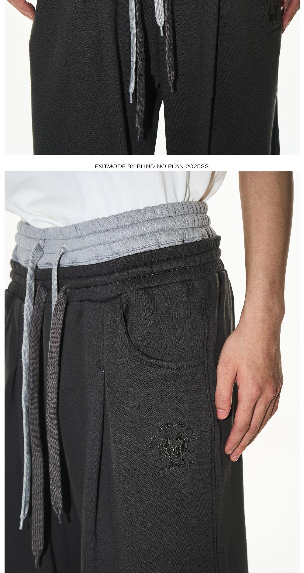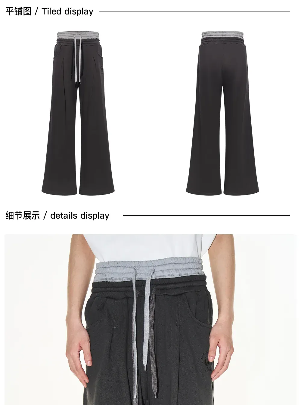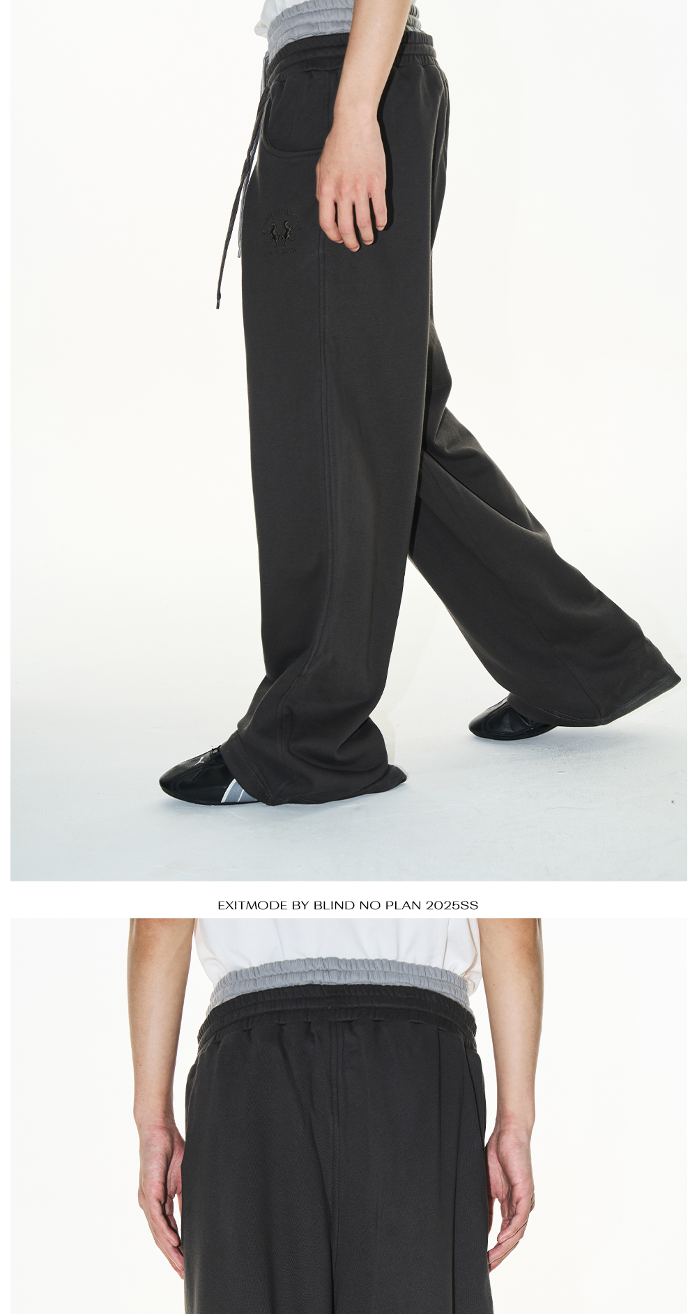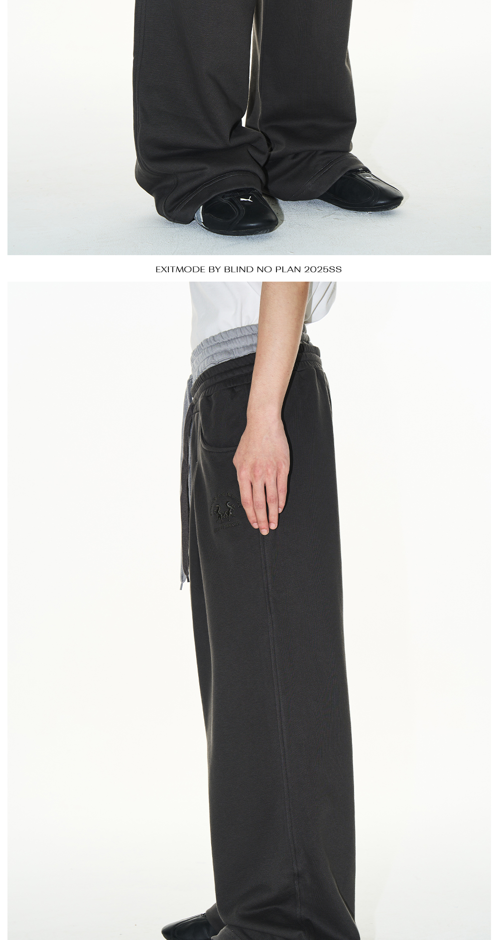 Design Details: These sweatpants feature a loose straight-leg fit and a contrast double waistband design. The pleated detailing at the waist adds dimension, while subtle embroidery accents complete the look with understated style. A versatile piece for everyday wear.