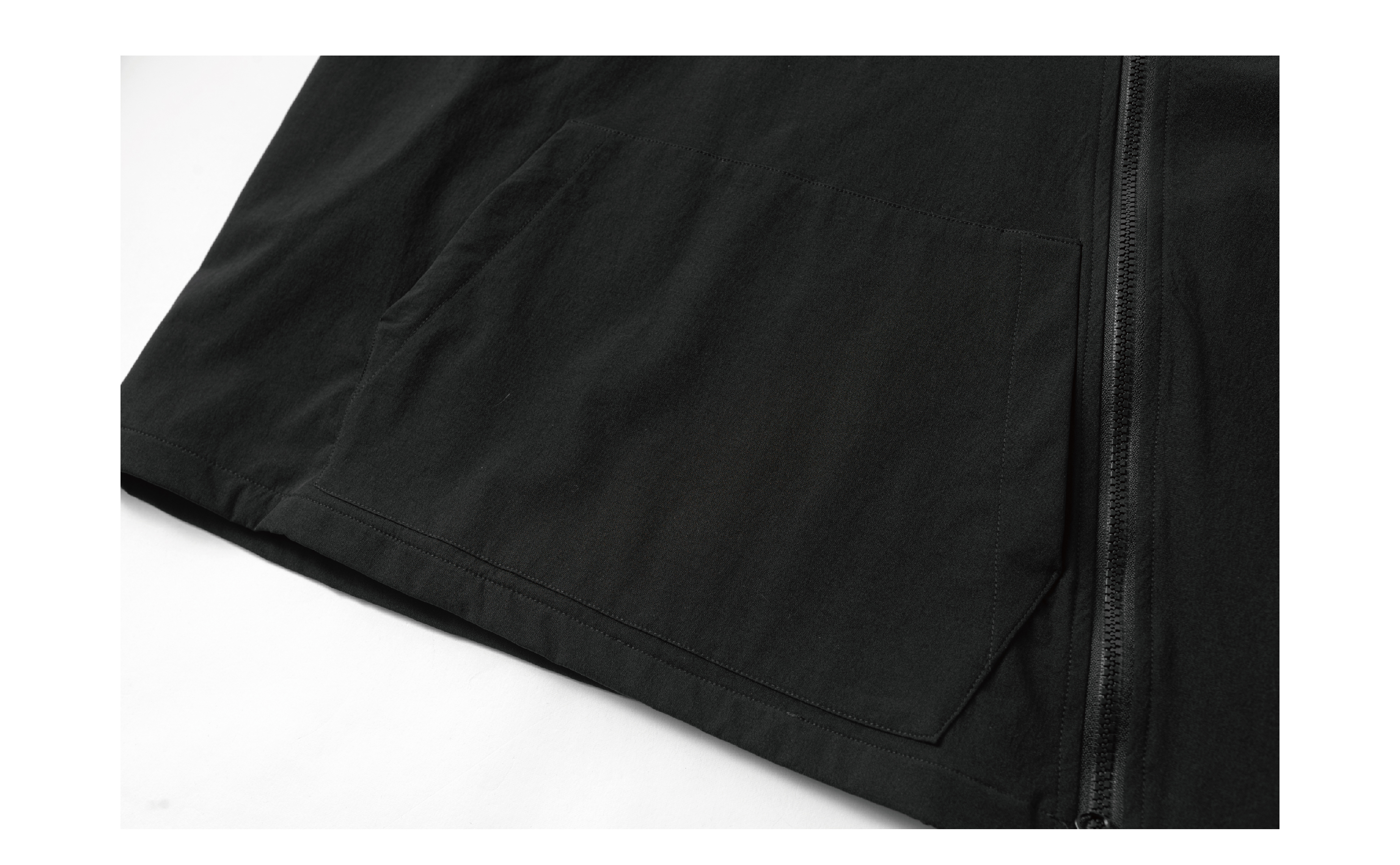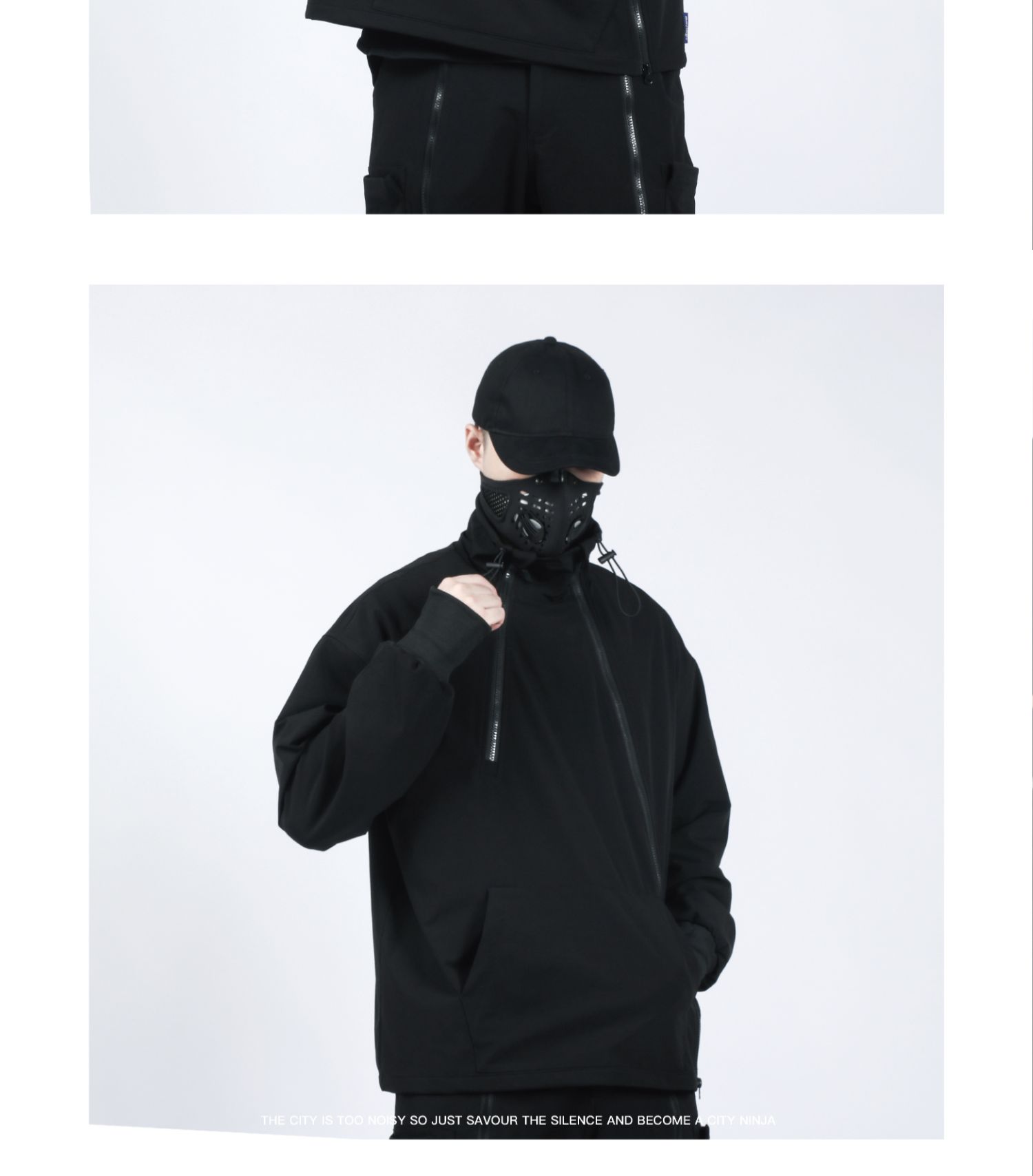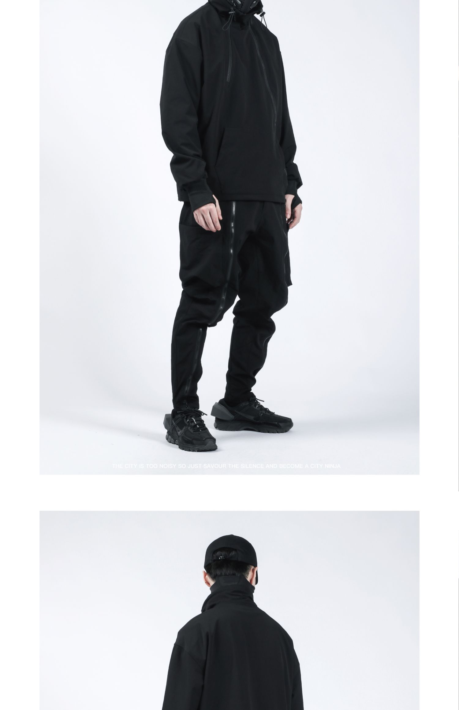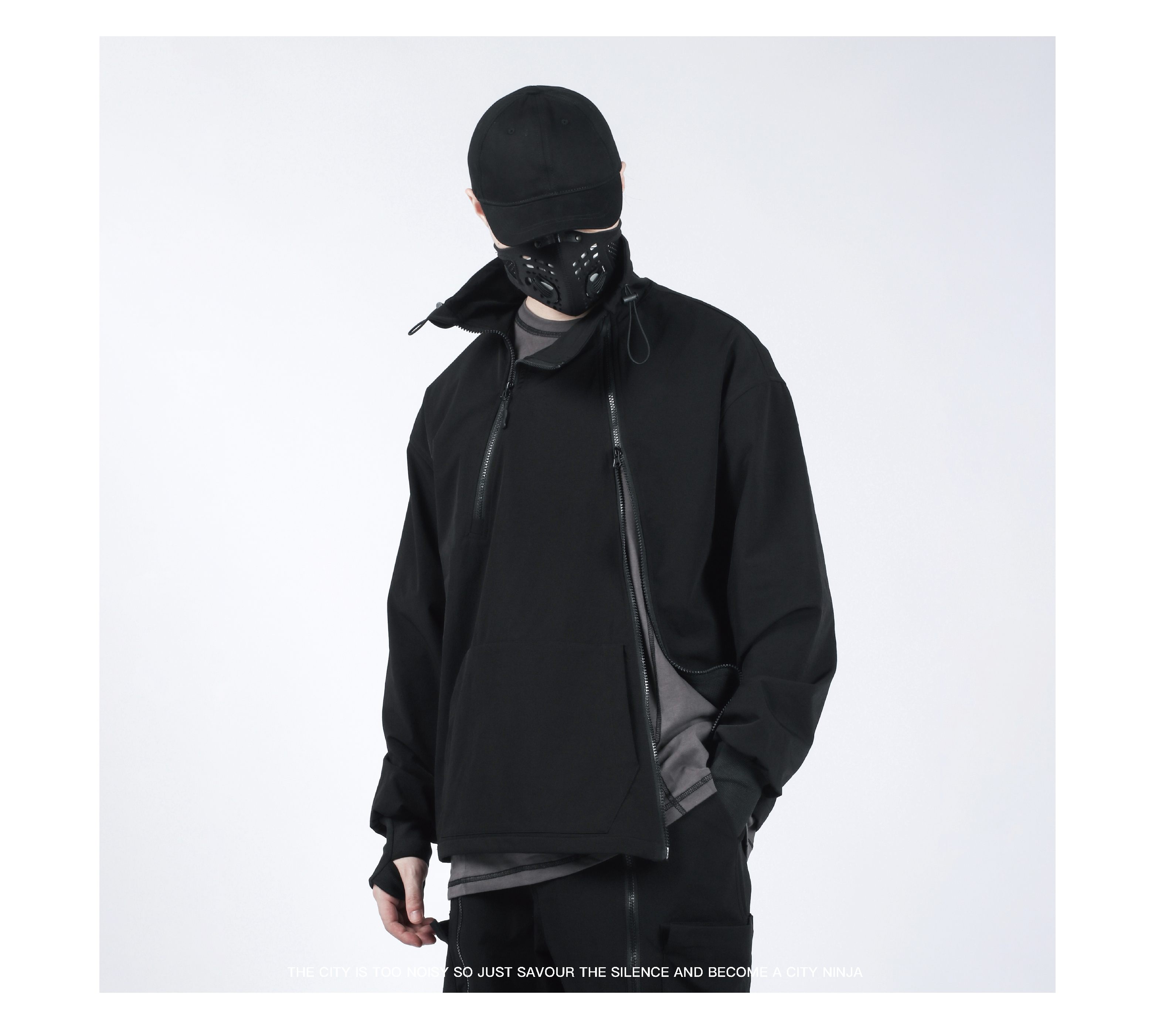 Design Details: Crafted from nylon stretch mountaineering fabric with four-way elasticity, this hoodie offers excellent drape, breathability, moisture-wicking, water resistance, and durability for a comfortable wear. It redefines the conventional hoodie silhouette with a relaxed fit and multi-layered structural details. Featuring dual resin zippers, the hoodie can be worn and adjusted in multiple configurations, allowing seamless switching between hoodie and jacket modes. A high collar with drawstring provides wind protection while adding a bold style element. The angled left zipper echoes the right zipper, creating a functional yet visually striking asymmetry—a perfect combination of comfort, versatility, and urban style.