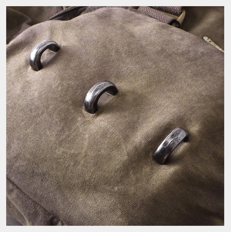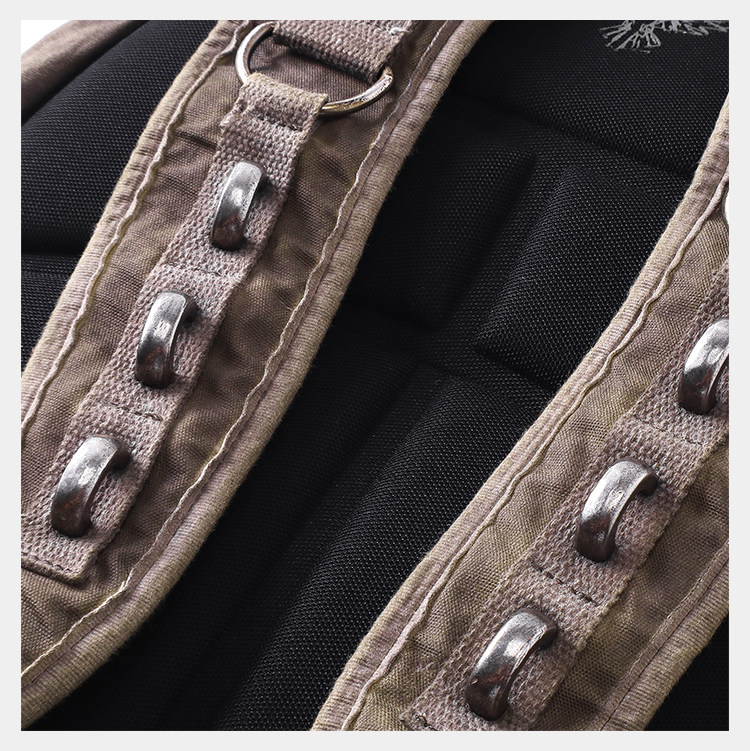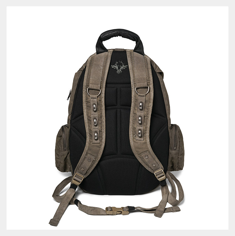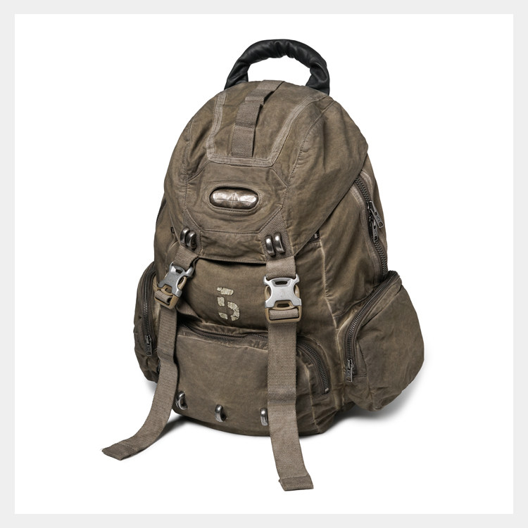 • Inspired by the film THE BOOK OF ELI, D5OVE reinterprets and reconstructs the CHARACTER #502 ELI in its own design language. Drawing from the classic ICON RC backpack silhouette, it is treated with D5OVE’s signature dye‑wash aging process and enhanced with extensive webbing paneling, multiple hand‑finished metal hardware pieces, and a genuine leather carry handle. The result is a strongly weathered vintage texture with a post‑apocalyptic character. The generously sized main compartment offers high functionality while maintaining standout style.Made from premium canvas and tactical webbing, washed and dyed for a natural faded effect. Combined with numerous hand‑finished metal accents and a leather handle for a crafted, premium feel—practical yet visually striking.