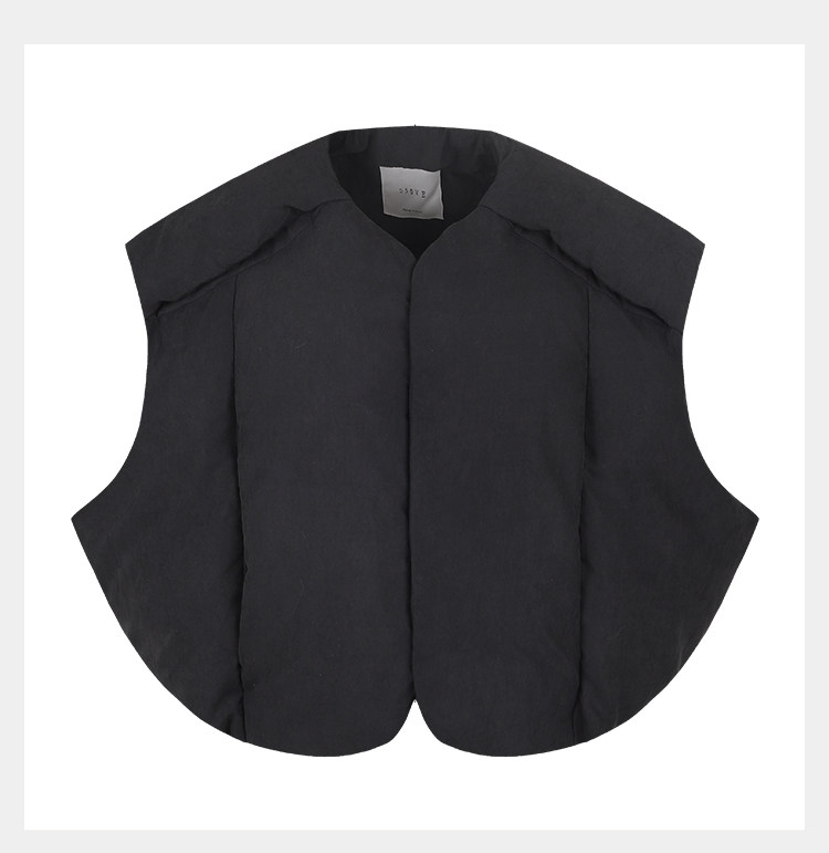 • Featuring a cropped, wide boxy silhouette with an exaggerated structural treatment. The front and back are constructed using unique geometric paneling based on the body's form, giving the vest a powerful, three-dimensional shape and strong visual impact. Made from a special brushed texture fabric that is soft and comfortable to the touch while holding its shape well, offering warmth and standout visual appeal.