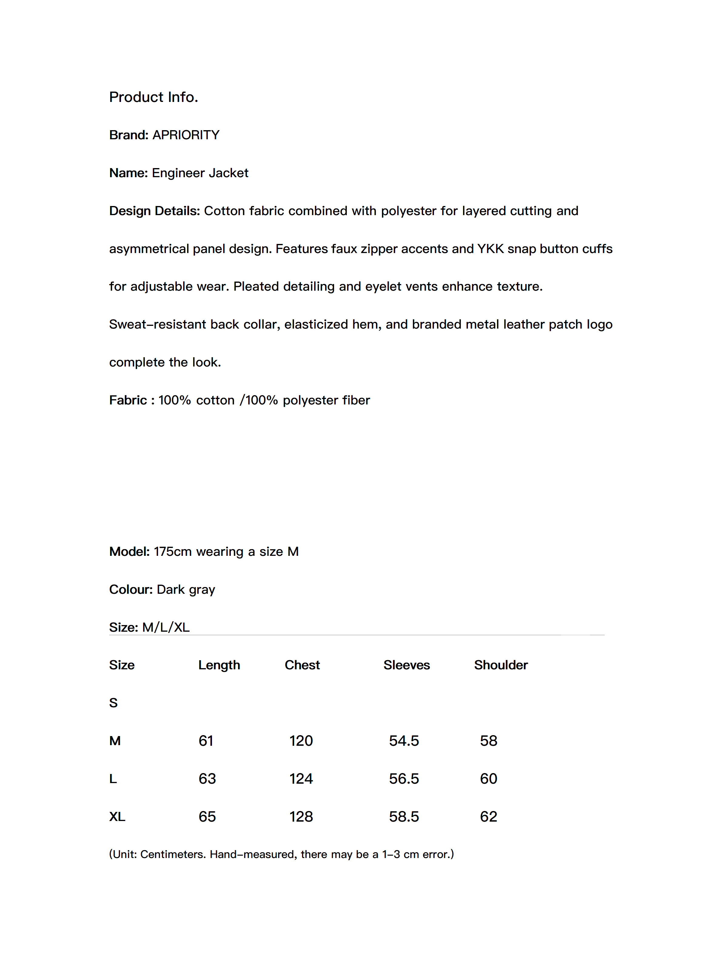 Cotton fabric combined with polyester for layered cutting and asymmetrical panel design. Features faux zipper accents and YKK snap button cuffs for adjustable wear. Pleated detailing and eyelet vents enhance texture. Sweat-resistant back collar, elasticized hem, and branded metal leather patch logo complete the look.