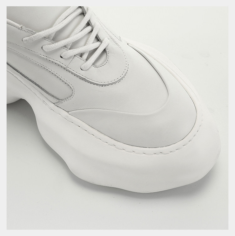• D5OVE presents its leather sneaker “ENGINEER,” inspired by “Origins” and exploring the interplay between time and material forms. The exaggerated, irregular sole silhouette draws from meteorites and fossils—objects that embody the weight of time—imagining their forms as a bridge between past and future. Offered in two colorways: Meteorite Black and Fossil White, each carrying its own narrative.Fossil White echoes the imprint of time’s passage, witnessing transformation and gradual fading from presence to absence. Each step traces the trajectory of time, leaving a distinct impression with every movement.