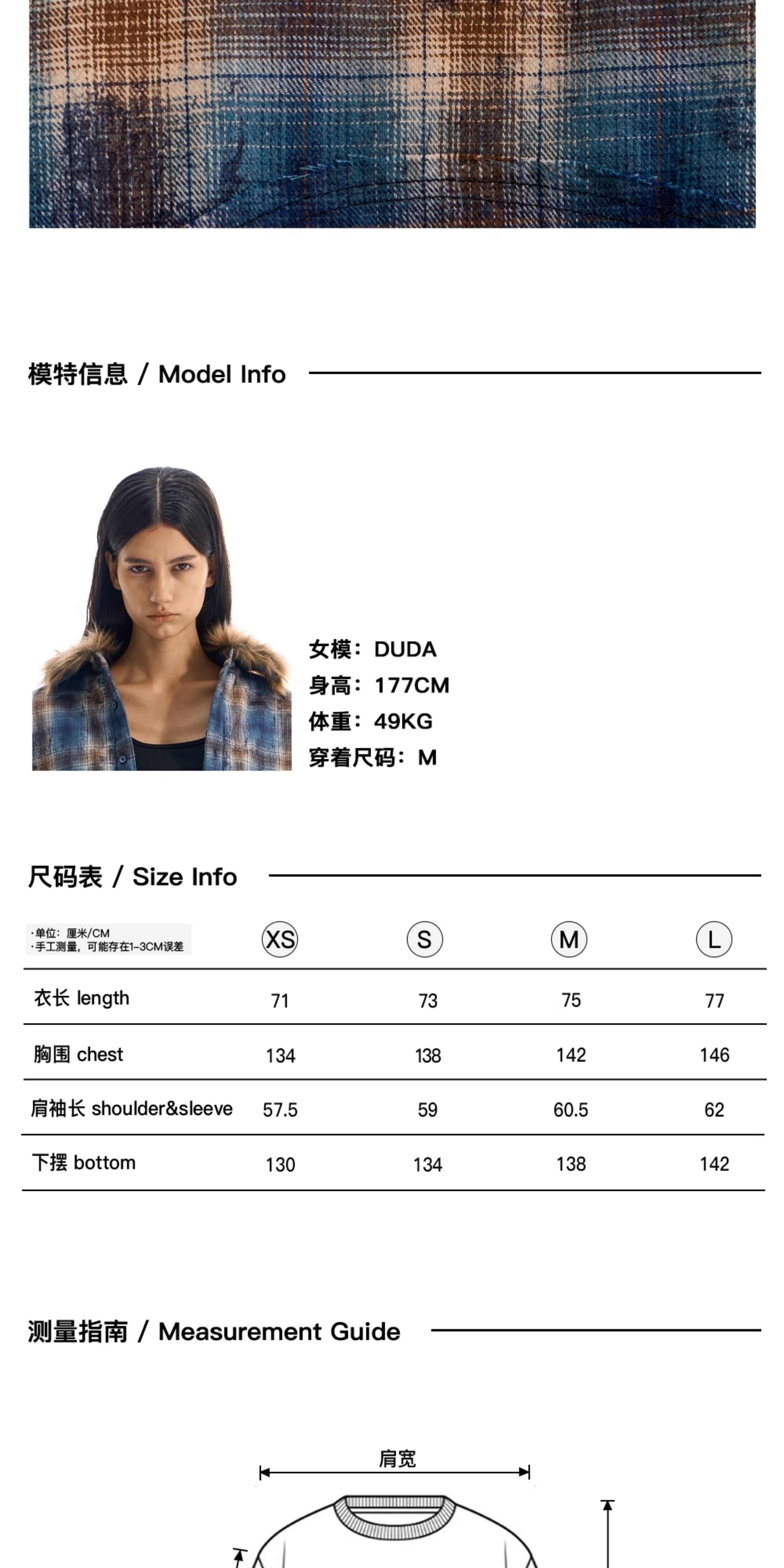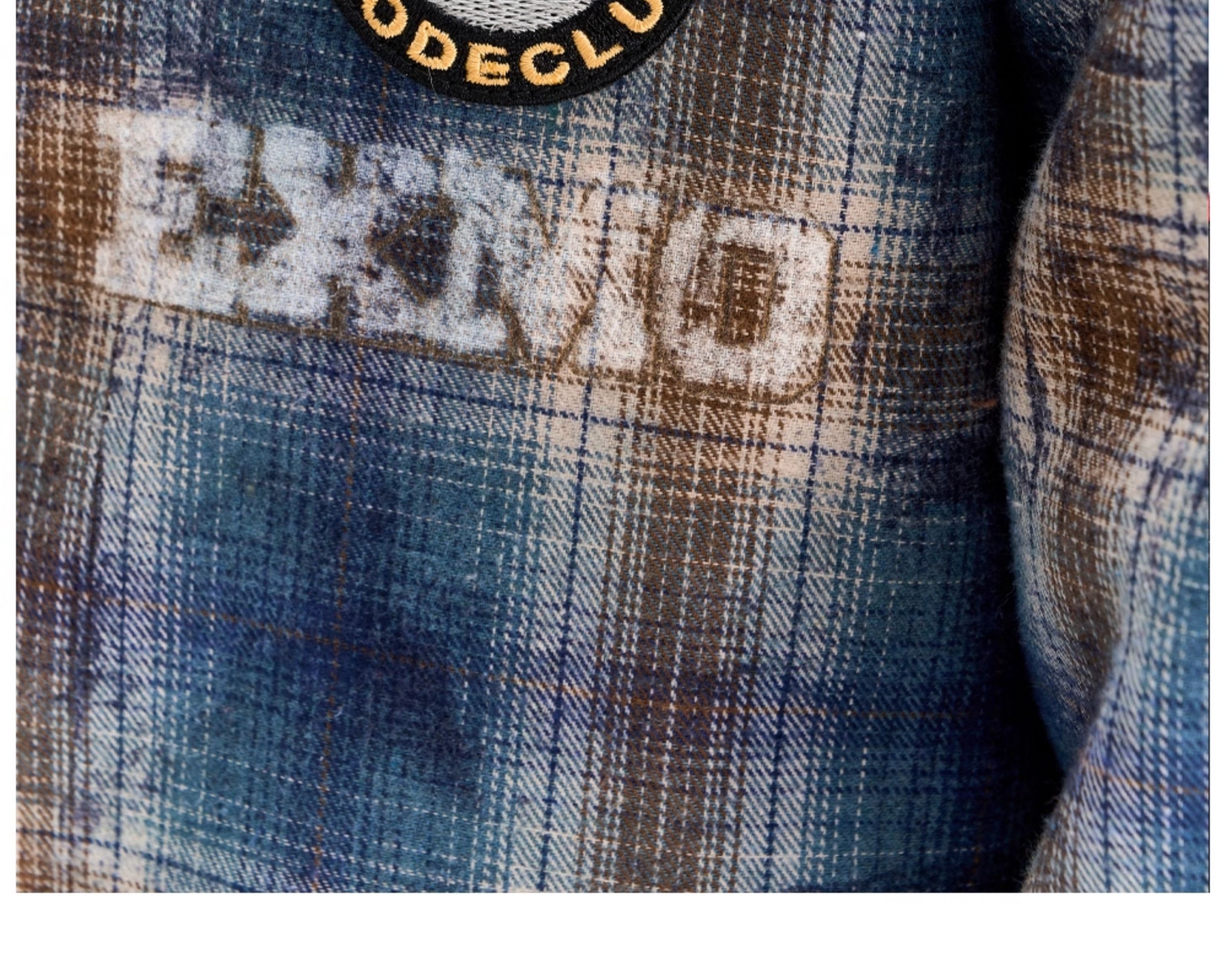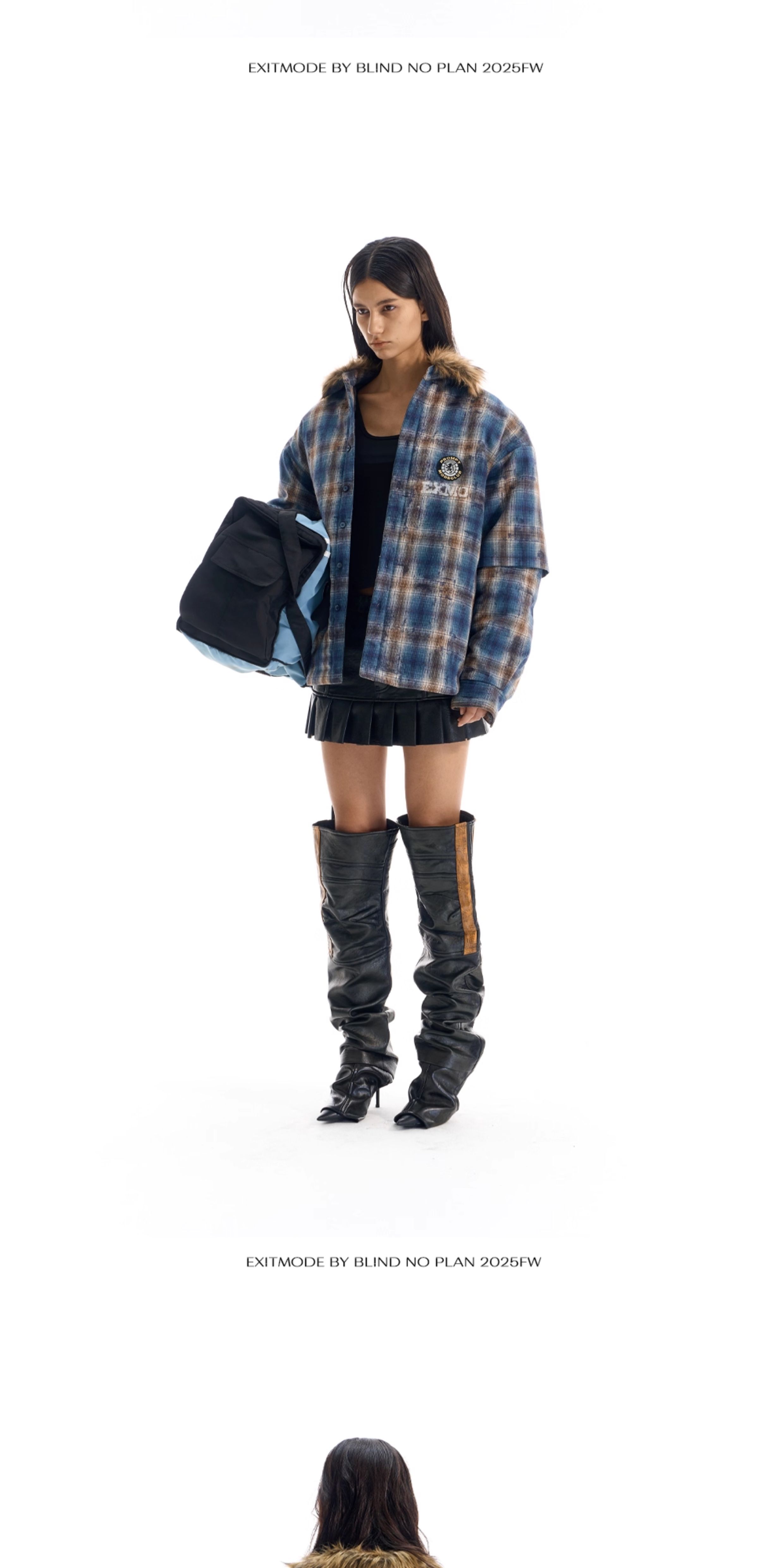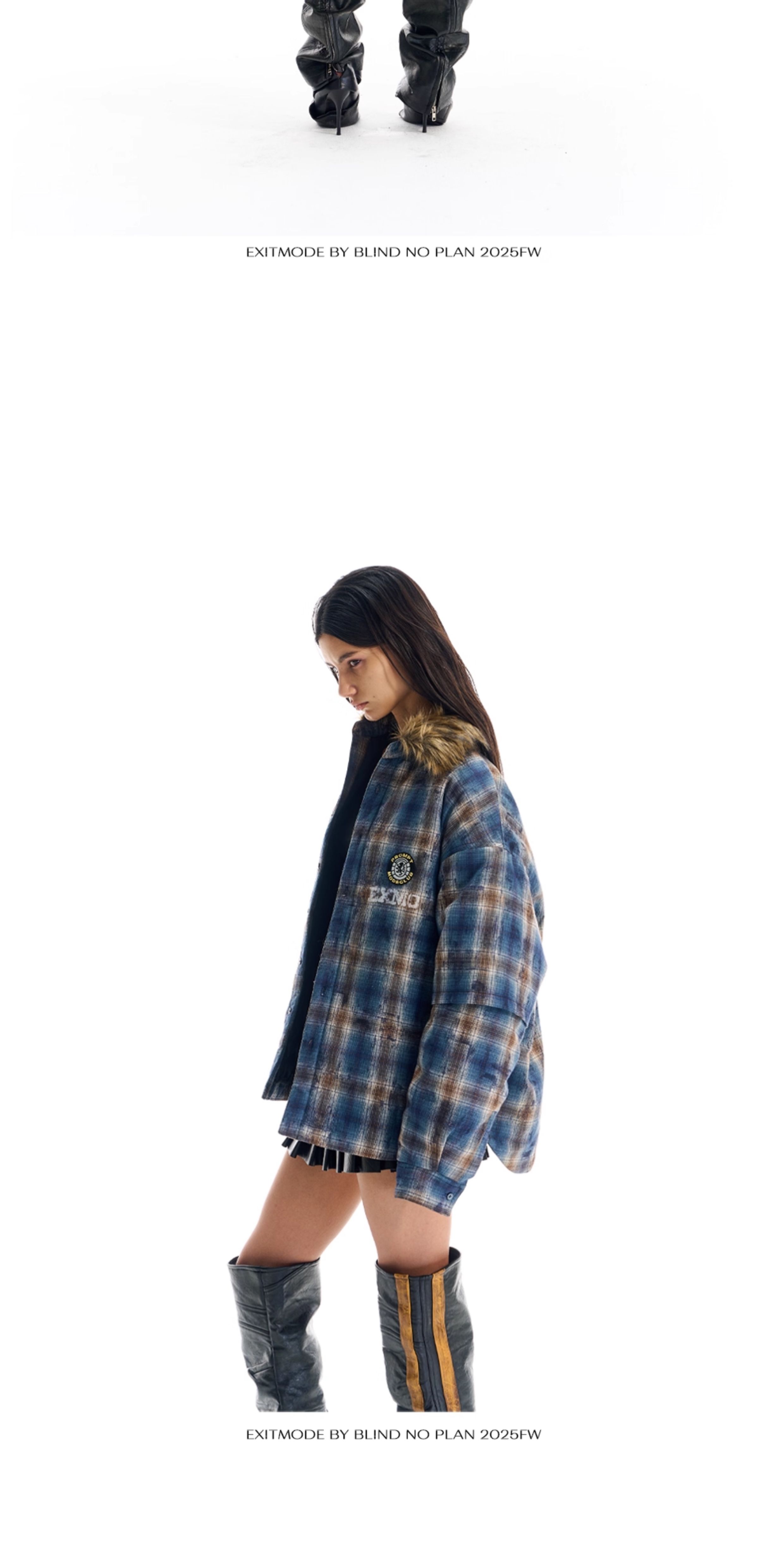 - This jacket features a loose fit, reimagining the traditional plaid shirt with a plush fur collar for added warmth and style. The body is enhanced with printed and embroidered details, while the back showcases patch embroidery, bringing depth and a unique layered aesthetic.