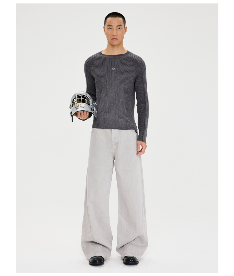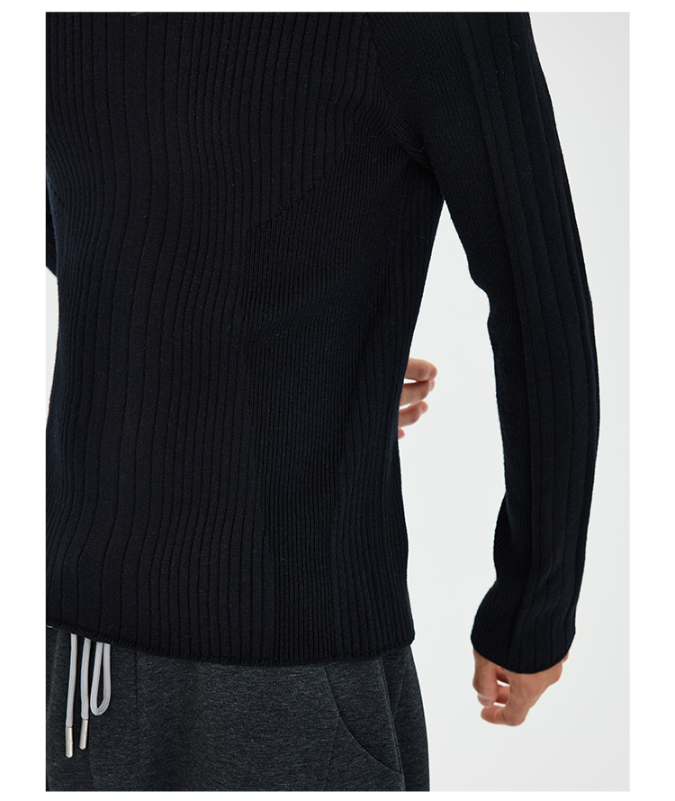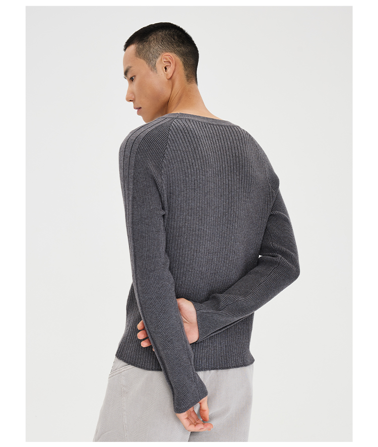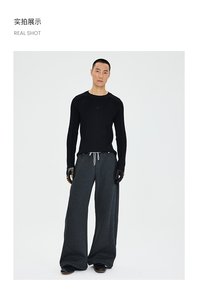 - Structural Lines That Sculpt: An asymmetric rib panel on the chest combines vertical ribs on the main body with diagonal/longitudinal ribs on the sides, visually narrowing the waist. Paired with a fitted silhouette, this accentuates an inverted-triangle silhouette with broad shoulders and a tapered waist.Graduated Sleeve Fit: The sleeves feature a graduated fit design with gradually varying rib widths from shoulder to cuff, conforming to arm muscle lines while allowing ease of movement—balancing a "sculpted feel" with practicality.Tonal Textural Depth: Different rib widths across the garment create "light and shadow layers" within a single color, adding visual interest without complexity. The nearly invisible seam between the shoulder and sleeve minimizes disruption to the silhouette, making the sweater feel more like a "second skin"—snug yet unrestrictive.Premium Craftsmanship: Knitted on a fully imported German STOLL 7.2G flat knitting machine. Extensive calibration achieves optimal fabric density, resulting in a garment that maintains its structure without being stiff, while ensuring essential breathability and moisture-wicking for spring and summer. All seams are meticulously hand-linked. The highest standard of selvage finishing demands precise, meticulous attention to every stitch, significantly increasing production time and cost.