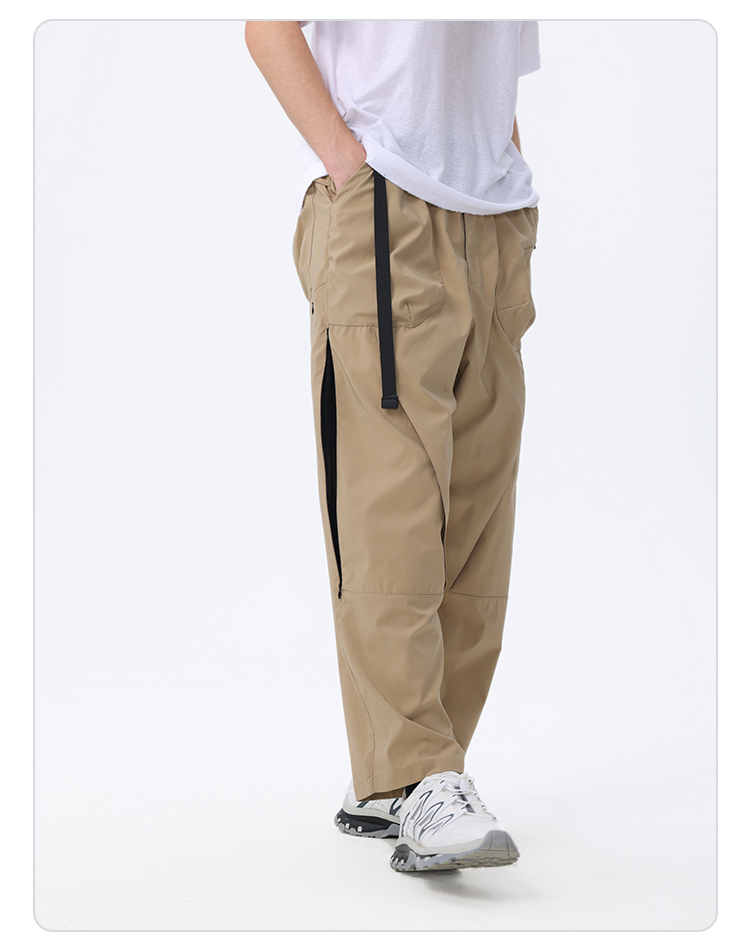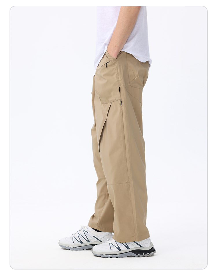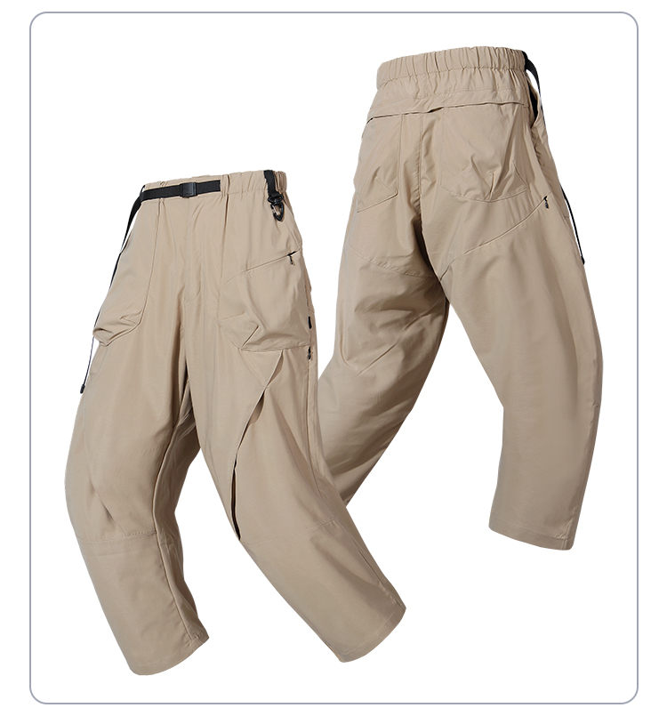 - Crafted with high-quality Sorona fabric, these pants offer lightweight comfort, antibacterial technology, and water-repellent performance while integrating multiple functional features. The unique flying-wing vent panel design enhances the streamlined silhouette, and the ergonomic pockets combine practicality with design aesthetics. Equipped with side hidden zipper ventilation for rapid airflow, IDEAL zippers for smooth performance, and imported SUNGRIP four-point snap details for durability. Whether exploring the outdoors, commuting daily, hiking in nature, or engaging in extreme functional activities, these pants deliver versatile adaptability for all scenarios.
