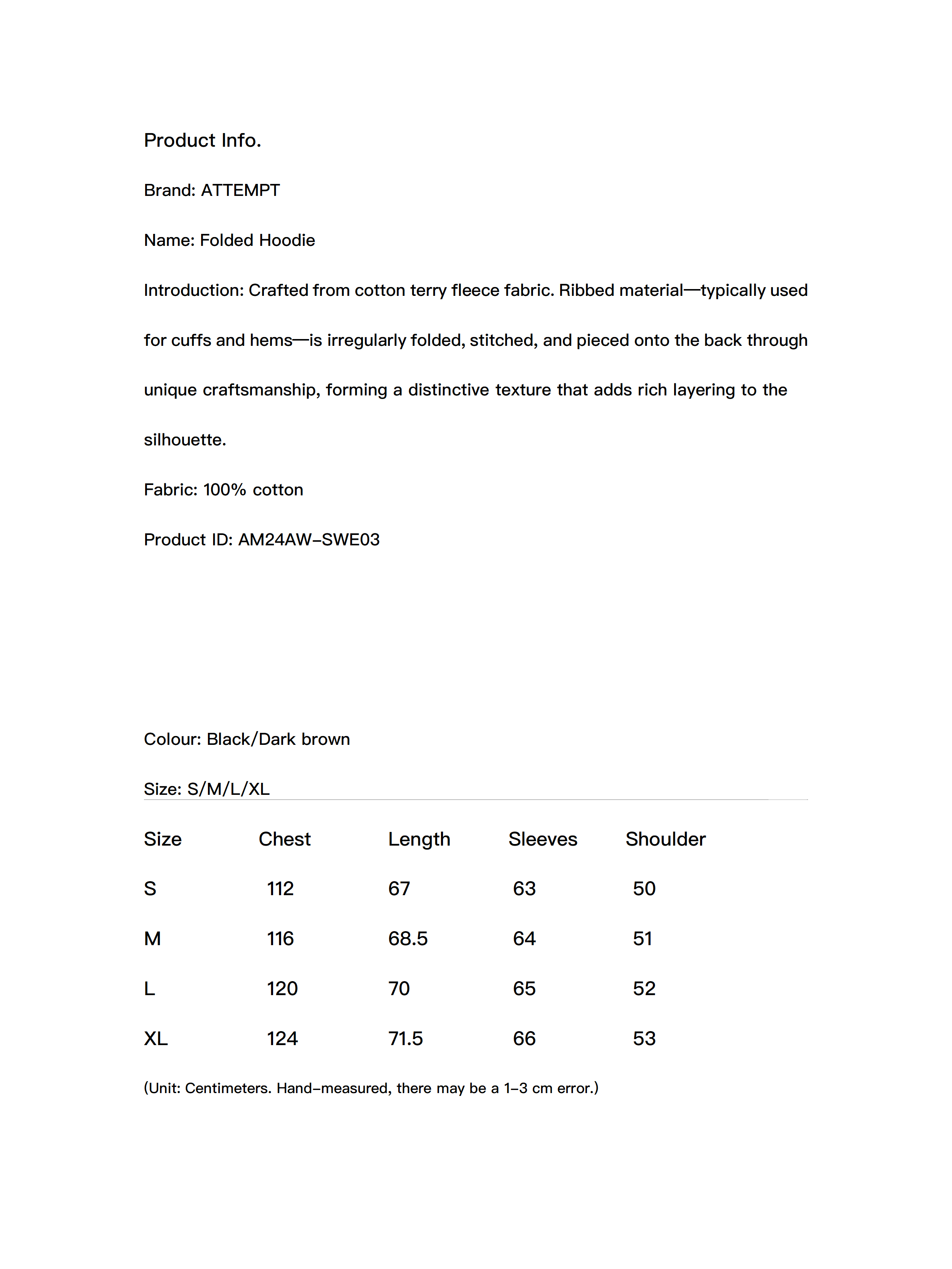 Crafted from cotton terry fleece fabric. Ribbed material—typically used for cuffs and hems—is irregularly folded, stitched, and pieced onto the back through unique craftsmanship, forming a distinctive texture that adds rich layering to the silhouette.