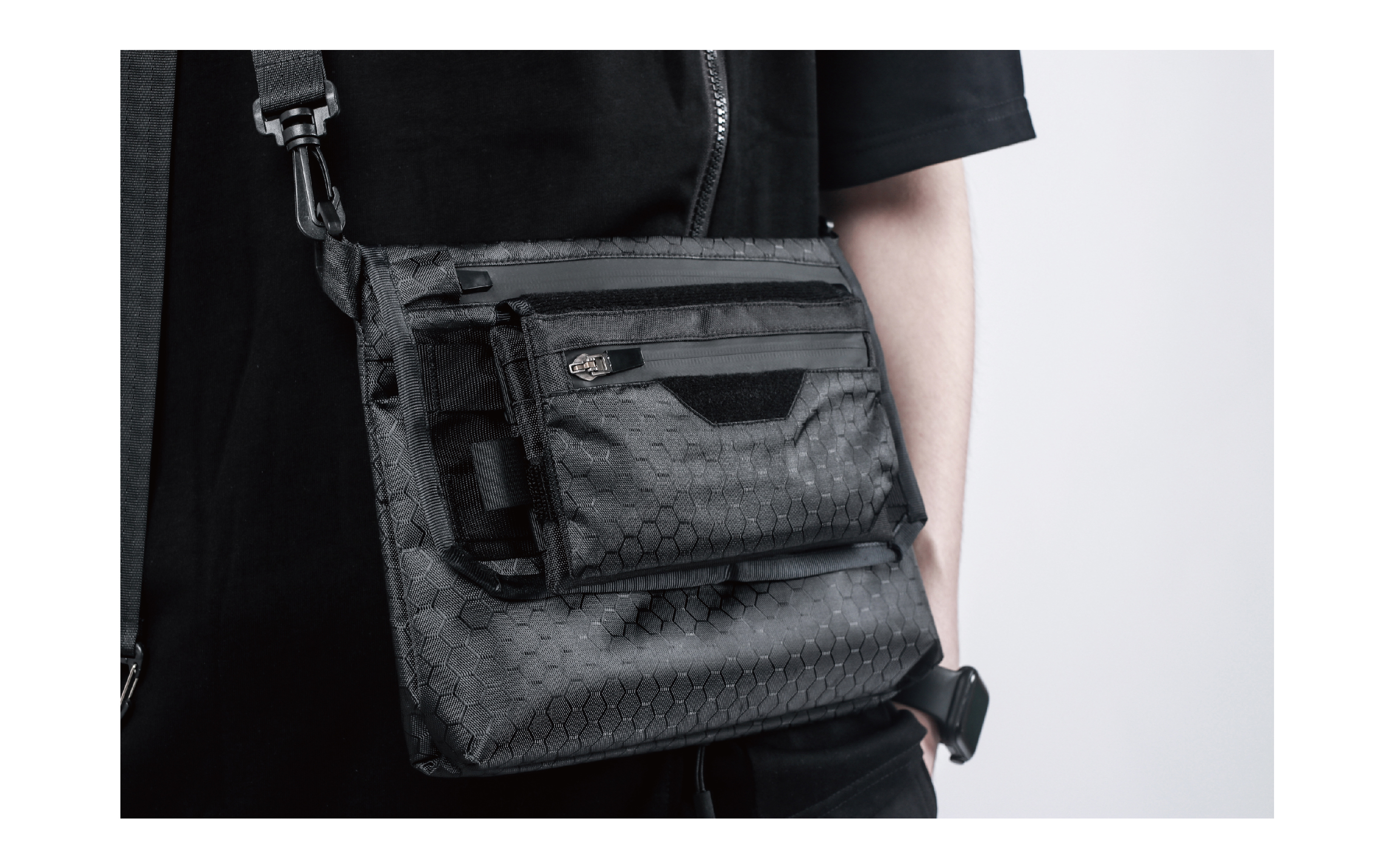 - Constructed from 600D waterproof canvas combined with 420D honeycomb PVC fabric, this bag offers durable, water-resistant, and wear-resistant performance with a structured feel. The front features geometric Velcro panels for attaching morale patches, while the back integrates a MOLLE system, allowing for customizable modular assembly of pouches and accessories. Designed with four layers and two main compartments, the bag is foldable for compact storage and comes with four C-shaped buckles and resin hooks, making it a versatile bag that balances playability and functional utility.