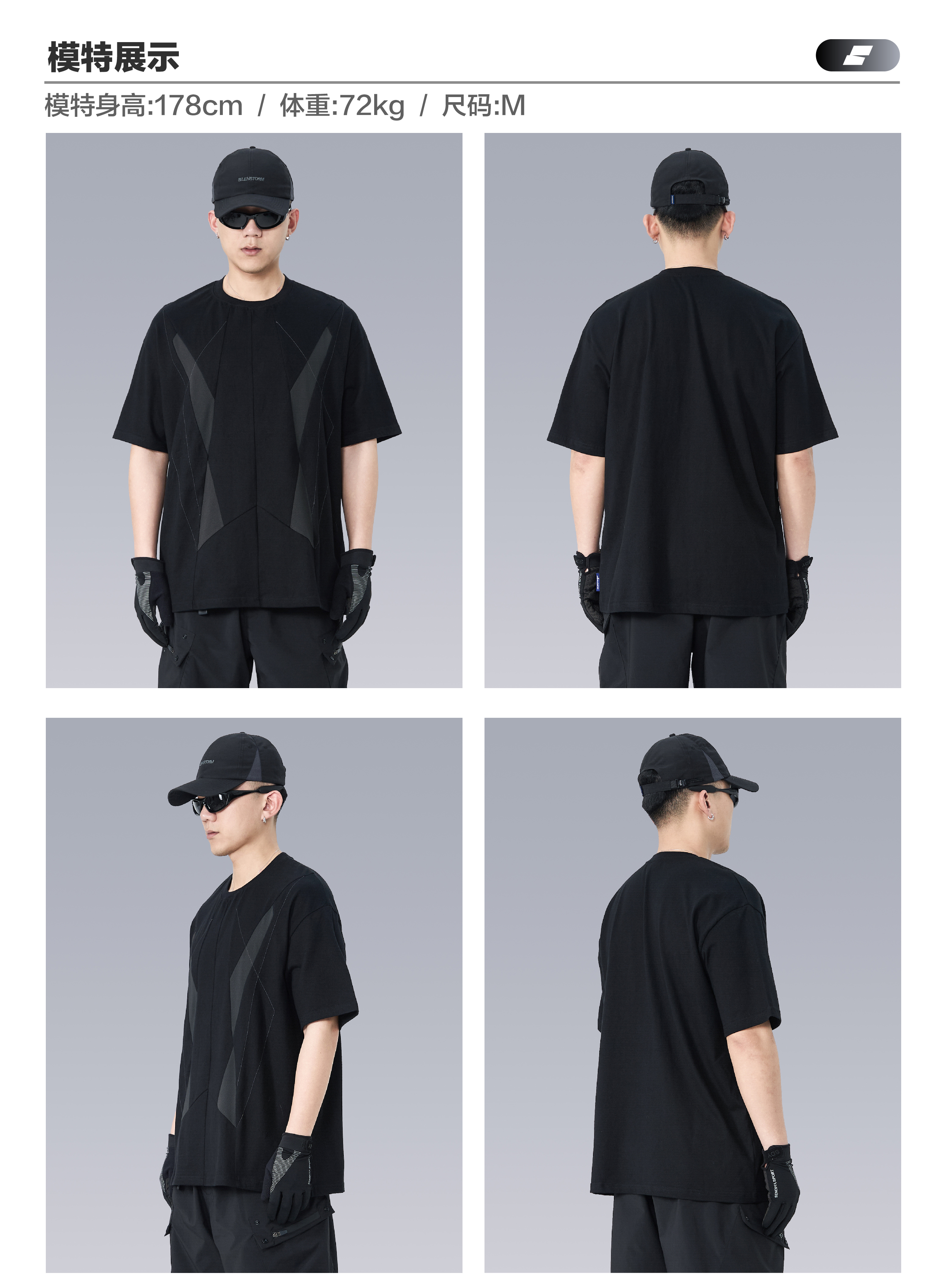 - Crafted from 230g heavyweight cotton fabric, this T-shirt maintains a structured silhouette and solid texture. The pure cotton composition ensures excellent breathability and moisture absorption for all-day comfort. With pre-shrunk treatment, it resists shrinkage and deformation after repeated washing. The three-dimensional geometric mesh panel design enhances ventilation and adds a futuristic structural aesthetic, combining functionality with modern minimalism.