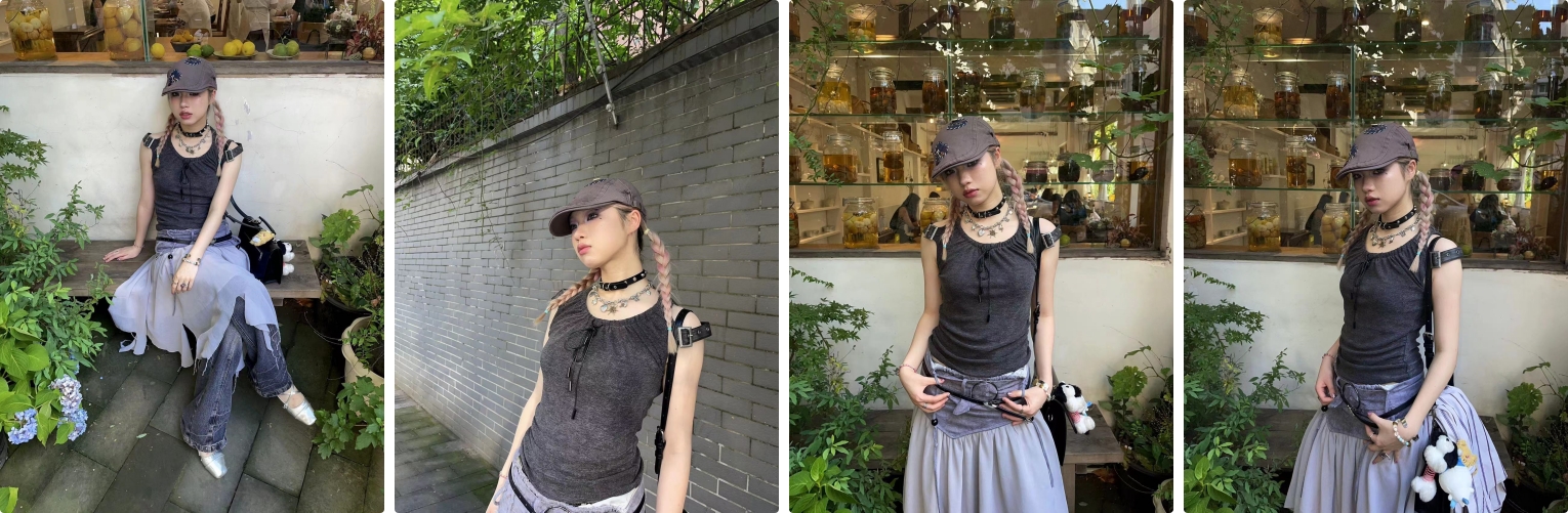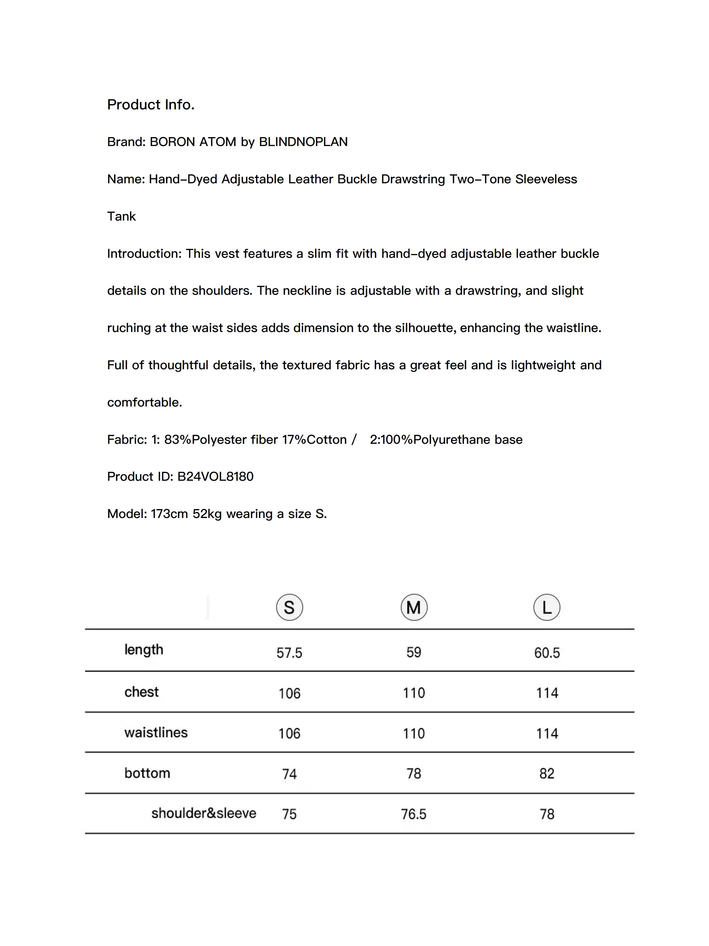 Hand-Dyed Adjustable Leather Buckle Drawstring Two-Tone Sleeveless Tank