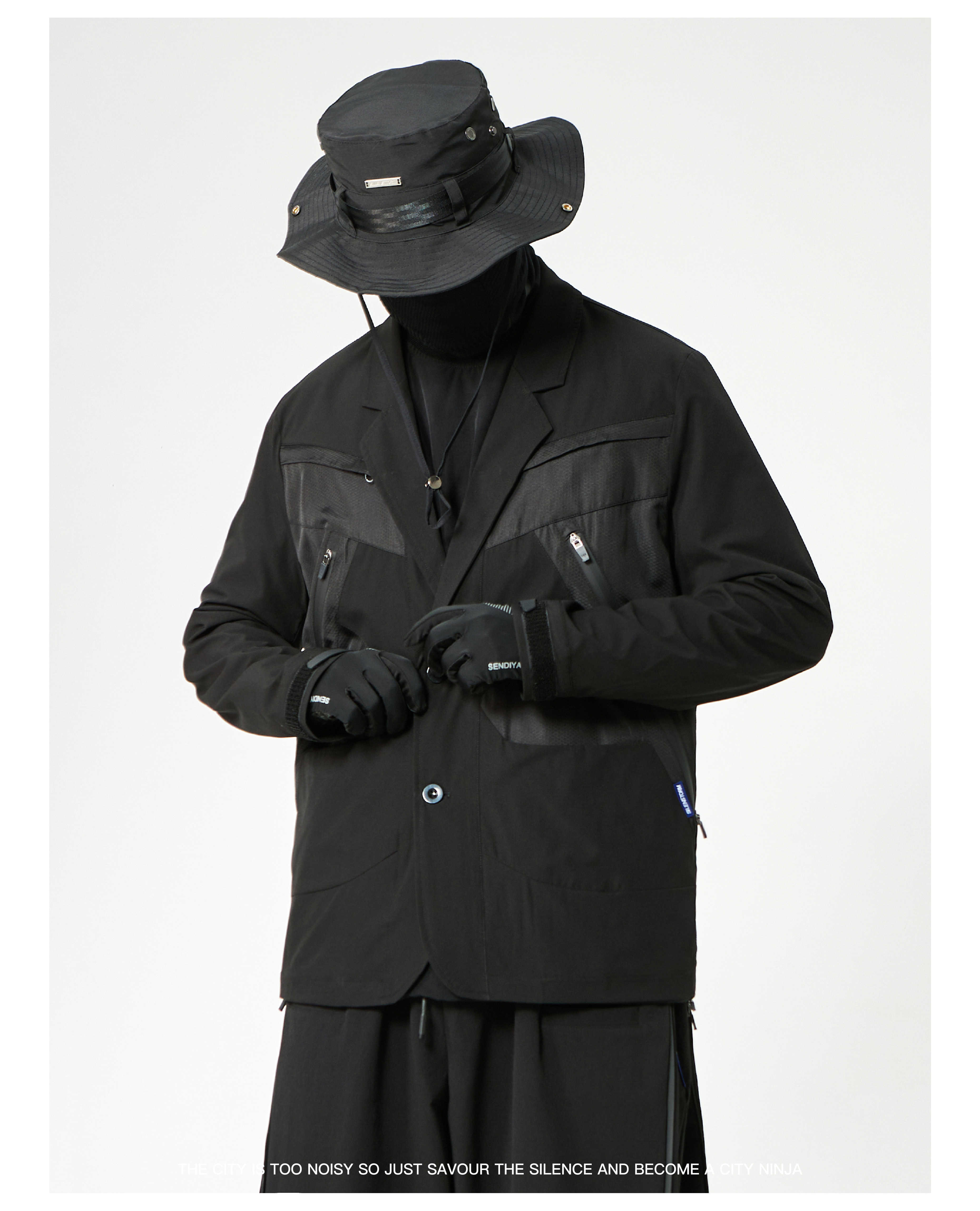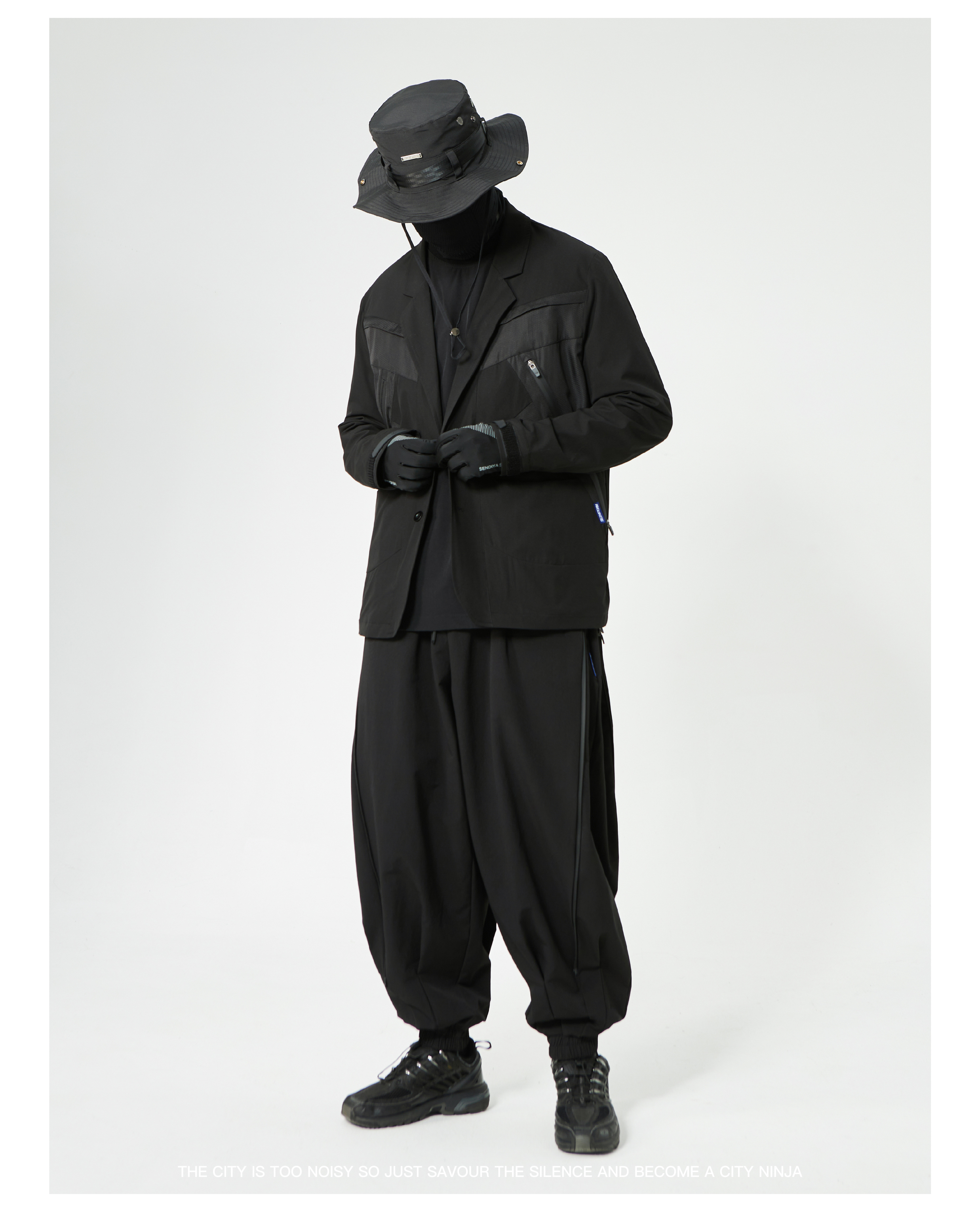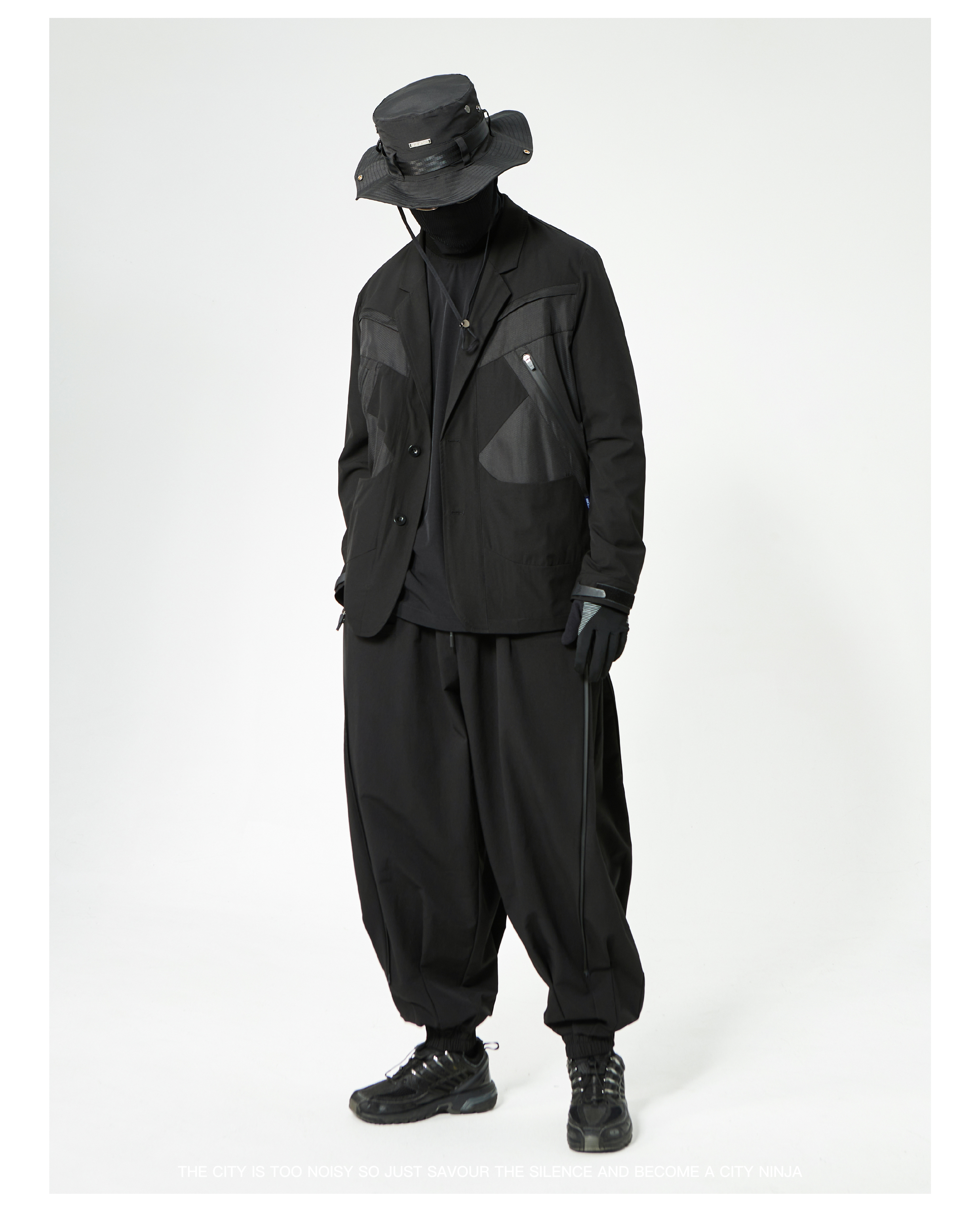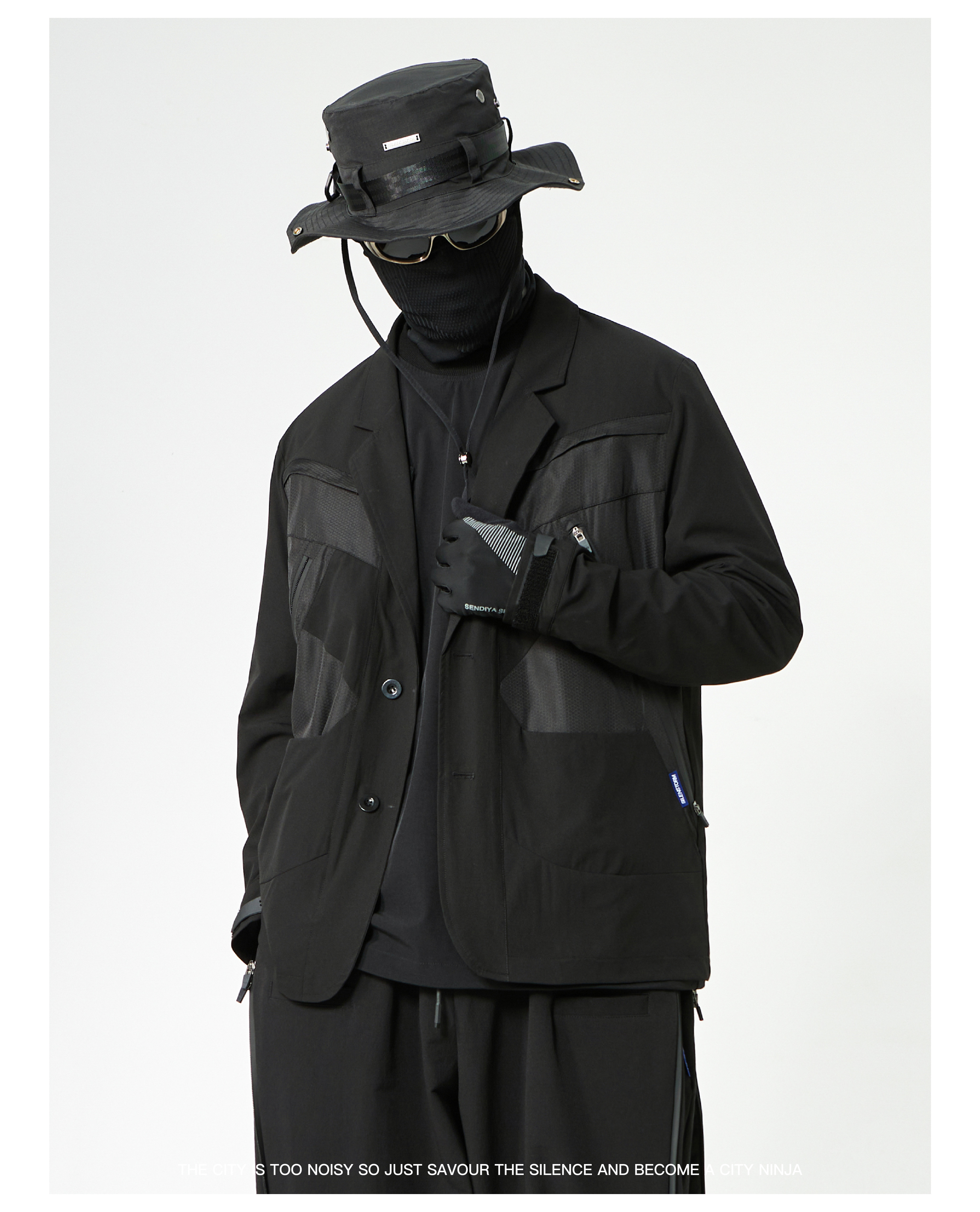 - This suit integrates a functional harness-inspired design with tailored construction for a modern urban-tech aesthetic. The spliced panels create visual depth and contrast, while maintaining a structured and comfortable fit. Designed to merge formal wear with functional streetwear elements, the suit is suitable for dynamic, style-conscious environments.