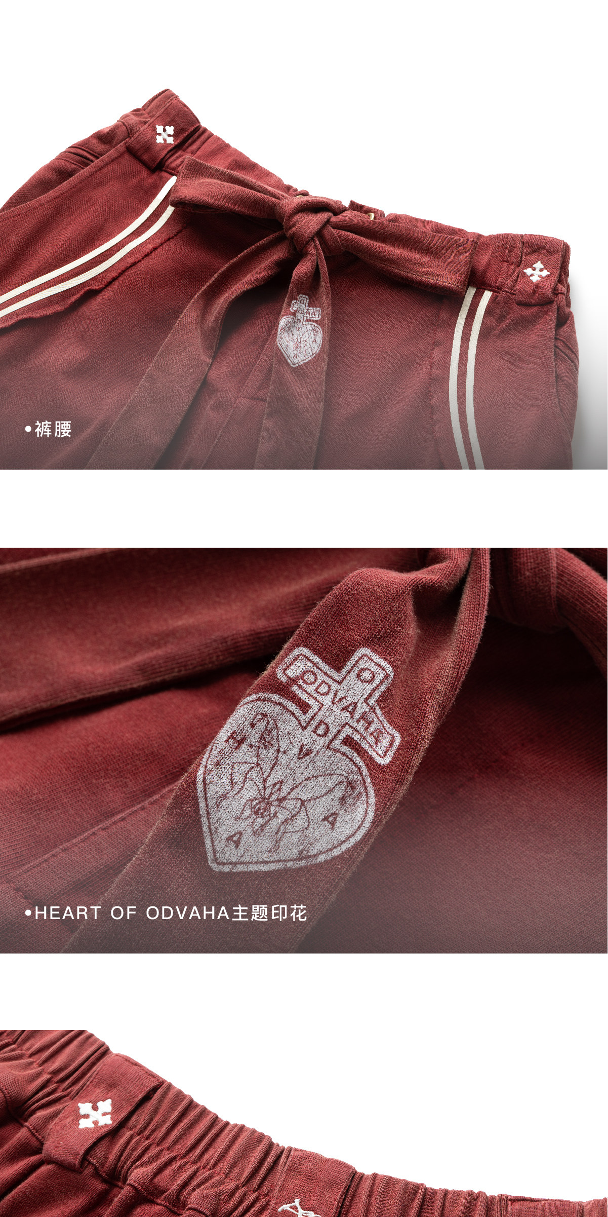 Design Details: Crafted from 100% combed cotton with garment-dyed vintage wash for an authentic worn-in appearance. Features an original custom "Lighthouse" embroidery patch themed around the ODVAHA Heart sewn on the left thigh, white ink printed ODVAHA Heart motif graphics on the waistband, a non-fixed butterfly knot drawstring waistband combined with elastic waist for enhanced inclusivity and adjustable fit, five wide belt loops each with graphic embroidery, signature wavy cut tailoring echoed by matching wavy decorative stitching, and front slant pockets integrated with zippers plus three-dimensional hip cargo pockets for versatile storage.