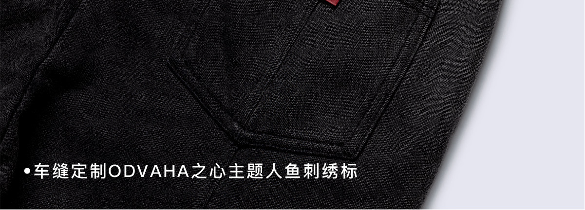 Design Details: Made from 380g heavyweight double-ply yarn dense-knit 100% cotton fabric. Features double-layer slant pockets with zipper closure using custom metal zipper pulls, full garment-dyed vintage wash, custom ODVAHA lighthouse mermaid theme patch sewn on the hip pocket, and drawstring adjustable waistband for superior body inclusivity.