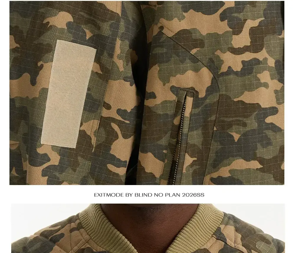 Design Details: Featuring an oversized silhouette with quilted stitching along the shoulders and sleeves for enhanced structure and volume. Strip quilting details add a rugged, moto-inspired touch, while hook-and-loop patches on the sleeves provide functional accents. The hem is finished with an elasticated cuff for a secure fit.