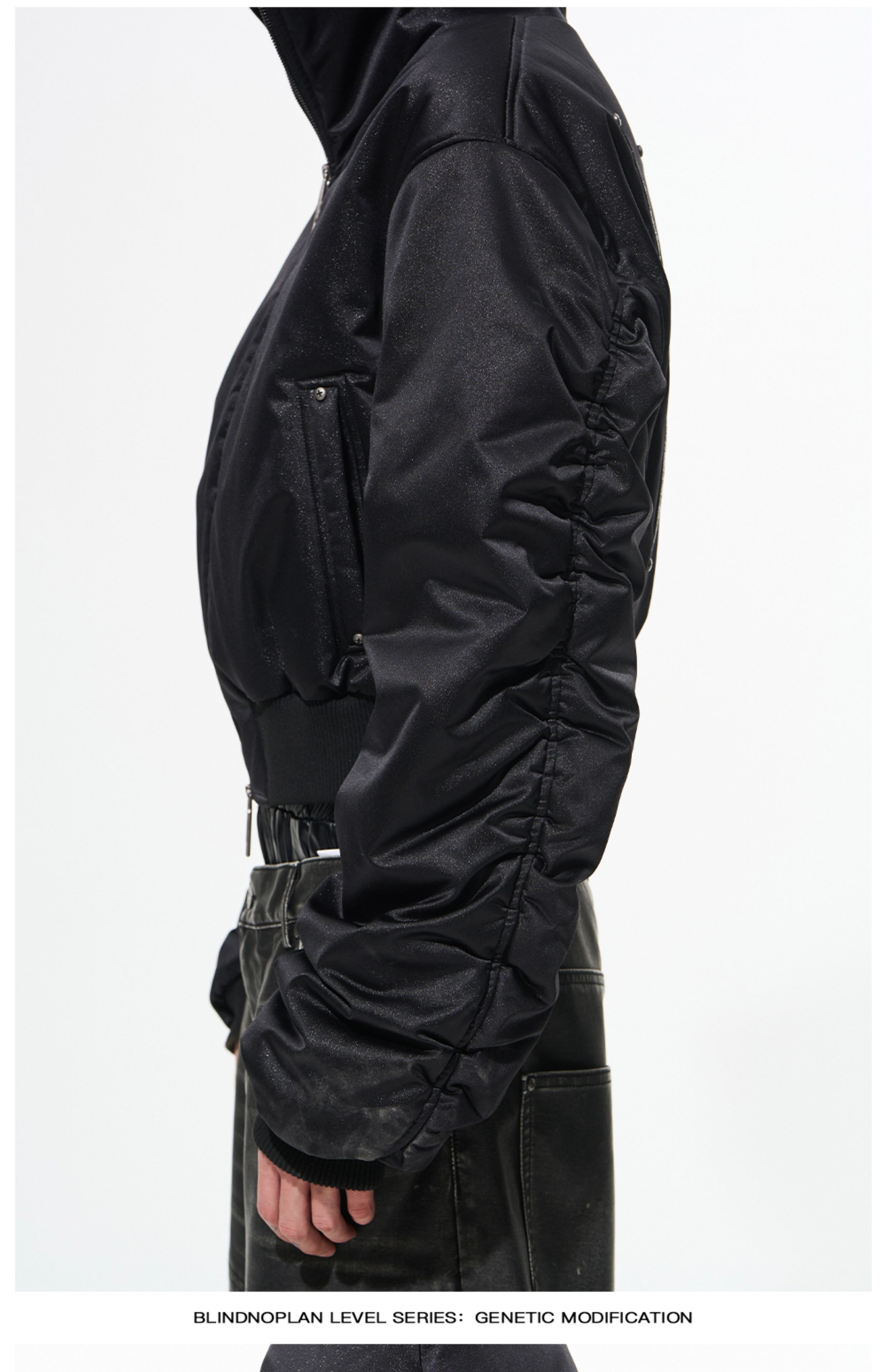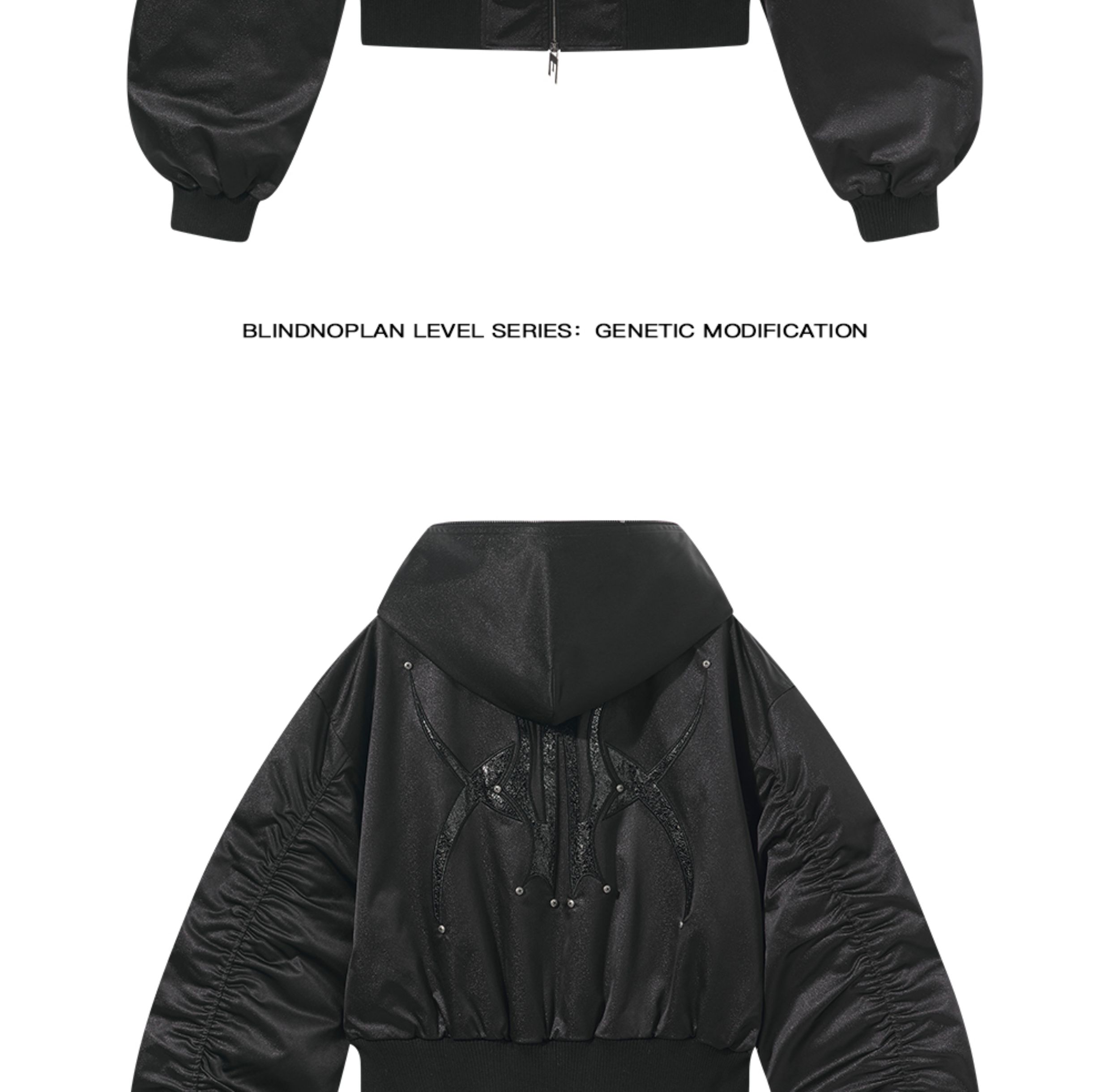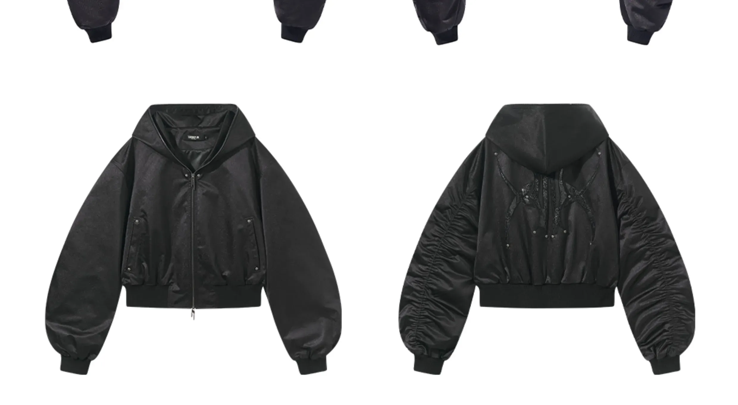 Design Details: Hooded loose-ftting body, sihouette sense of full, hit nail embelishment, details of texture.The fabric has a smooth texture and a clear pattern, providing excellent warmth and comfort, perfect for colder weather.