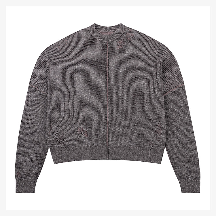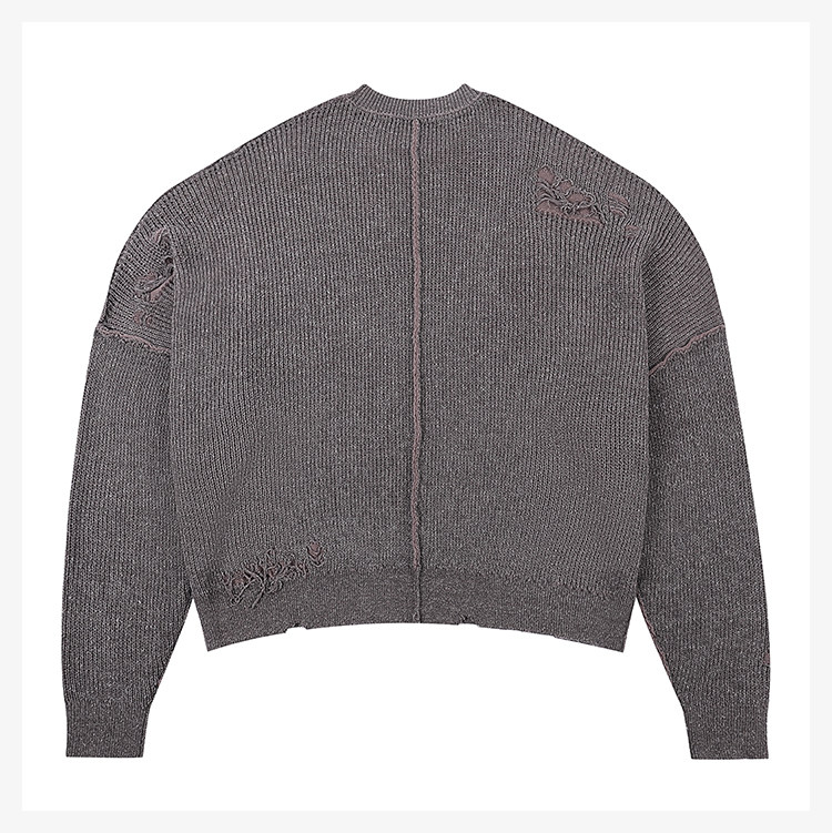 • Featuring a cropped, wide boxy pullover silhouette that naturally creates a clean "boxy" outline with standout style. The inside-out construction exposes interior seams to the surface, enhancing design interest while expressing a rugged, post-apocalyptic brand aesthetic. Knit from premium cotton yarn for comfort, breathability, and structure. Finished with a signature garment-wash for a deeply worn-in, weathered look that embodies a distinct dystopian edge.