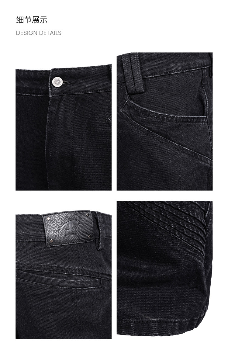 - Lyocell fiber gives the fabric softness and breathability, while a cotton base retains the classic denim texture. Spandex provides 3% micro-stretch to accommodate large movements like riding. Polyester enhances anti-deformation properties. The fabric undergoes pre-shrinking treatment, making it wear-resistant and resistant to sagging.