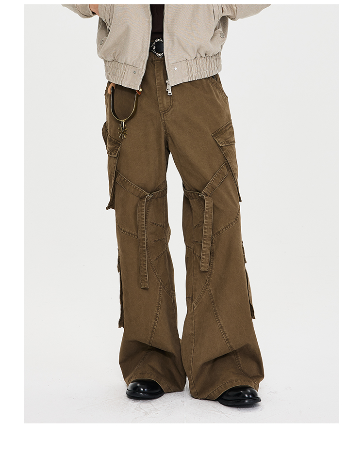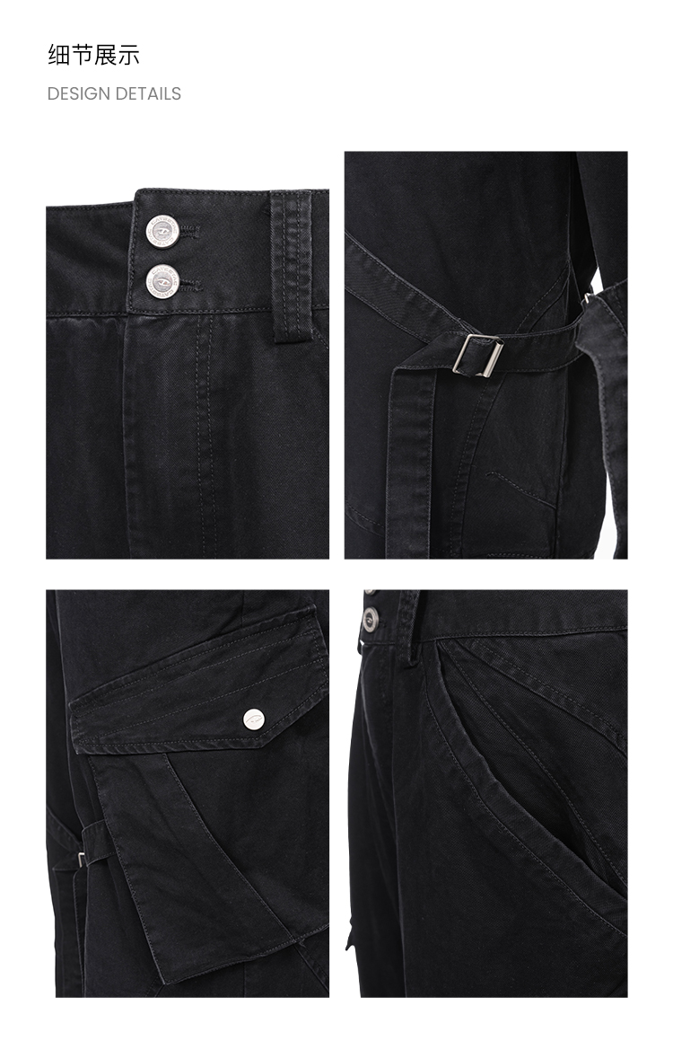 The leg maintains a consistent width from thigh to hem, preserving the workwear core of "unrestricted movement" and accommodating a full range of motion. The multi-panel construction adds spatial allowance through fabric layering, enhancing knee mobility while creating visual depth. Buttoned patch pockets are placed on the front waist sides and outer thighs, balancing storage and aesthetics. Their position and angle are designed to prevent items from slipping out during daily activity. Some pocket edges feature a "recessed" treatment for a cleaner overall look, avoiding excessive bulk. Exposed topstitching reinforces the rugged workwear aesthetic. Metal buttons and snaps enhance the premium feel, blending vintage and utility styles. Reinforced stitching at pockets and panel junctions increases durability, adhering to the workwear ethos of being "built to last."