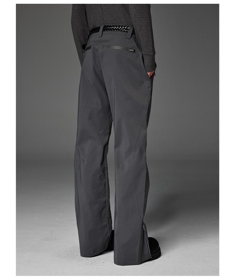 - The six-pocket layout enables efficient, organized storage. Zippered pockets on both sides of the waist, positioned close to the body's center of gravity, are ideal for frequently accessed items like phones, keys, and earphones. All pockets feature zipper closures, balancing quick access with water-shedding and security, proving more reliable in outdoor scenarios.Curved paneling at the knees significantly enhances freedom of movement for deep squats or climbing. The adjustable elastic waistband with a custom metal toggle accommodates various waist sizes, and the toggle can be used for attaching gear. A zipper on the outer calf can be partially opened to temporarily adjust leg width or serve as a vent to alleviate heat, achieving a balance between outdoor utility and everyday wearability.