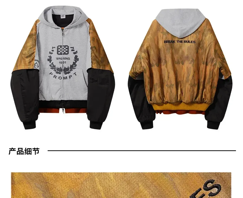 Design Details: Designed in a relaxed silhouette, this piece builds on the MA-1 base structure and incorporates a faux-layered raw-edge patchwork using different front and back fabrics. Screen-printed and embroidered graphics add depth and detail.